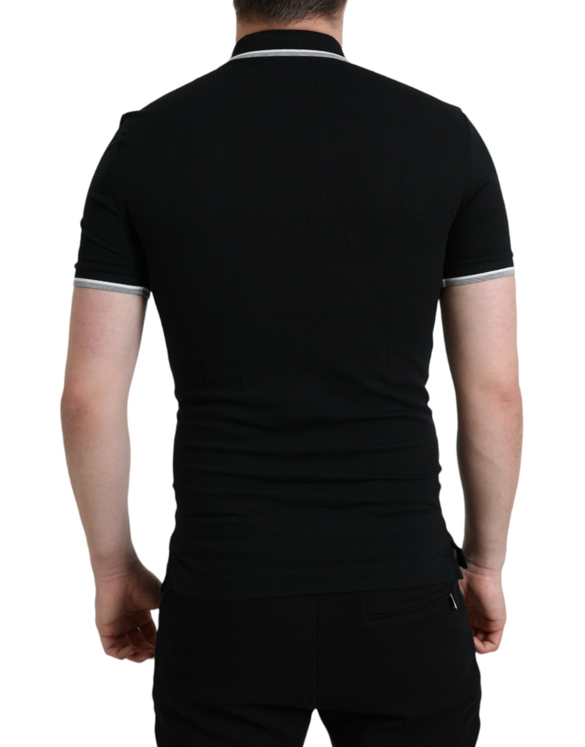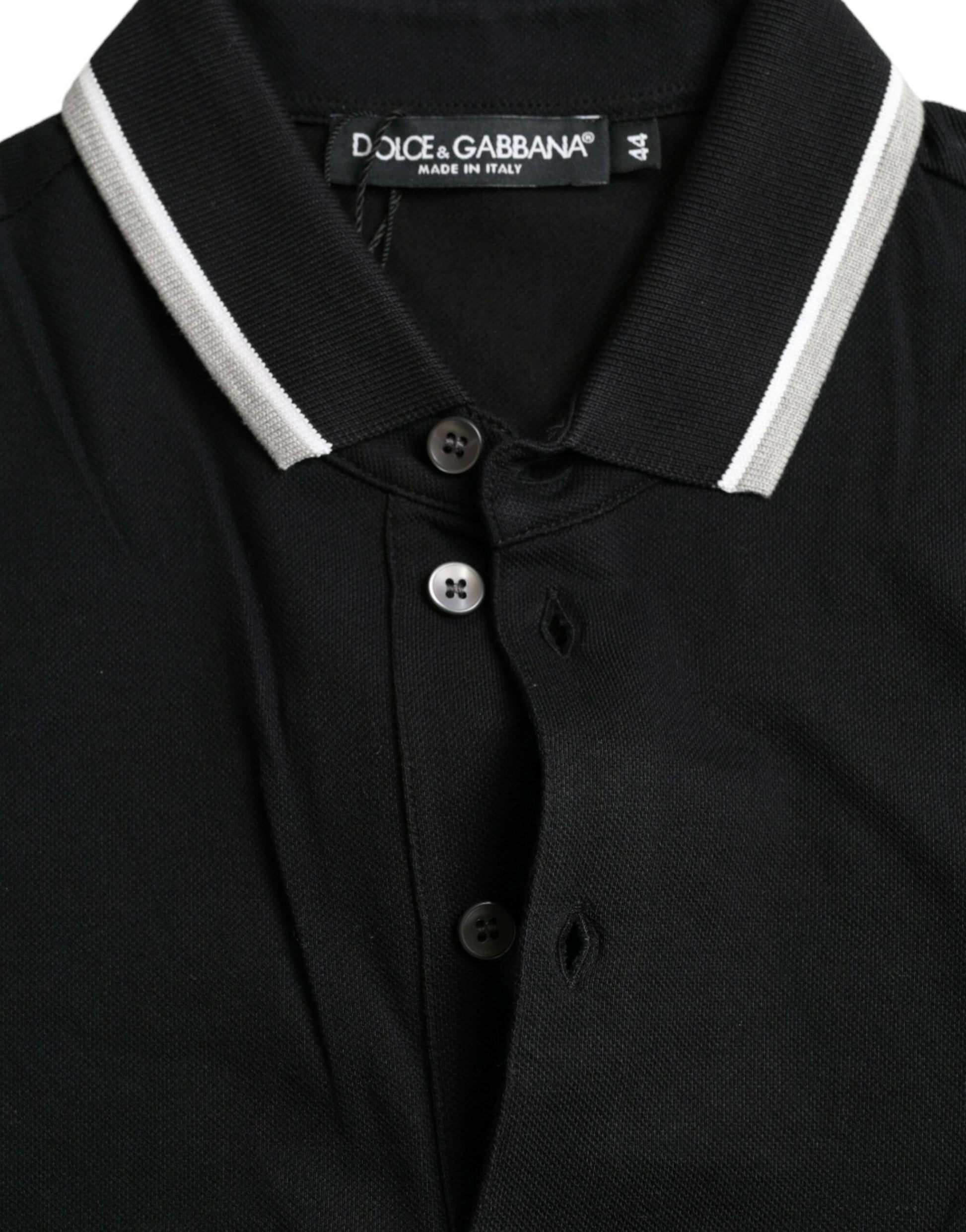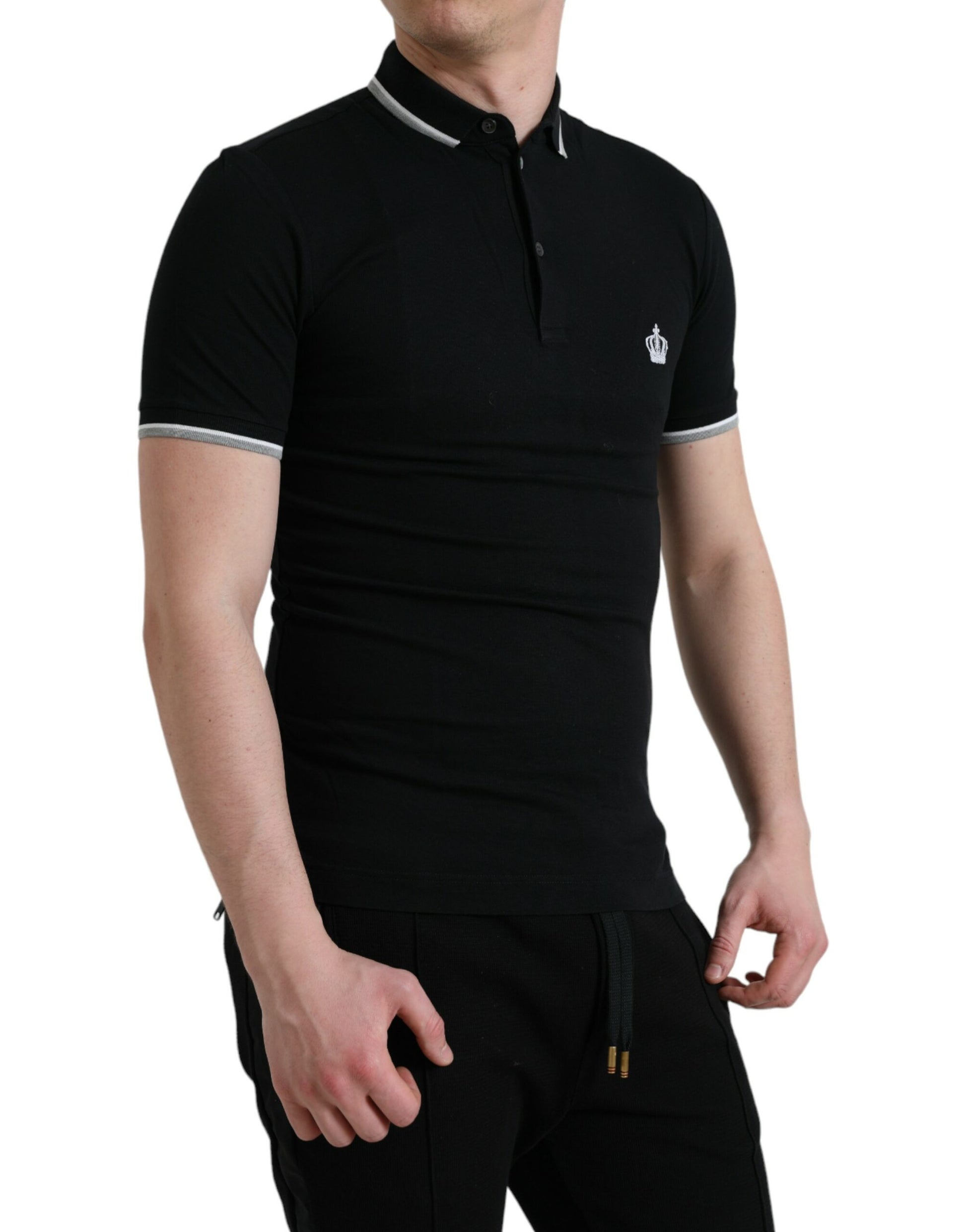 Step out in style with this Dolce & Gabbana cotton polo t-shirt, featuring an elegant crown embroidery. Perfect for adding a touch of luxury to any outfit, this shirt is designed with comfort and class in mind. Crafted in Italy, it sports a sharp black color and a regular fit, ensuring a sleek silhouette. Complete with a button closure and discrete logo details, it’s an impeccable choice for the discerning gentleman.