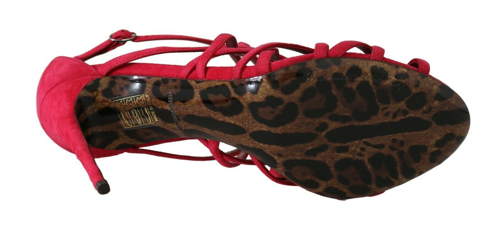 Step out in style with these striking red gladiator stilettos by Dolce & Gabbana. These brand new, high-quality shoes come with tags, ensuring their authenticity and excellence. The KEIRA model embodies the bold and glamorous spirit, crafted from luxurious Capra goatskin suede. They feature a gorgeous ankle strap design for a secure and stylish fit, combined with a comfortable leather sole. Adorned with the Dolce & Gabbana logo, the inner and outsole boast an exquisite leopard print design. Indulge in the unparalleled comfort and Italian craftsmanship of these stunning sandals.