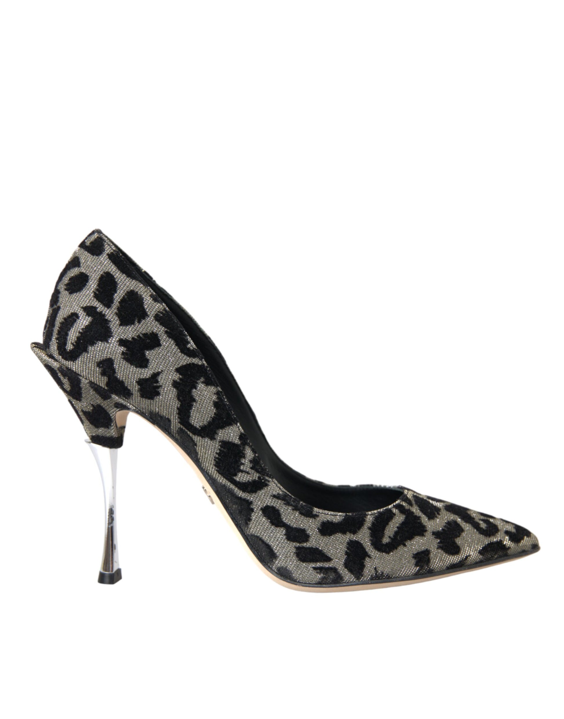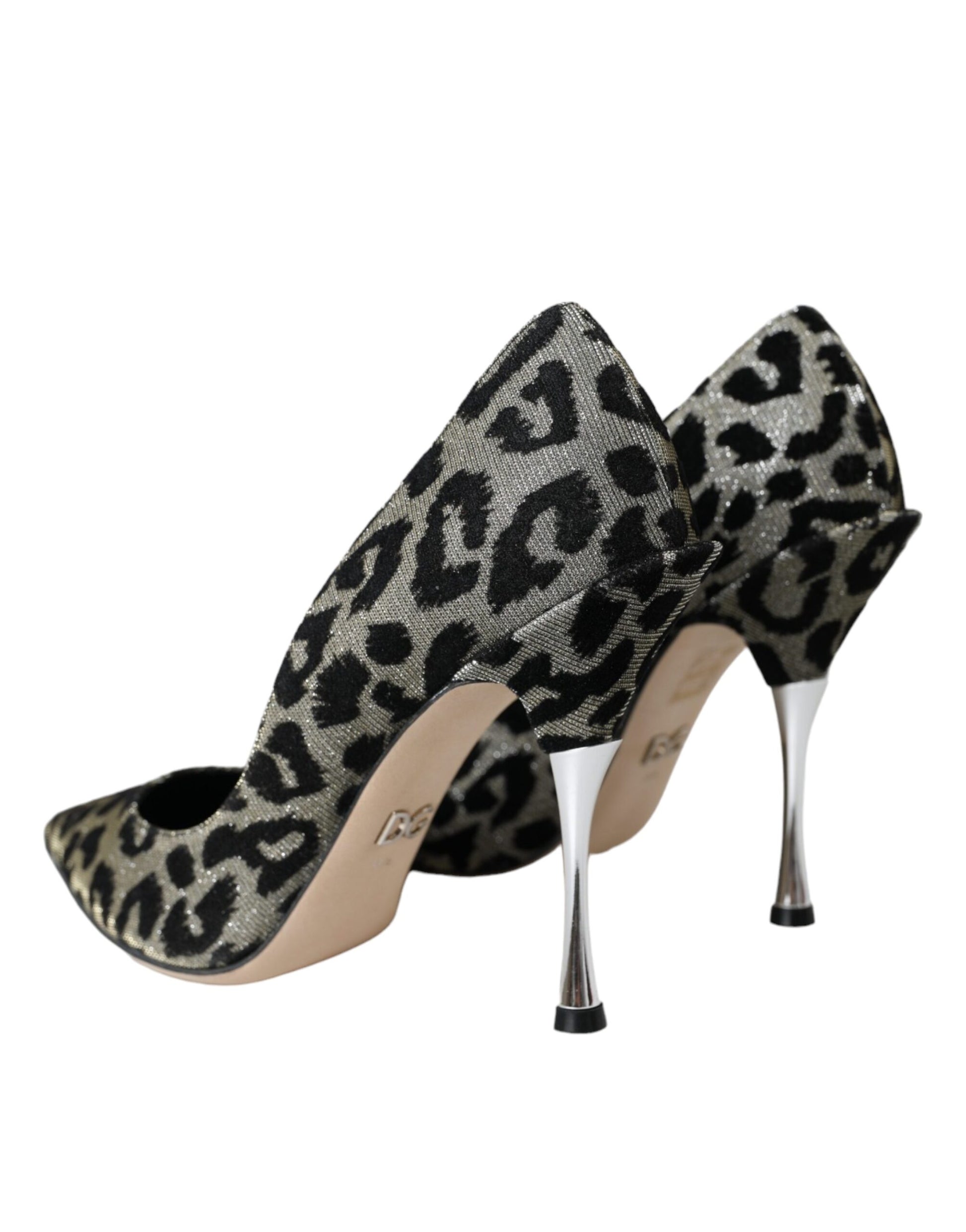 Silver Black Leopard Lurex Heels Pumps Shoes