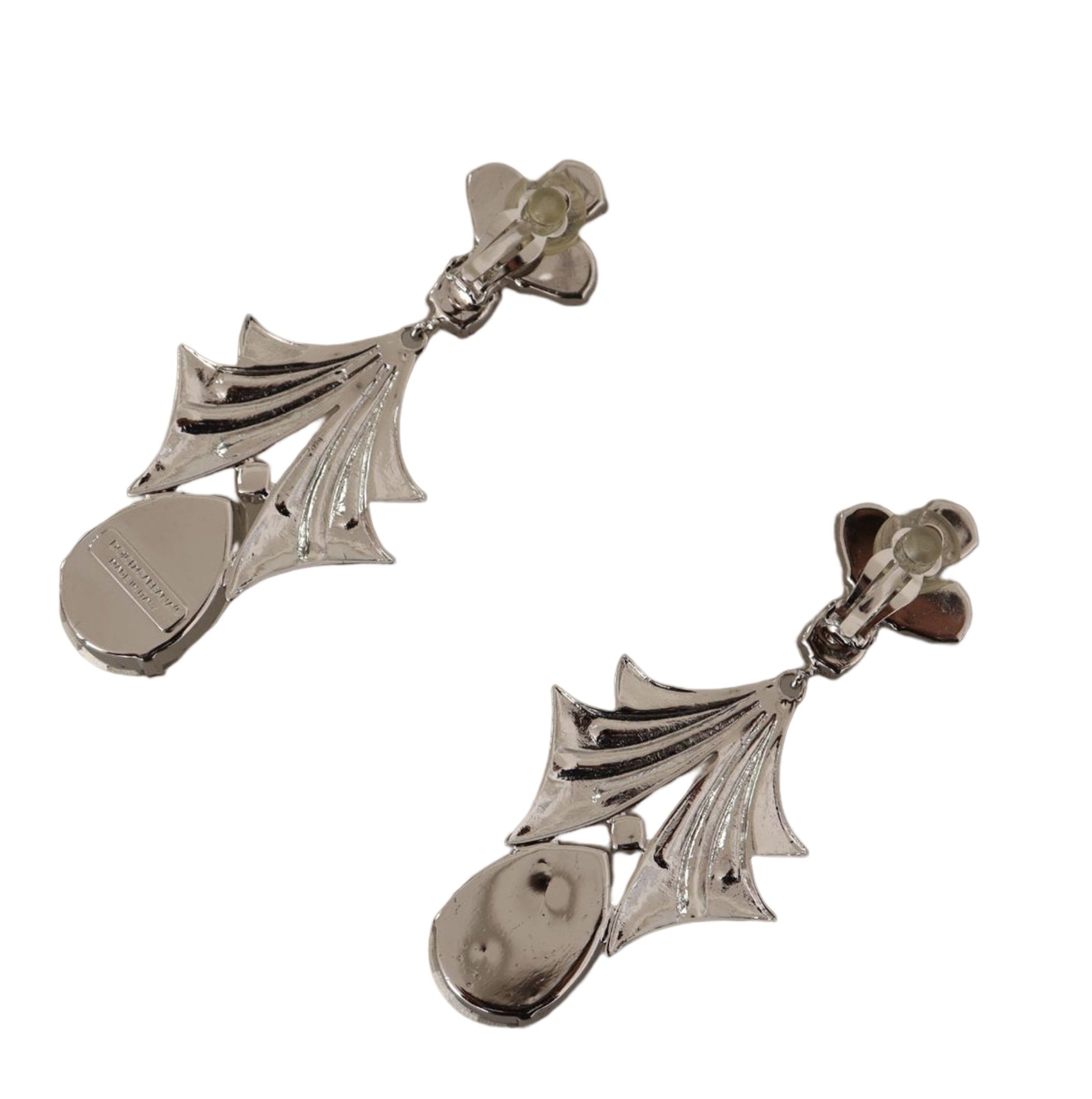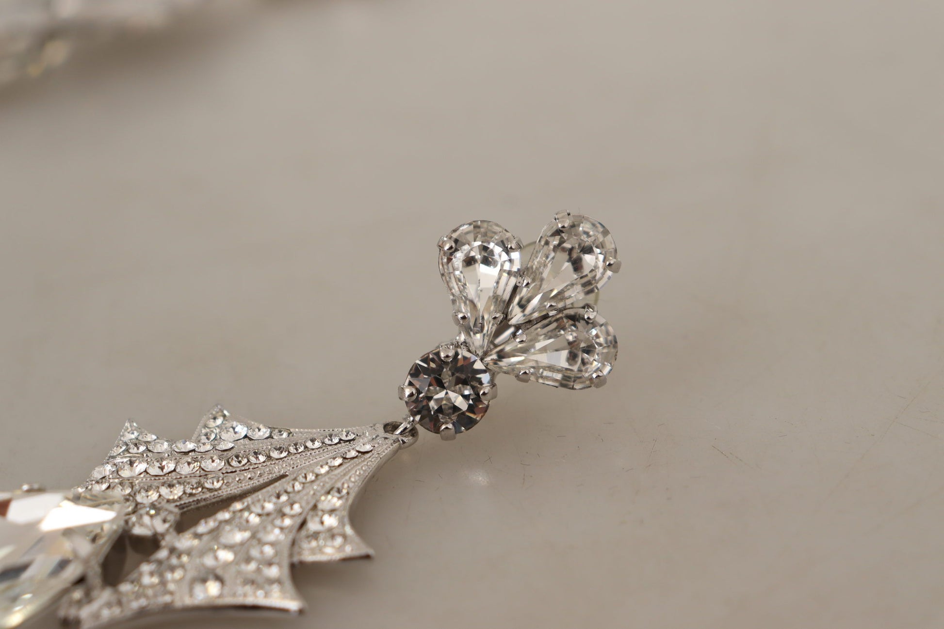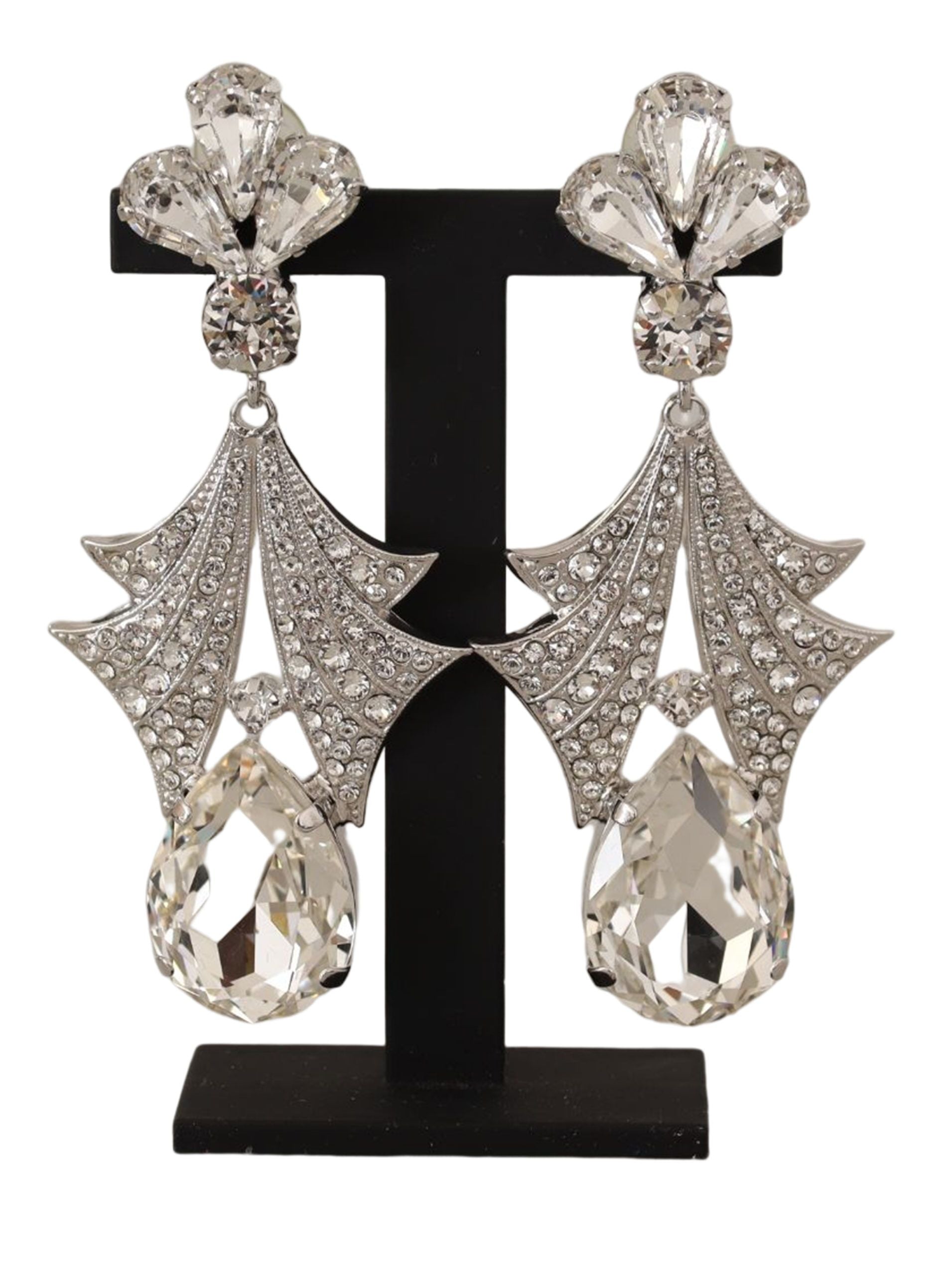 Indulge in the splendor of these enchanting Dolce & Gabbana clip-on dangling earrings. With a design inspired by the opulent Sicilian aesthetic, these silver-toned beauties capture the light and attention in any room. Embedded with dazzling clear crystals, they exude elegance and provide a statement piece that’s truly synonymous with luxury. Whether it’s a grand event or an upscale dinner, these earrings promise to add a touch of glamour.
