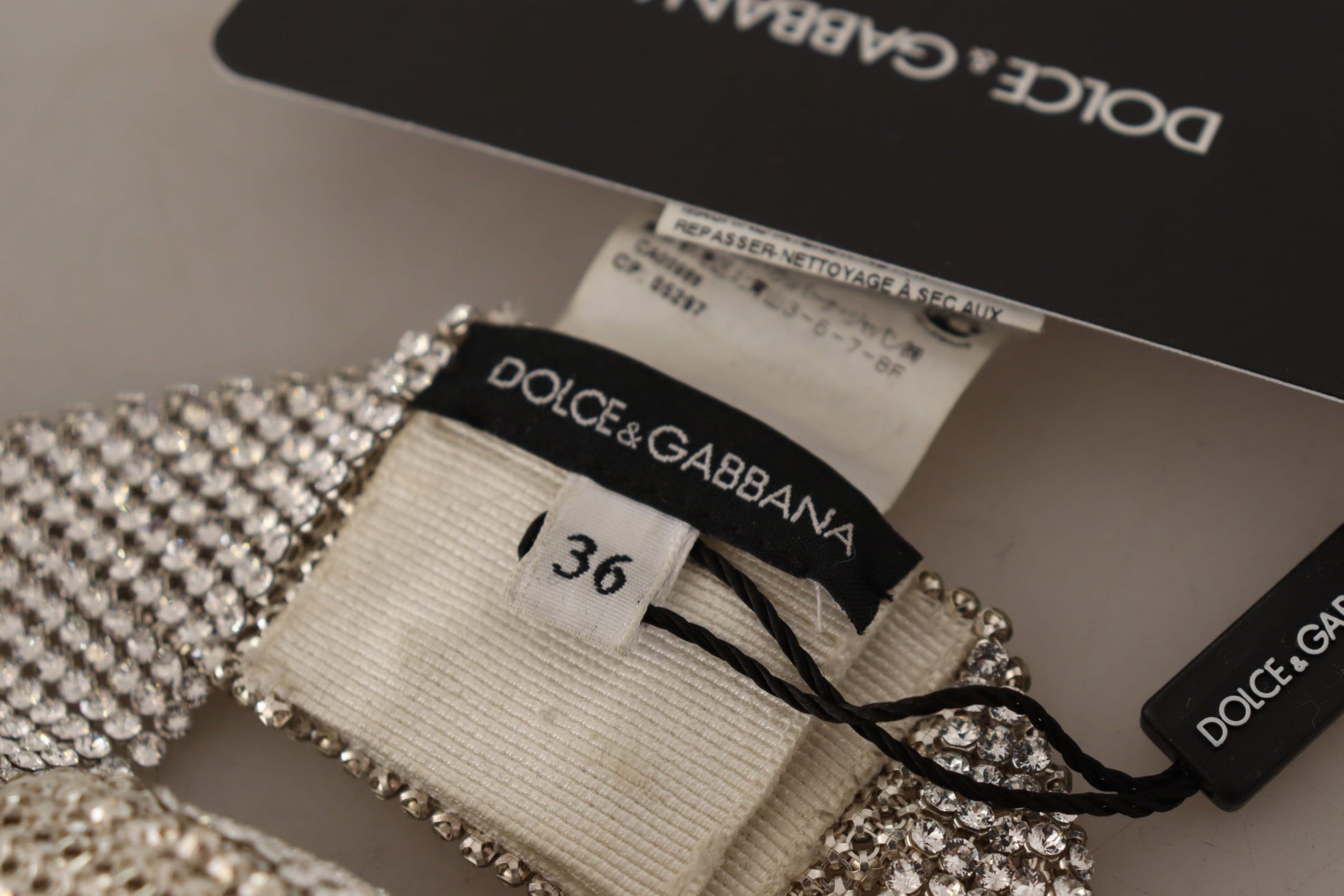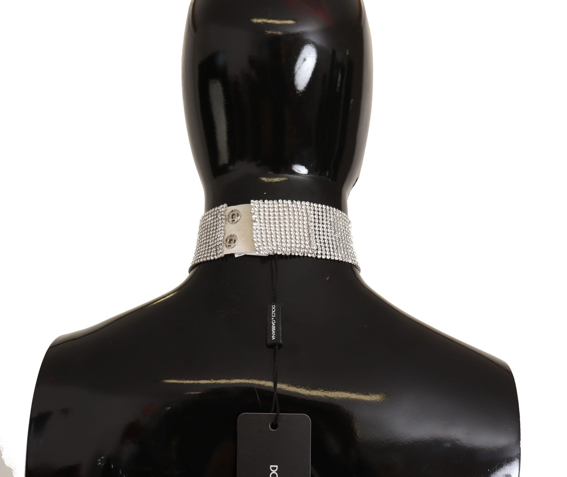 Indulge in the essence of elegance with this stunning choker necklace, a statement piece that radiates the luxurious appeal of its creators, Dolce & Gabbana. Impeccably crafted, this necklace boasts an intricate design, showcasing clear, shining crystals set against a sophisticated silver backdrop. The velcro closure ensures a seamless fit, adding a touch of practicality to its splendid design.