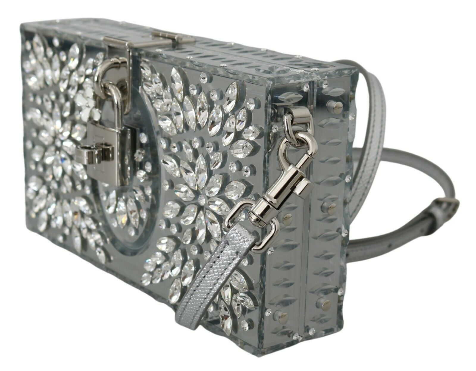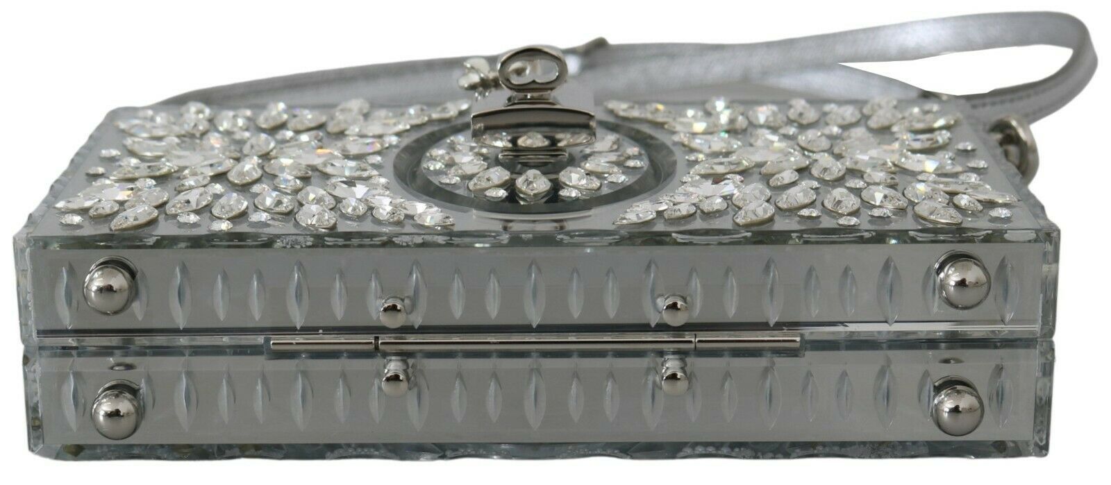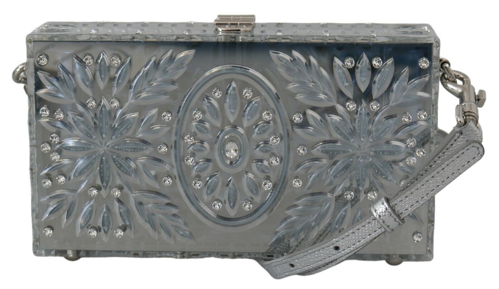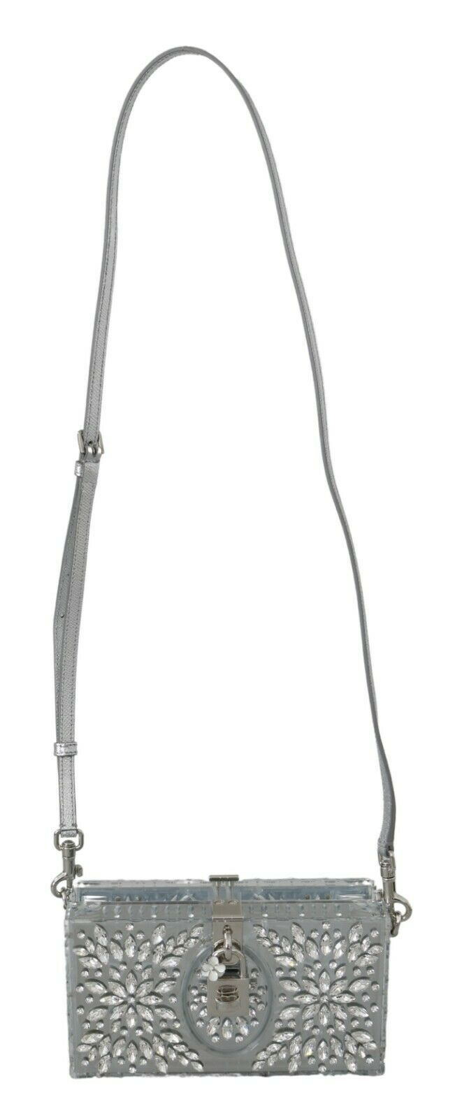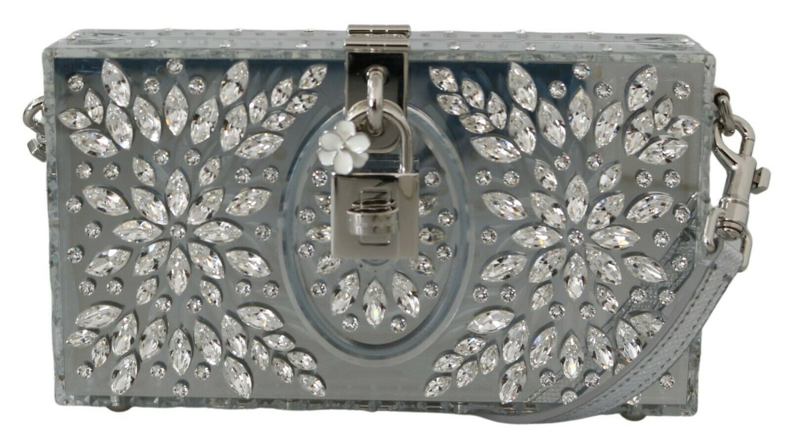 Discover the epitome of luxury with this dazzling Dolce & Gabbana Women’s BOX Bag. Designed for the fashion connoisseur, it boasts sparkling silver crystals that catch the light, creating a stunning display of opulence. Constructed with a blend of real crystal and plexiglass with leather accents, this bag is as durable as it is glamorous. A versatile adjustable and detachable shoulder strap provides multiple carrying options, while the padlock closure ensures your belongings stay secure. Crafted in Italy, this dazzling accessory is not just a statement piece but a treasure that embodies style and sophistication.