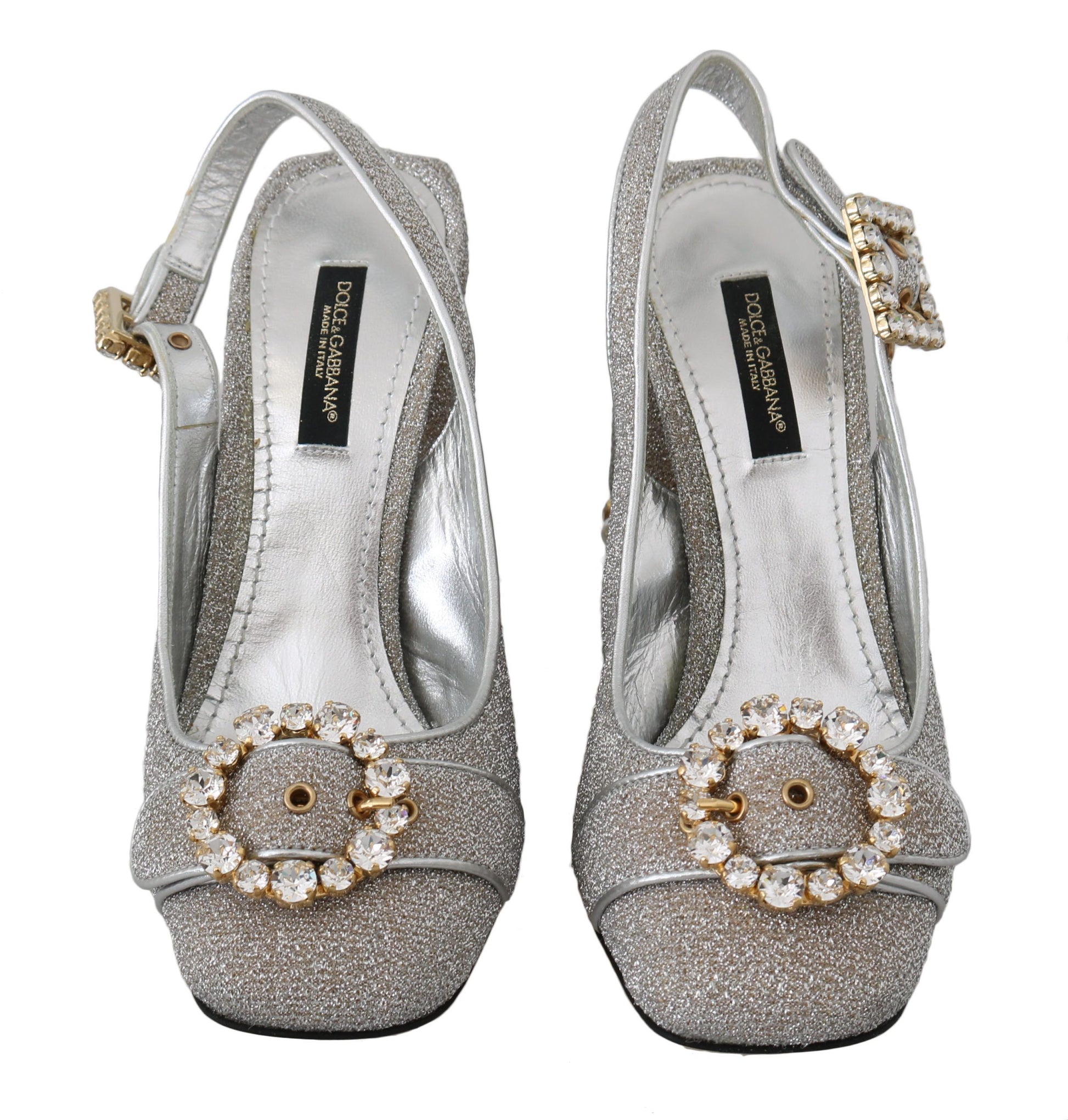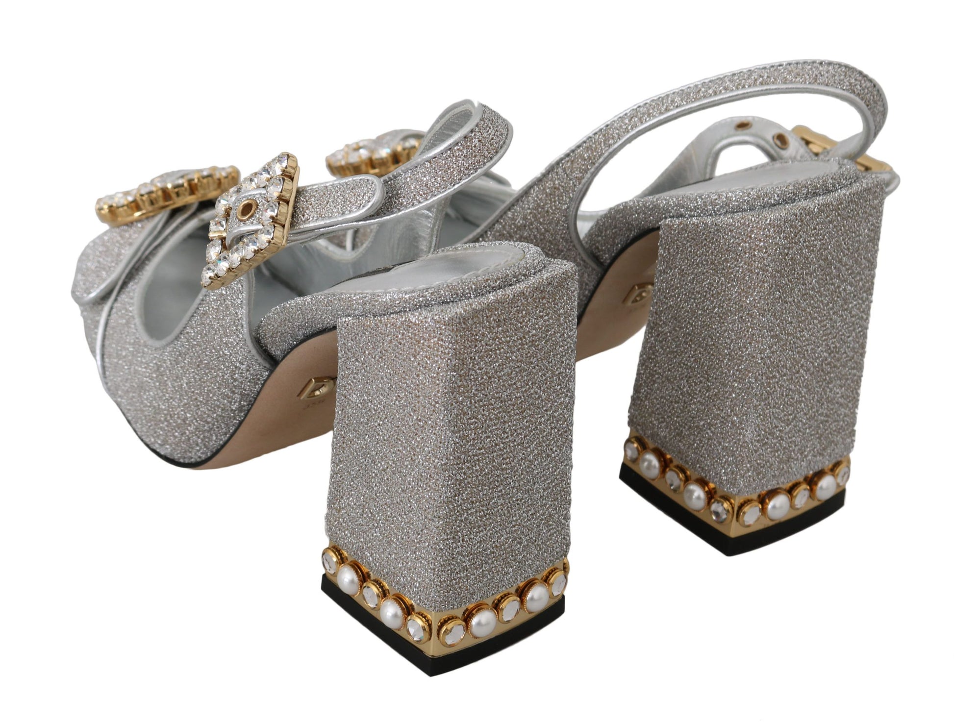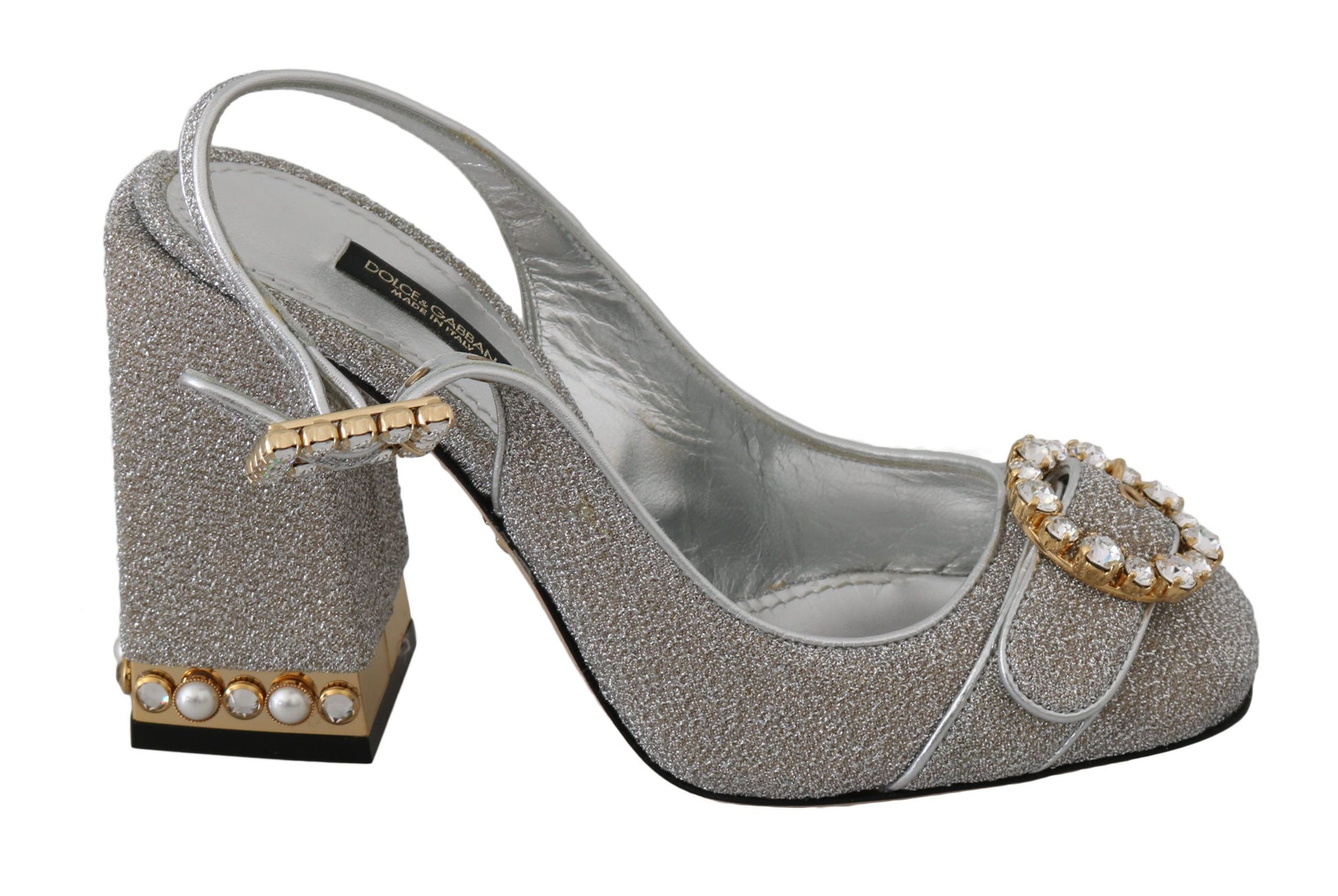 Step into luxury with these exquisite Dolce & Gabbana ankle strap sandals. Perfect for special occasions, these pumps boast a dazzling silver-gold hue complemented by clear crystals and pearls for a touch of opulence. Crafted with a synthetic exterior and a plush leather interior, these shoes promise both style and comfort. Complete with a leather sole and the iconic logo details, they’re a true Italian masterpiece.