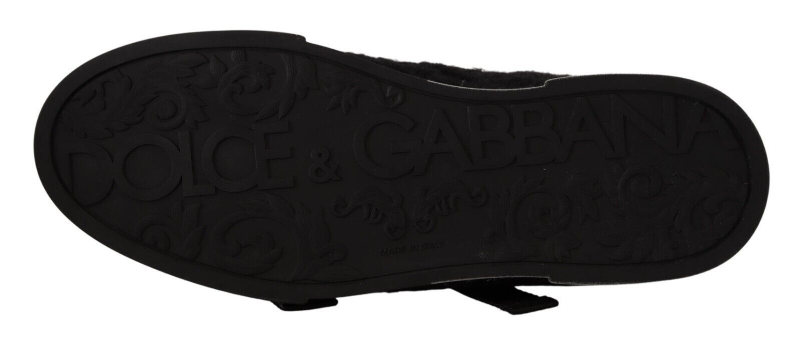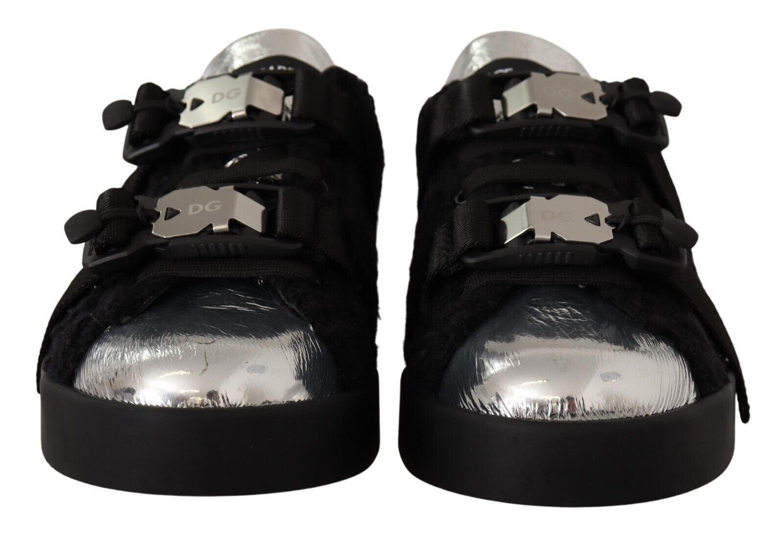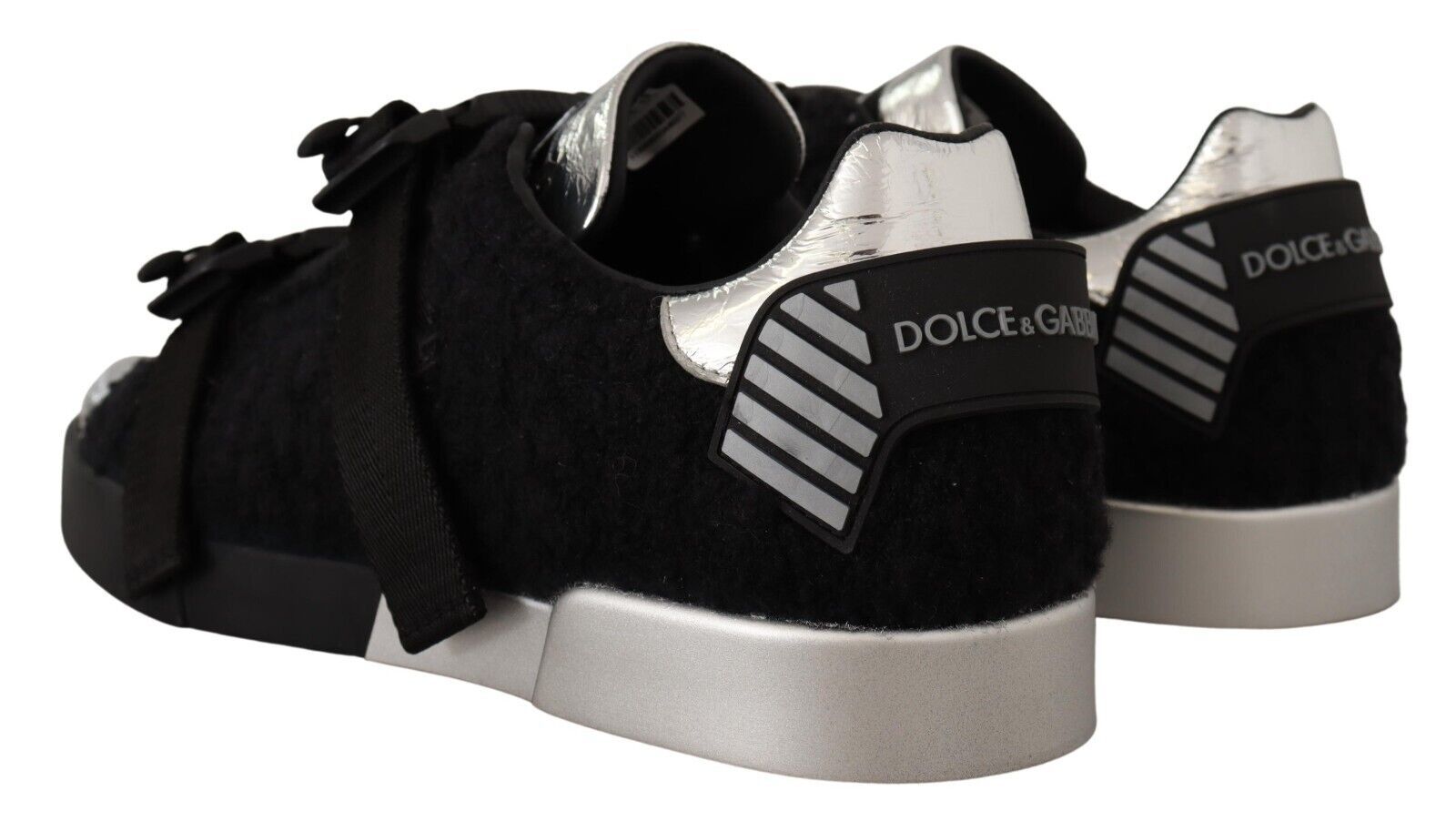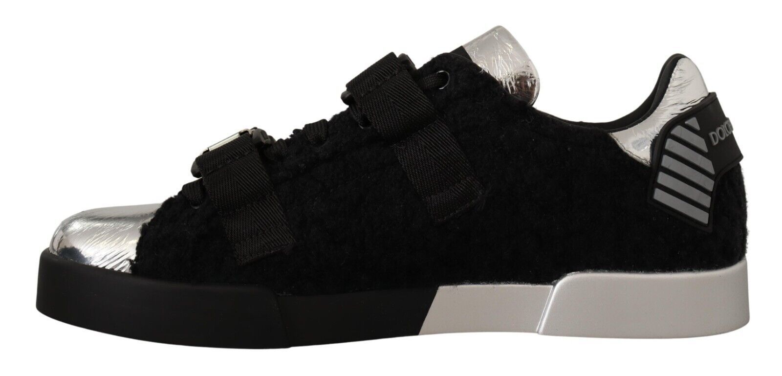 Discover the epitome of Italian craftsmanship with these exquisite Dolce & Gabbana sneakers. Designed to elevate your casual look, these shoes feature a lavish blend of premium leather and sumptuous shearling, ensuring both style and comfort. The black and silver hues exude a sense of modern luxury, while the unique lace and buckle closure system adds a distinctive touch to these low-top sneakers. Whether stepping out for an event or taking a casual stroll, the robust rubber sole provides durability and grip, accompanying you in every stride. Proudly made in Italy, these sneakers bring a dash of elegance to your footwear collection.