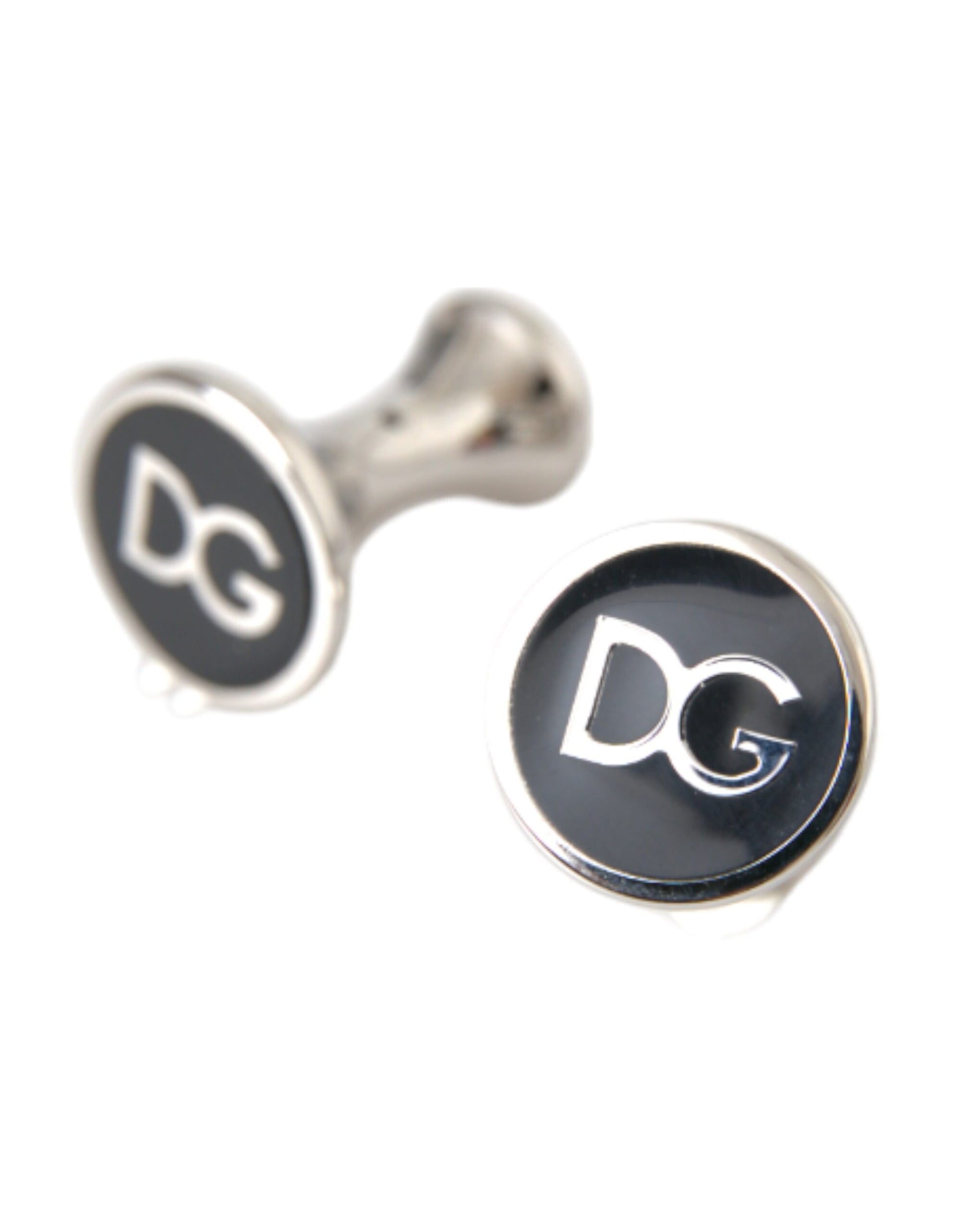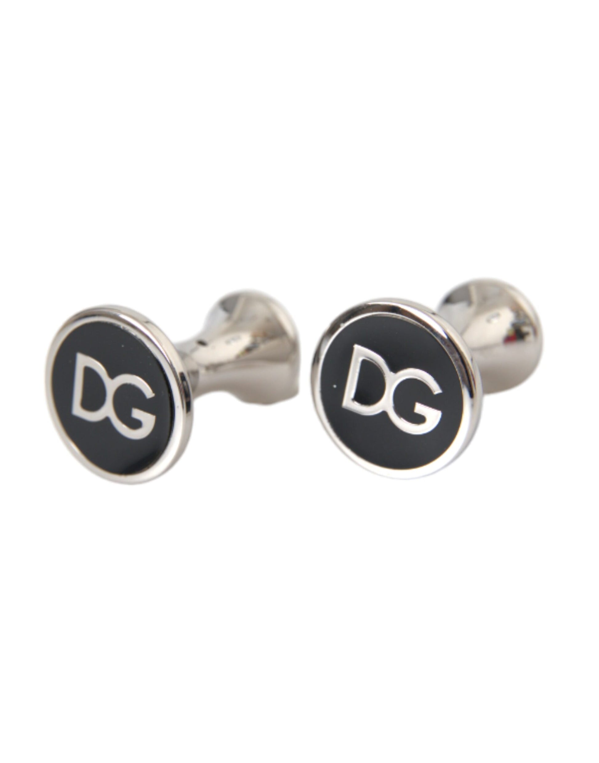 Silver Plated Brass Round Pin DG Logo Cufflinks