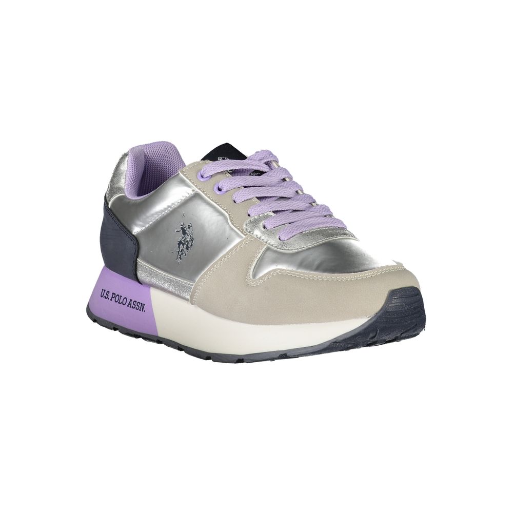 Stride in style and embrace the boldness with these chic sneakers from U.S. POLO ASSN., where comfort meets high-street fashion. Crafted for the modern woman, the sports footwear features eye-catching contrast details, a playful print, and the iconic logo, making sure you stand out in every crowd. These lustrous silver sneakers are the perfect blend of elegance and sporty charm, designed to elevate your everyday look.
