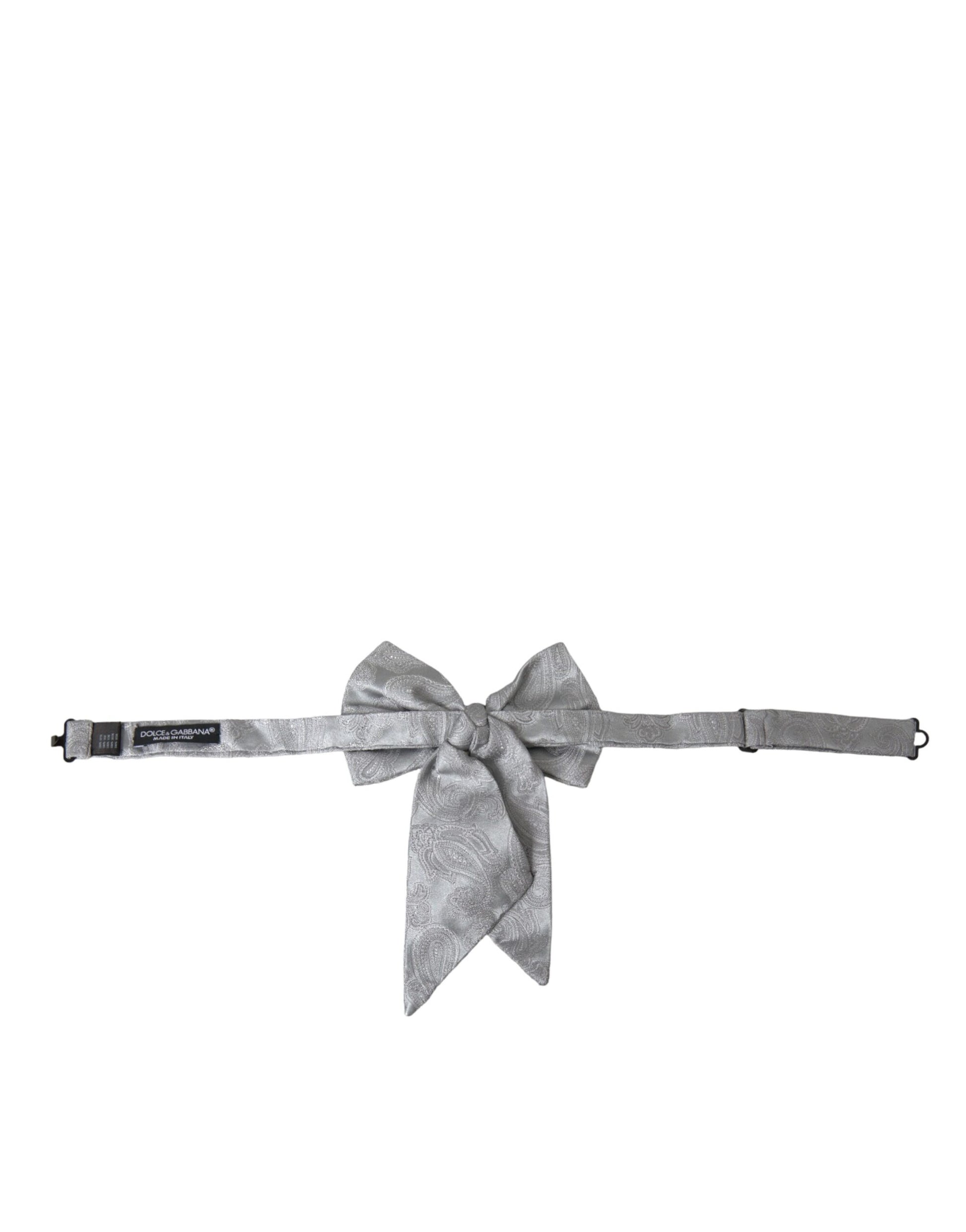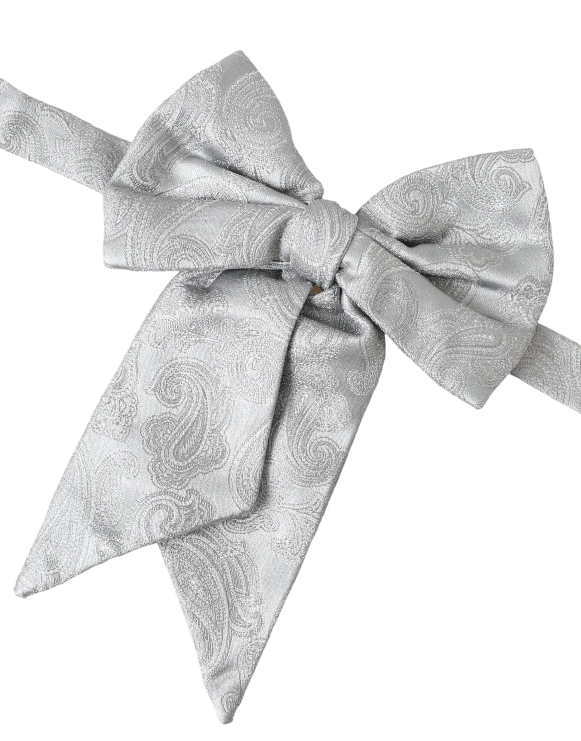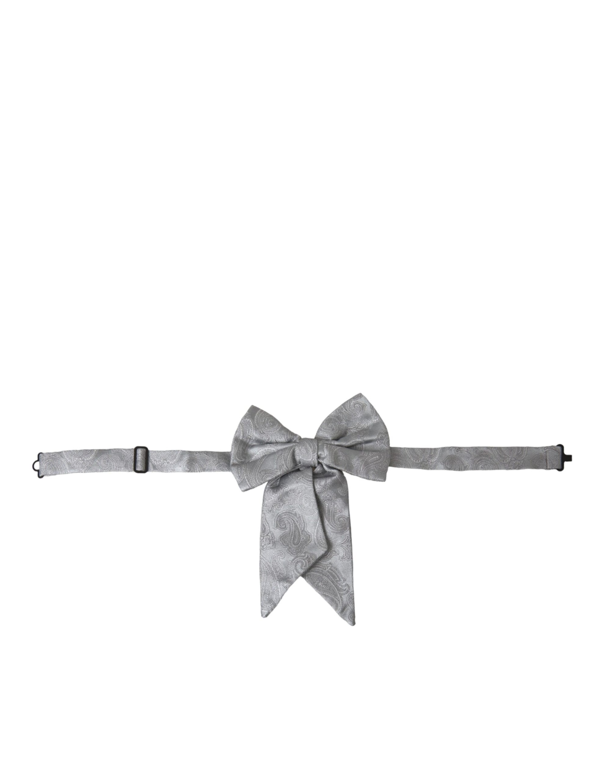 Silver Ribbon Silk Adjustable Neck Men Bow Tie