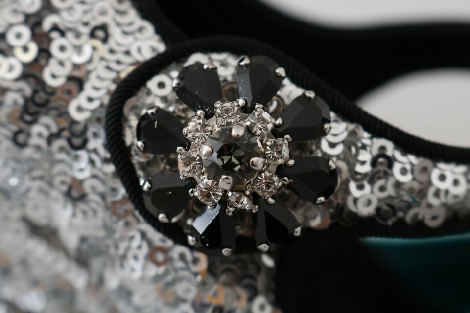 Elegant Silver-Black Crystal Mary Janes Pumps