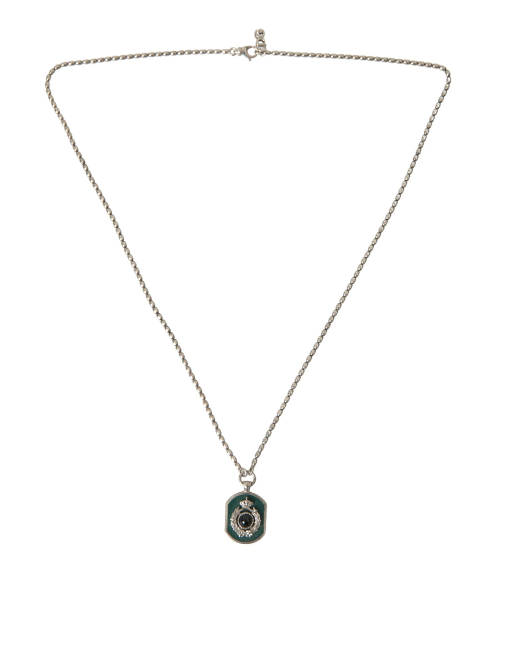Silver Tone Brass Chain Tag Bead Crown Pendant Necklace