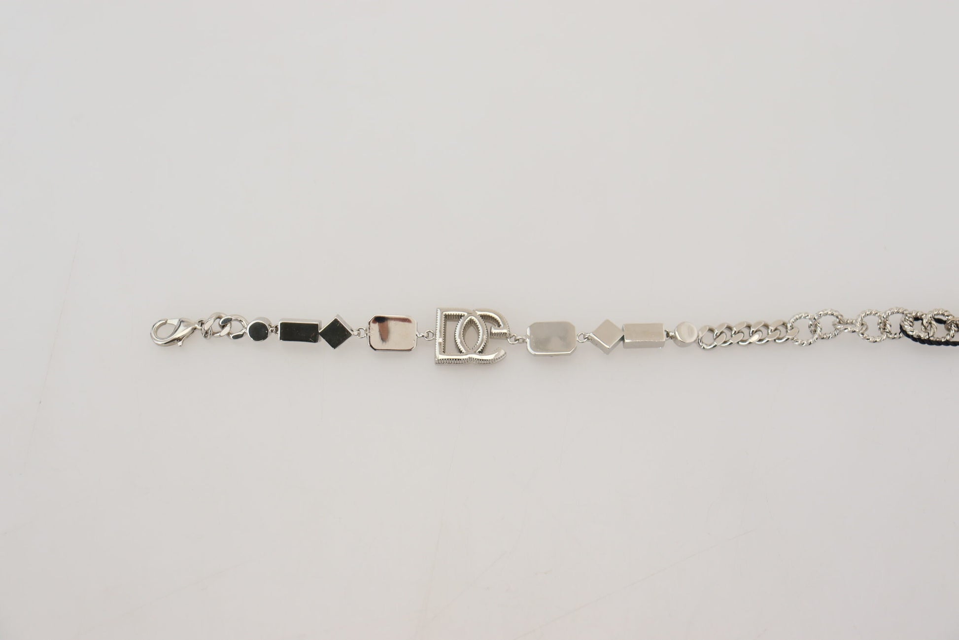 Indulge in the opulence of this Dolce & Gabbana chain bracelet, a stunning accessory that wraps your wrist in pure glamour. Crafted with a harmonious blend of 70% brass and 30% glass, this bracelet is both sturdy and sparkling. The silver hue exudes a timeless elegance, while the logo decorations add a touch of luxury associated with the prestigious brand. At a length of 22cm, it’s designed to make a statement on any woman’s wrist. Proudly made in Italy, this bracelet upholds the high standards of craftsmanship expected from Dolce & Gabbana.
