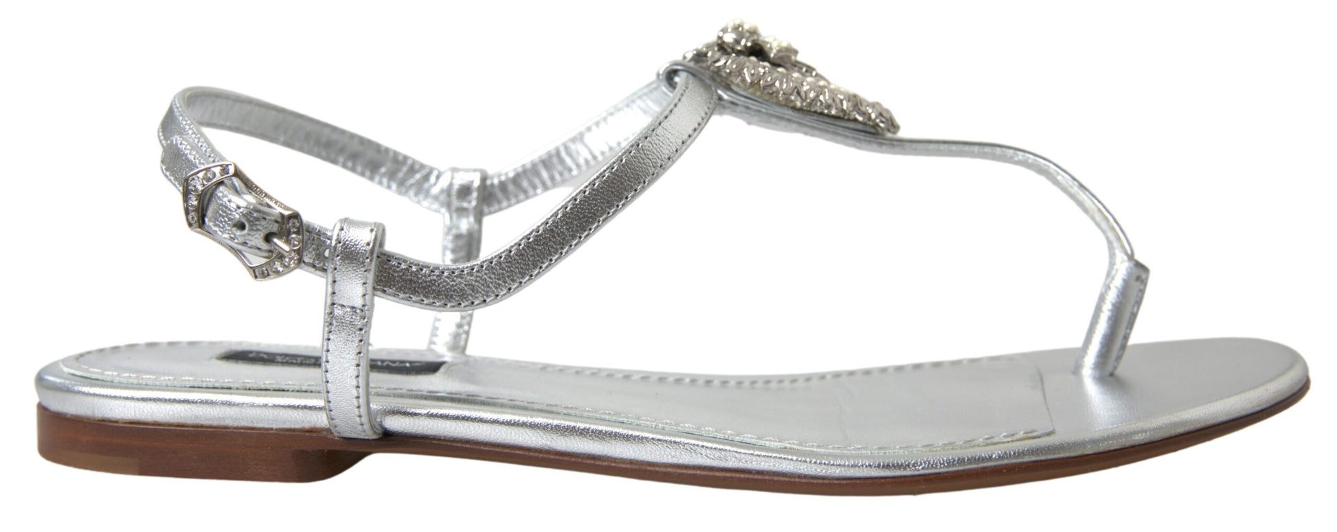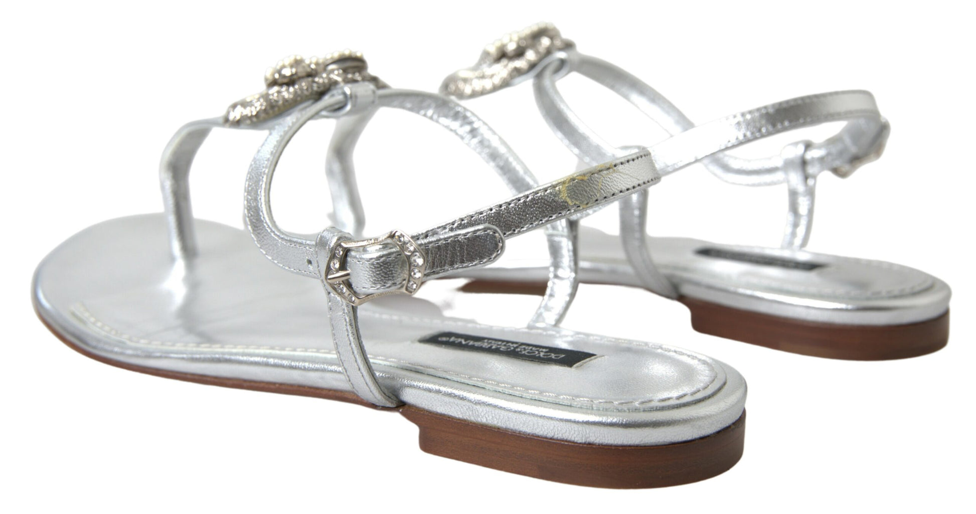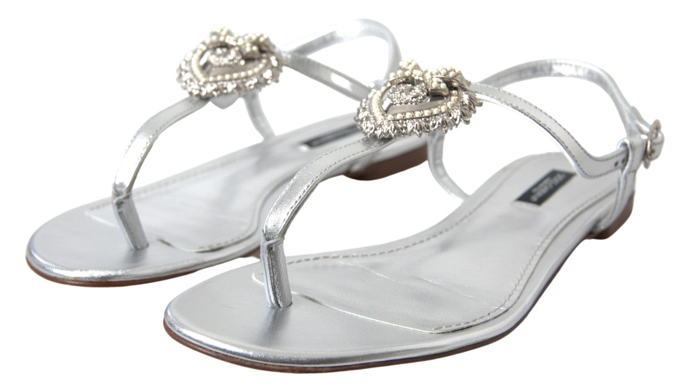 Step out in style with these stunning, brand new sandals from Dolce & Gabbana . Designed to add a touch of sophistication to any outfit, these silver-tone flats showcase charming heart details that capture the essence of luxury footwear. Crafted from premium leather, they boast a comfortable strap design ensuring both elegance and practicality for your walk. Perfect for any fashion-forward wardrobe, these sandals are a true testament to Italian craftsmanship.