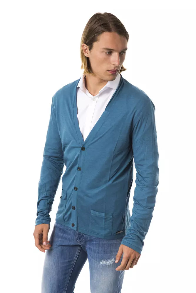 Step into the world of sophisticated luxury with this BYBLOS Teal Cardigan, a timeless addition to the modern man’s wardrobe. Crafted in Italy, this dashing piece blends functionality with elegance, showcasing front pockets and long sleeves for a blend of comfort and refined style. Perfect for layering, it will elevate your attire with its distinct color and premium material blend.