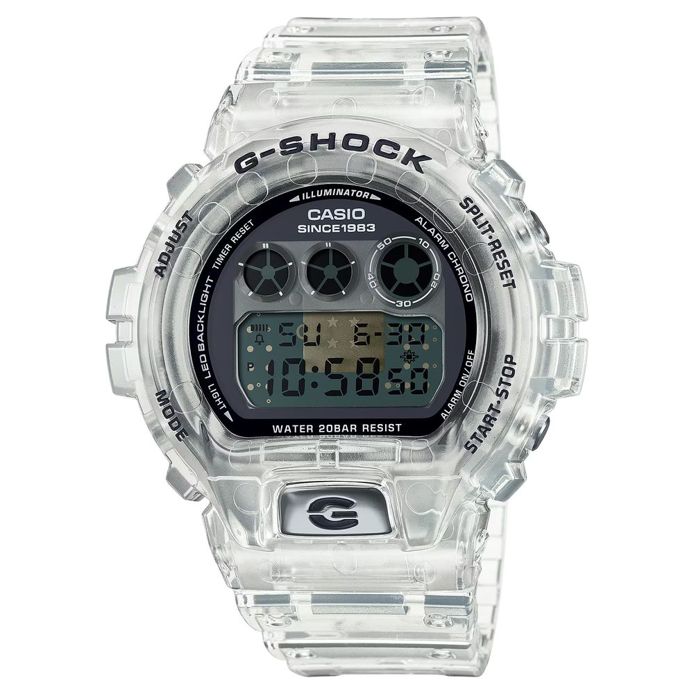 Type of mechanism: QUARTZ. Display: DIGITAL. Material Of Case: RESIN. Colour Of Case: TRANSPARENT. Material Of Bracelet: RESIN. Colour Of Bracelet: TRANSPARENT. Dial Colour:GREEN. Glass type: MINERAL. Clousure: BUCKLE. Water resistence: 20ATM. Diameter dial: 53MM. Special Functions:CASIO CLEAR REMIX G-SHOCK-LIMITED EDITION 40TH ANNIVERSARY G-SHOCK- FIRST G-SHOCK WITH TRANSPARENT CASE-