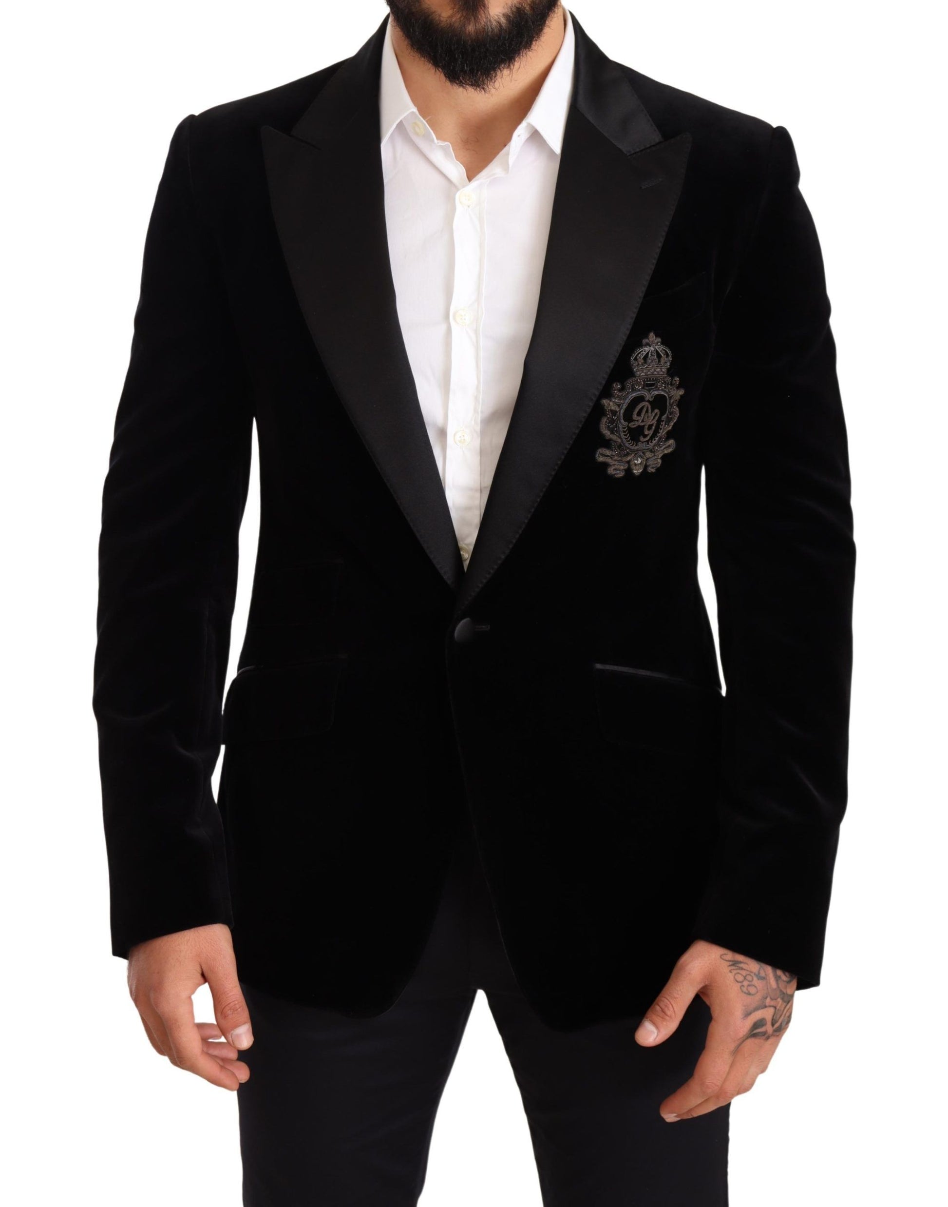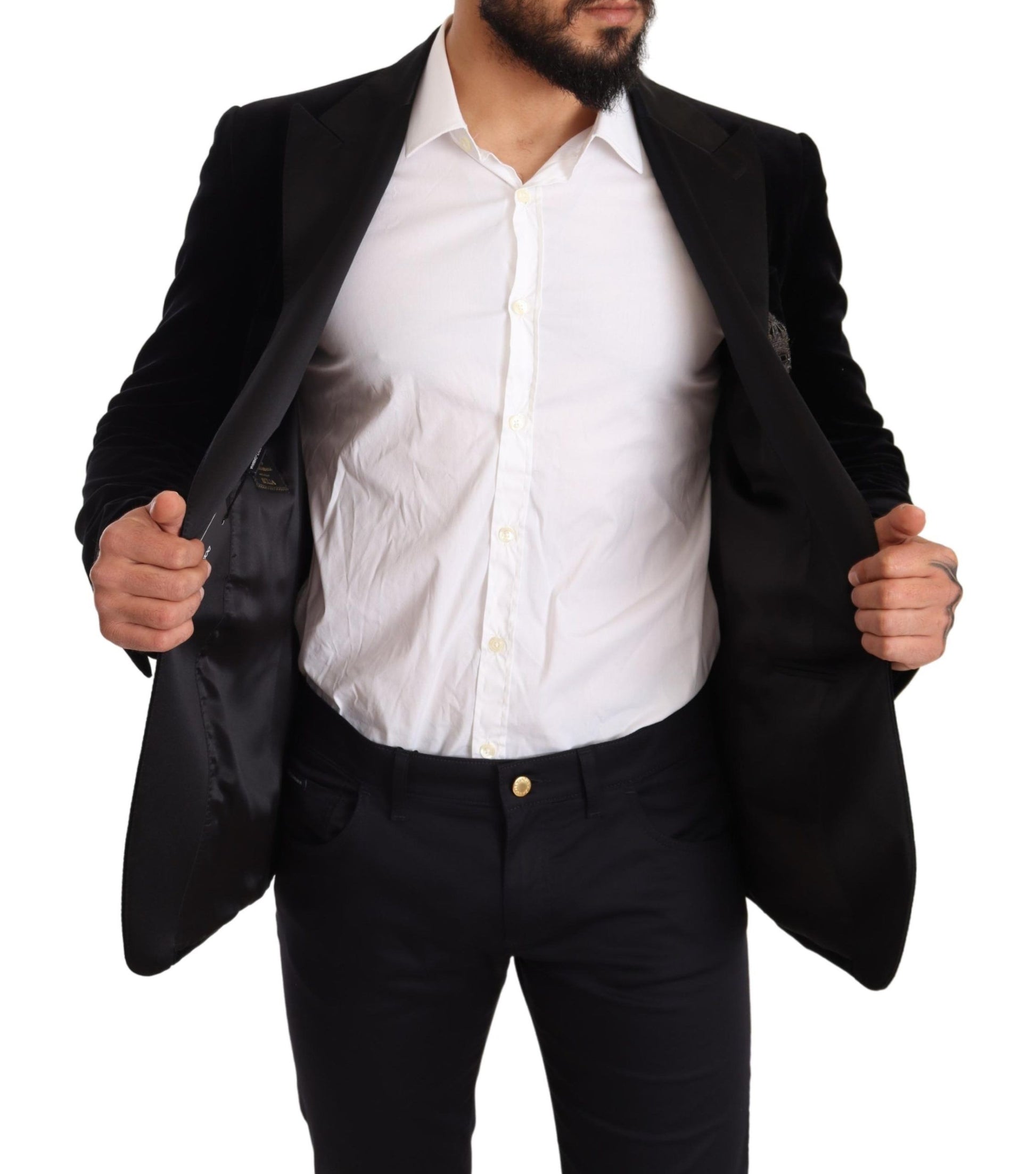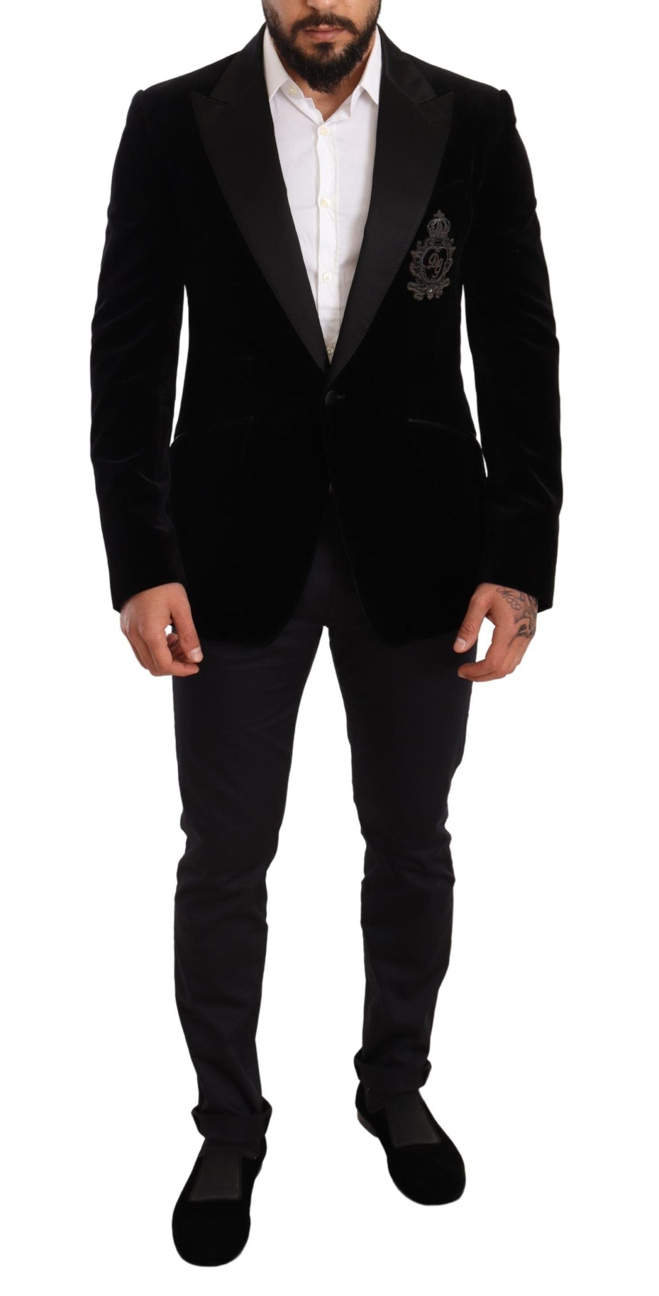 Indulge in the epitome of Italian luxury with this stunning Dolce & Gabbana Sicilia Blazer. Crafted with meticulous attention to detail, this formal jacket boasts a sleek single-breasted design with a one-button closure and a sharp peak lapel, perfect for elevating your sartorial game. The blazer’s slim fit silhouette is rendered in a timeless black color, ensuring it pairs effortlessly with your wardrobe staples for an array of occasions.