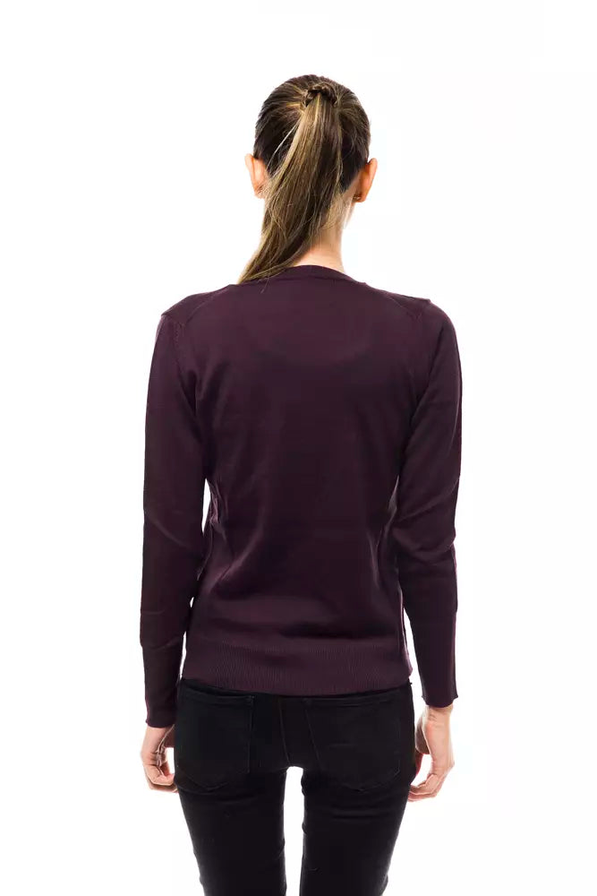 Unleash a wave of bold sophistication with this Ungaro Fever V-neck sweater. Crafted for the fashion-forward spirit, the sweater features an exquisitely applied logo that sets a trendy tone. Its rich purple hue is a statement in itself, perfectly blending comfort with high-end style. Made from a luxurious blend of wool and acrylic, this Italian-made piece promises to keep you warm and in vogue through any season.