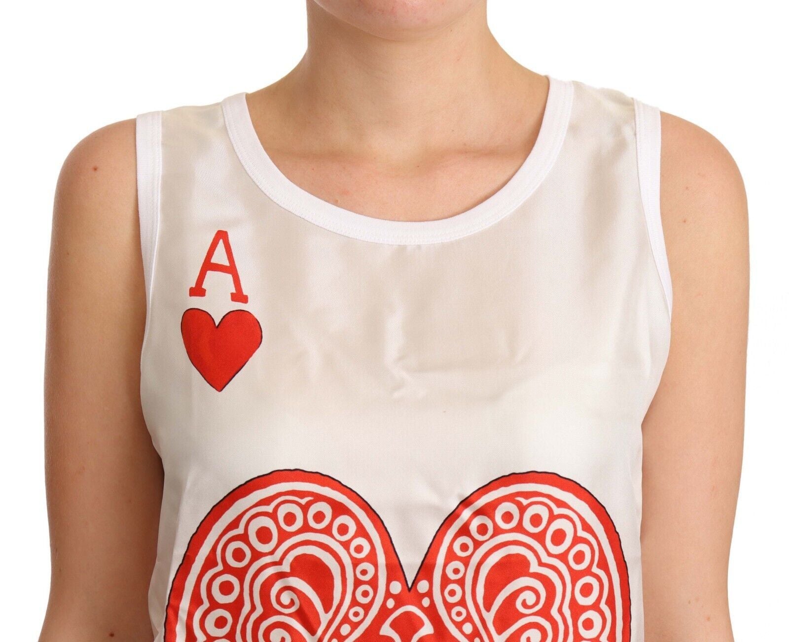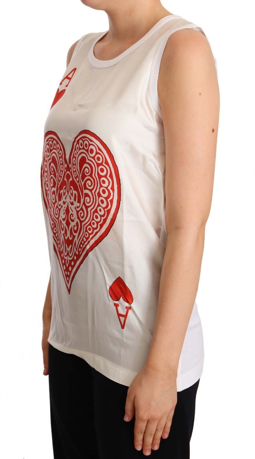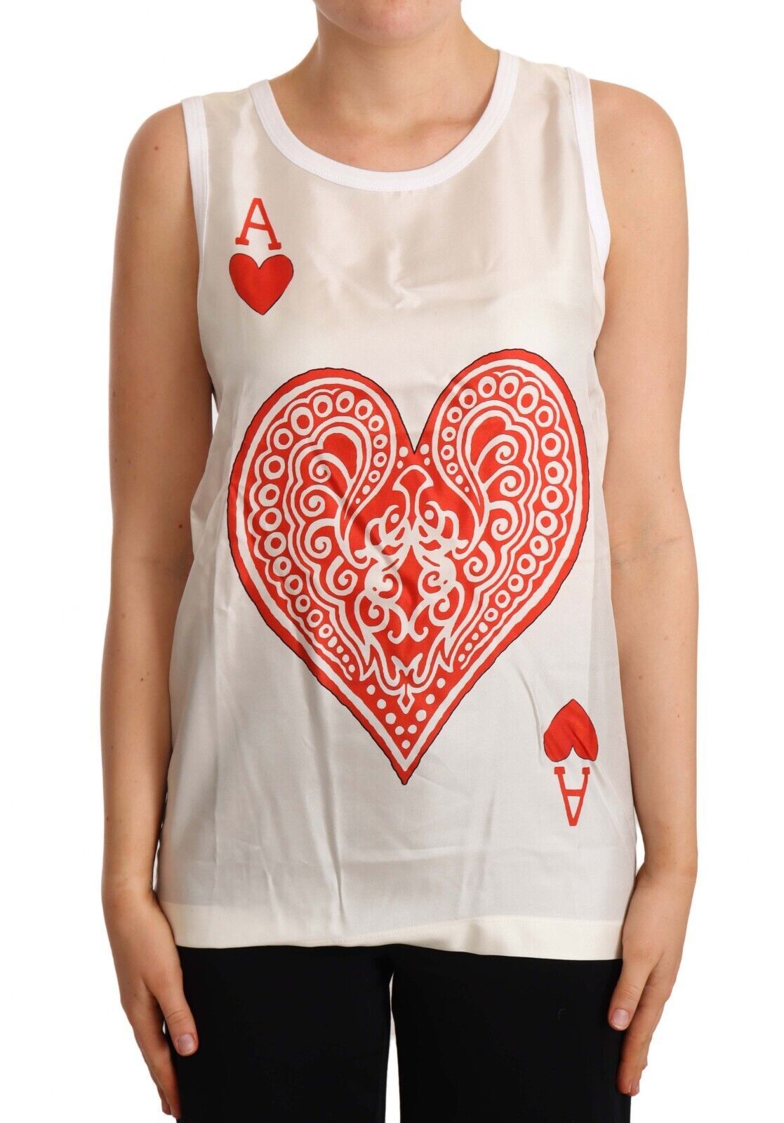 Indulge in the playful elegance of this 100% Authentic, brand new tank top by Dolce & Gabbana. Adorned with a charming ace of hearts print, this top is a testament to sophisticated style with a hint of whimsy. Its premium blend of cotton and silk ensures a soft, luxurious feel against your skin, making it a perfect piece for any refined wardrobe. Crafted with immaculate attention to detail and finished with the iconic logo, it’s a true standout made in Italy.