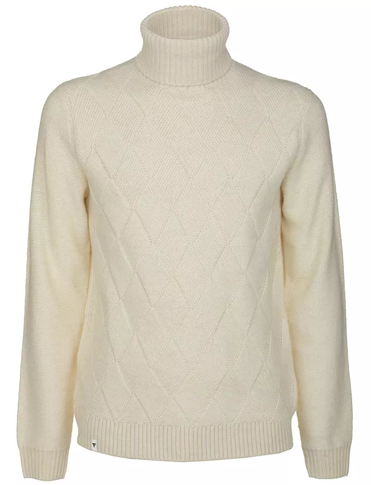 Wrap yourself in cozy sophistication with this stylish turtleneck sweater, featuring a unique diamond embroidery pattern. Perfect for chilly days, it offers a blend of warmth and elegance. Its versatile white hue makes it a must-have for any fashion-conscious individual looking to add a dash of class to their wardrobe.