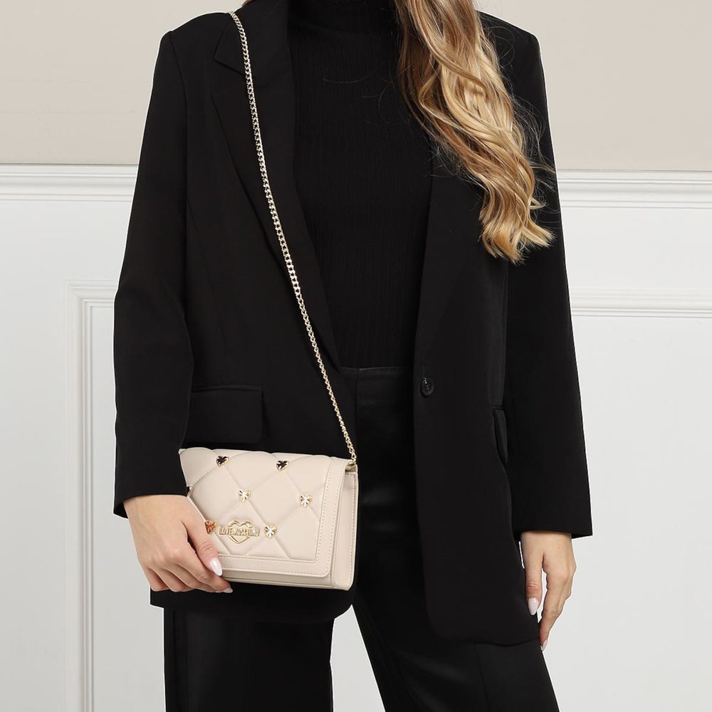 Elevate your accessory collection with this exquisite faux leather crossbody bag, a perfect blend of elegance and functionality. Embellished with a striking metal logo and shimmering gold hardware, this compact yet spacious bag measures 22x14x6 cm, making it the ideal companion for your day or evening ventures.