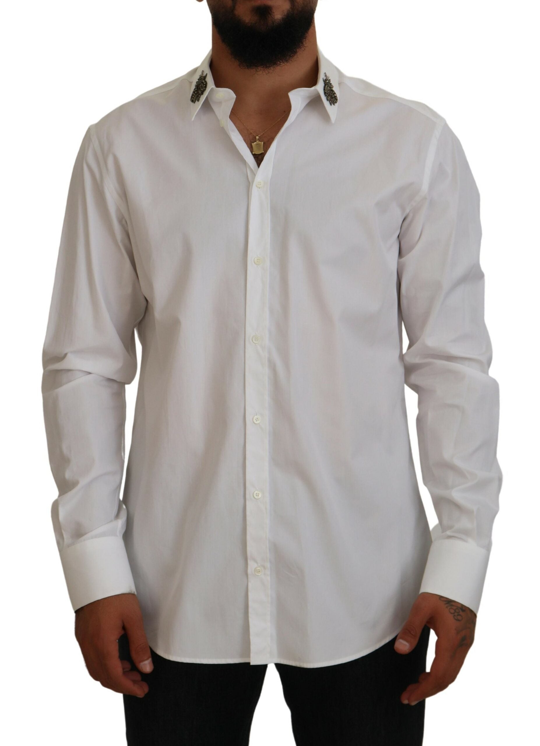 Elegant Embellished White Cotton Shirt