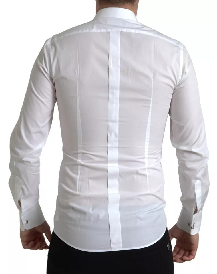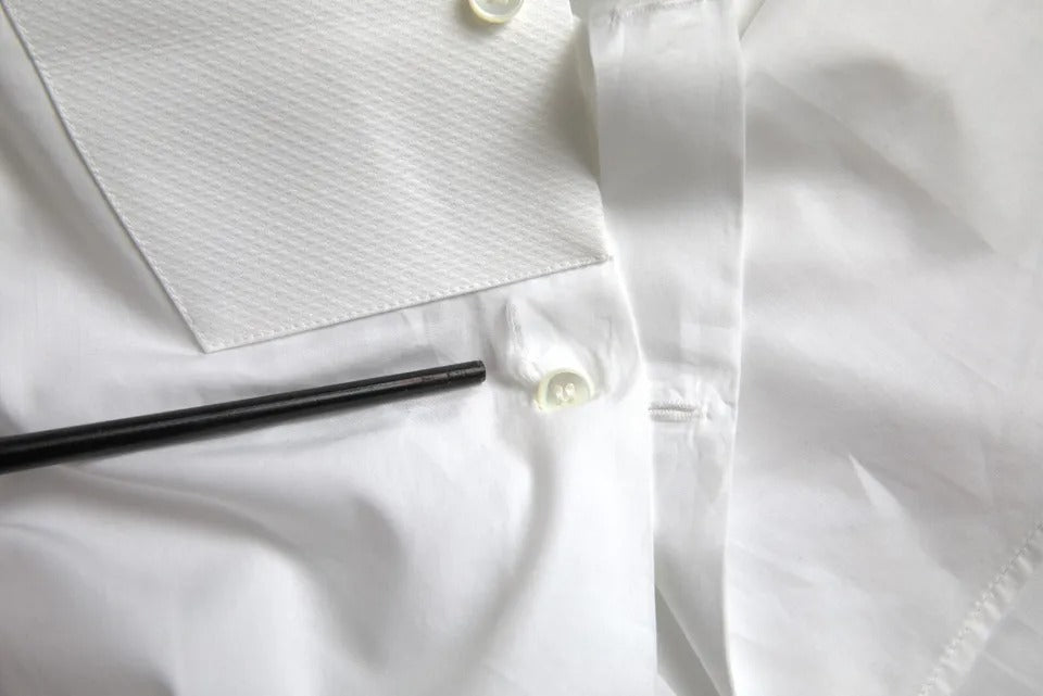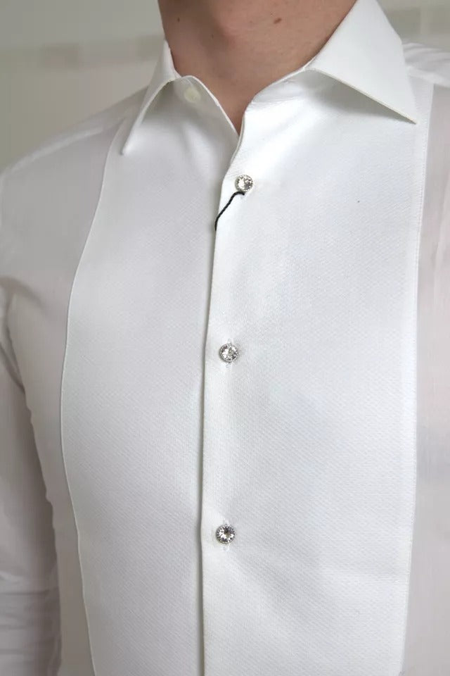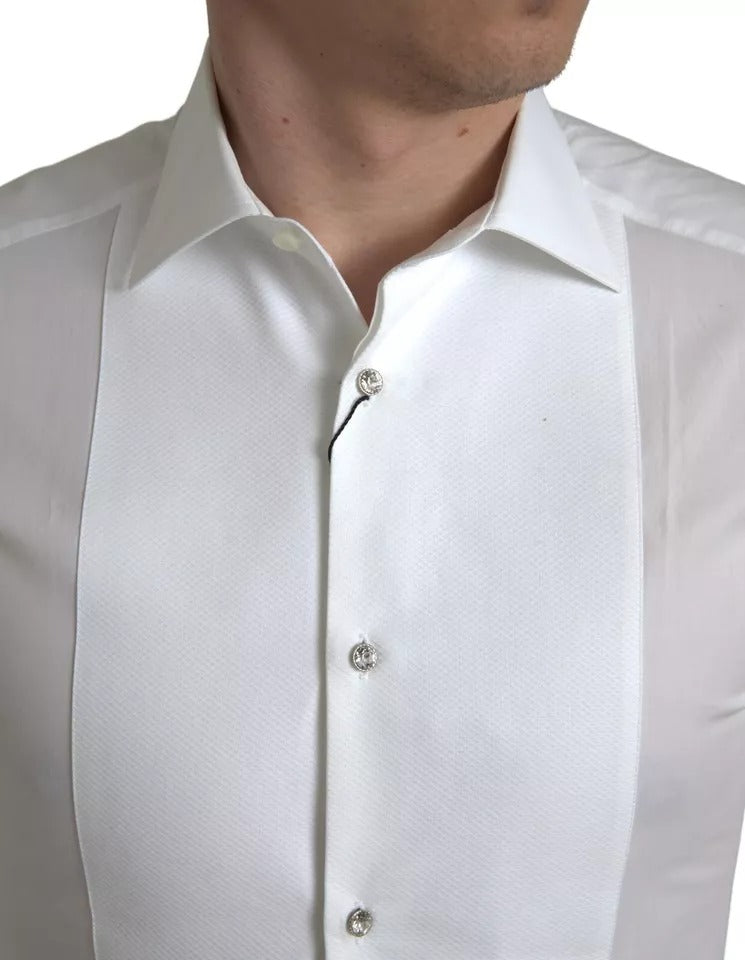 Absolutely stunning, 100% Authentic, brand new with tags Dolce & Gabbana GOLD white cotton poplin shirt featuring a bib with contrasting buttons.