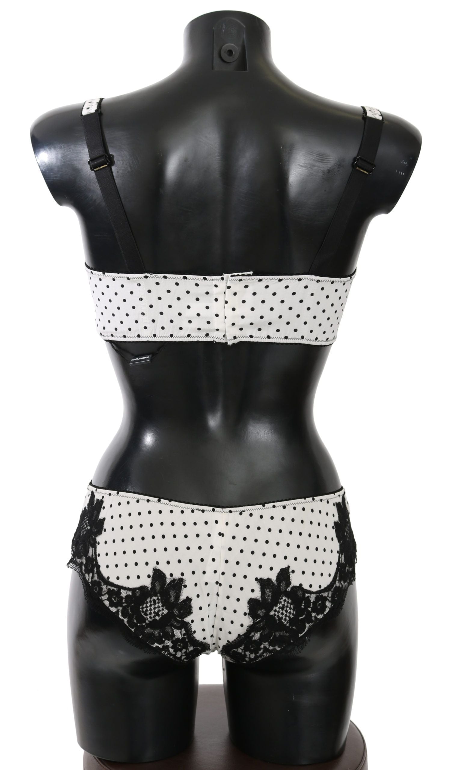 Indulge in the delicate luxury of this exquisite lingerie set by Dolce & Gabbana . Crafted with a romantic blend of white silk adorned with black polka dots and floral lace, this bra and bottom set epitomizes feminine allure. Perfect for special occasions or elevating your everyday intimates, this Italian-made duo offers both comfort and style, complete with the iconic logo detailing for a touch of designer finesse.