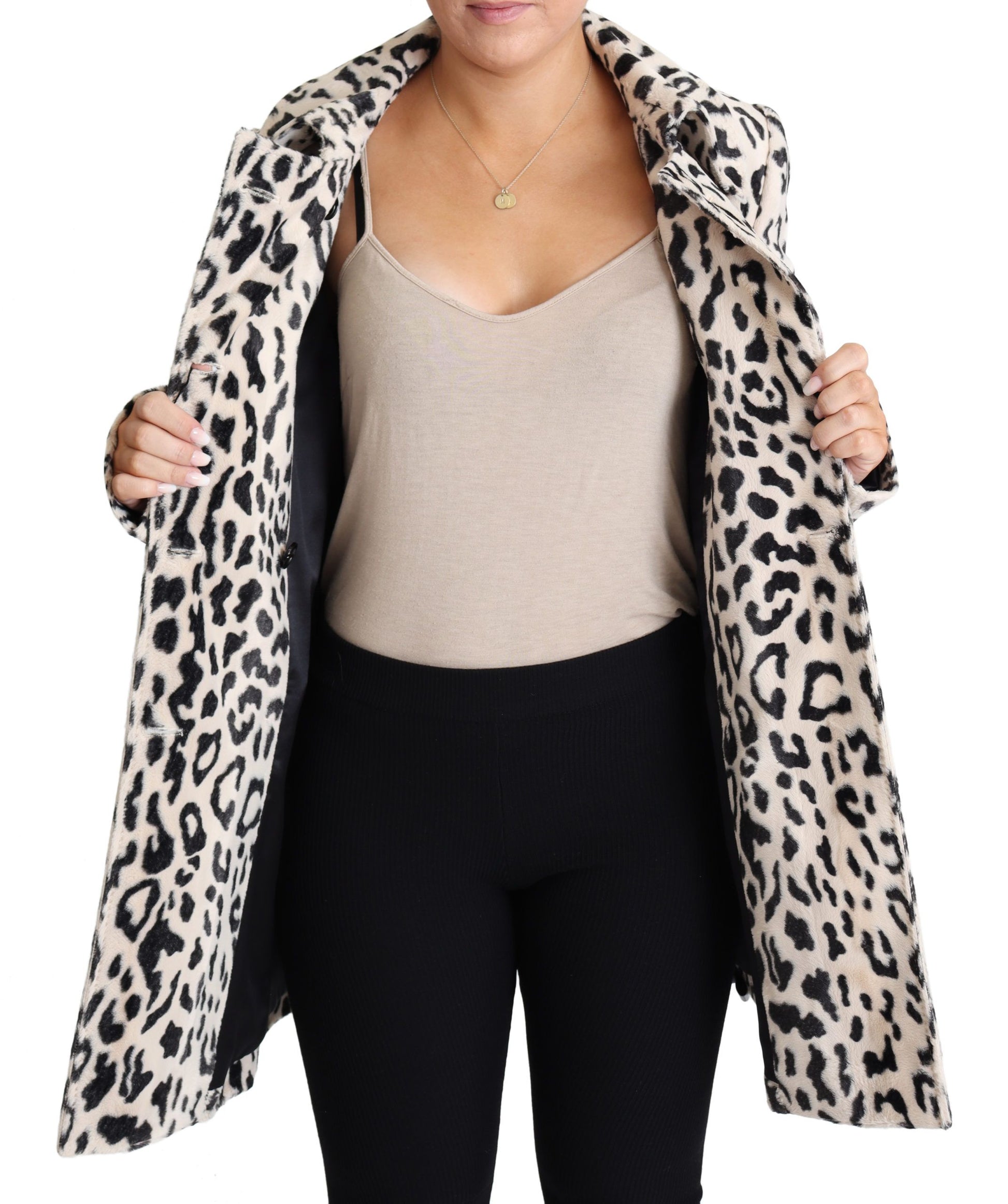 Indulge in the epitome of luxury outerwear with this impeccable Leopard Print Faux Fur Coat by Dolce & Gabbana. This sumptuous piece boasts a velvety touch and a striking design that ensures you’ll stand out with elegance and flair. The trench coat style features a wide, maxi collar and velvet-covered buttons that exude sophistication, while the double-breasted front and flap pockets add a touch of classic charm. Its stretch silk satin lining allows for seamless comfort, making this coat a perfect blend of fashion and function. Crafted with high craftsmanship in Italy, this coat is not only a statement piece but a testament to the exclusivity that Dolce & Gabbana is renowned for.