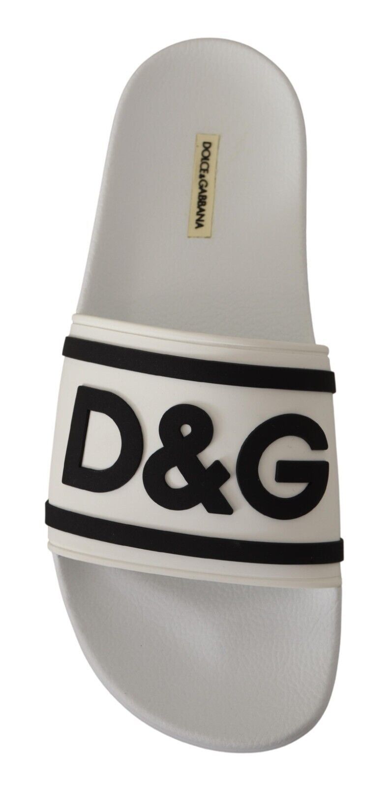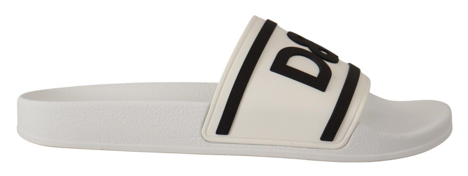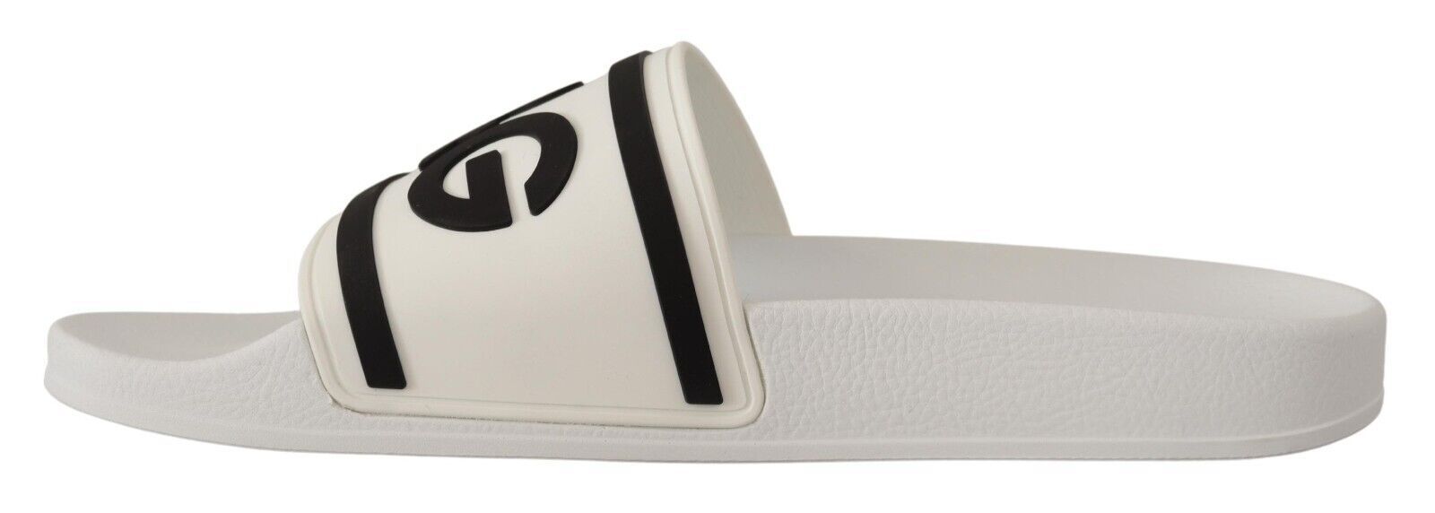 Step into luxe comfort with these stunning white leather slides, accentuated by a bold black logo detail for a touch of elegance. Perfect for the discerning gentleman who values style and comfort in his casual footwear. Crafted in Italy with meticulous attention to detail, these slides are a testament to the unparalleled quality of Dolce & Gabbana .