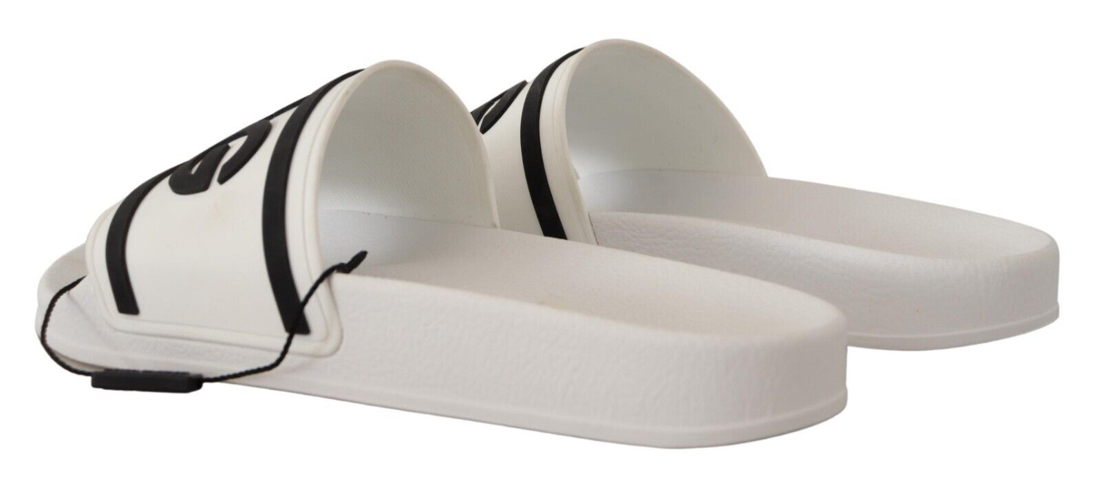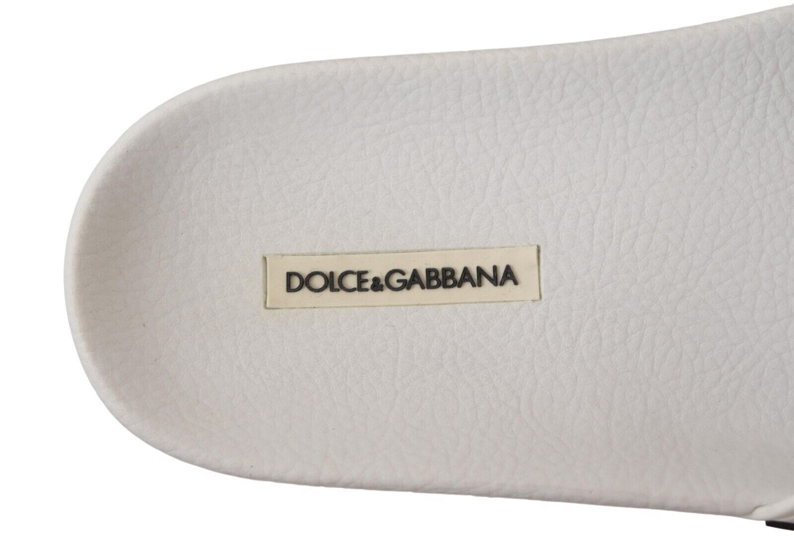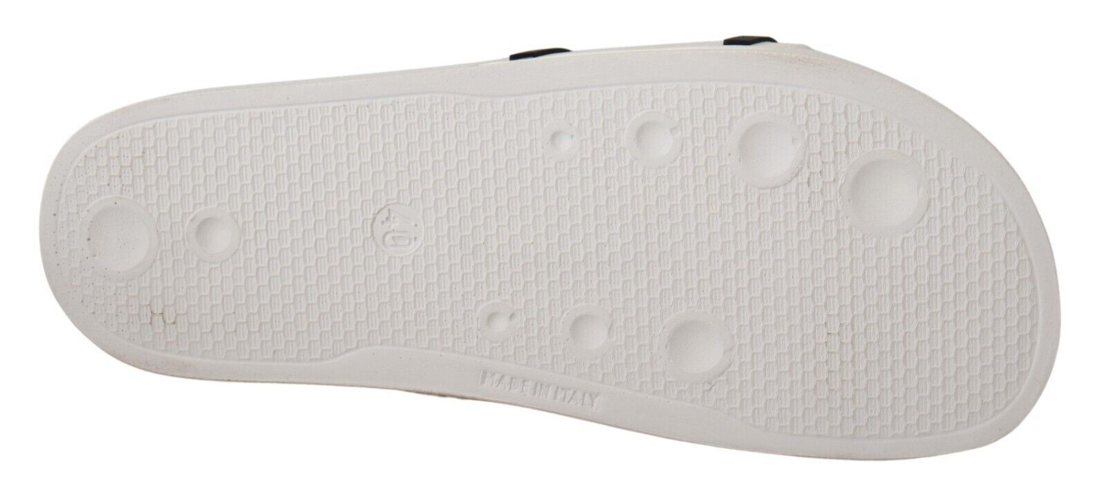 Step into comfort and luxury with our 100% Authentic men’s white slides, featuring a bold black logo. These elegant slip-on sandals are perfect for every fashion-forward gentleman. Adorned with logo details and crafted with a durable rubber sole, they promise to be a versatile addition to your wardrobe. Made in Italy, home to excellent craftsmanship, these slides are a testament to Dolce & Gabbana’s commitment to quality.