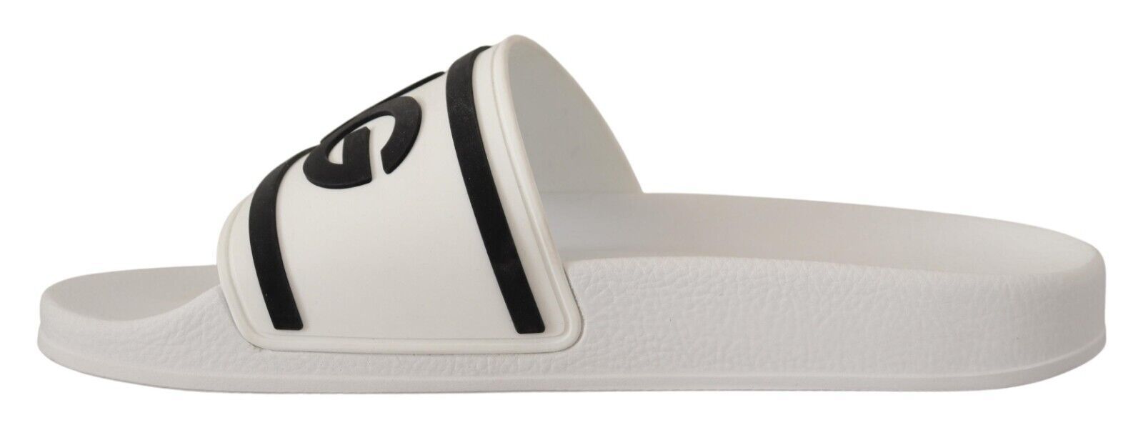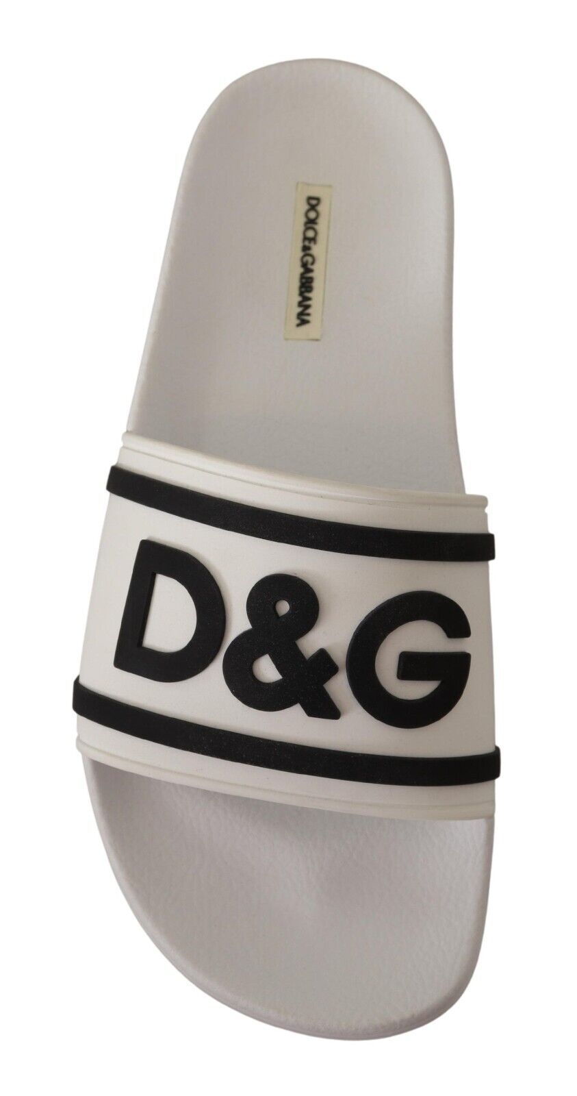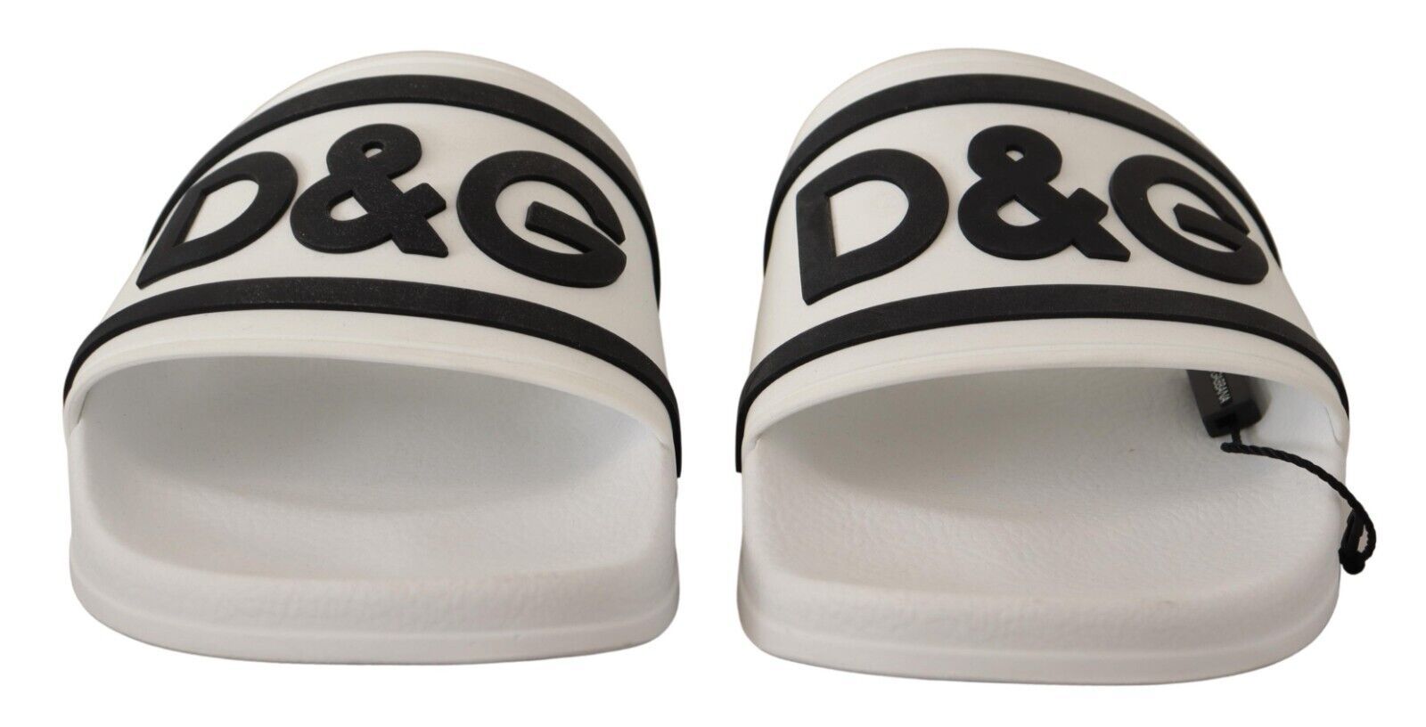 Step into comfort and luxury with our 100% Authentic men’s white slides, featuring a bold black logo. These elegant slip-on sandals are perfect for every fashion-forward gentleman. Adorned with logo details and crafted with a durable rubber sole, they promise to be a versatile addition to your wardrobe. Made in Italy, home to excellent craftsmanship, these slides are a testament to Dolce & Gabbana’s commitment to quality.