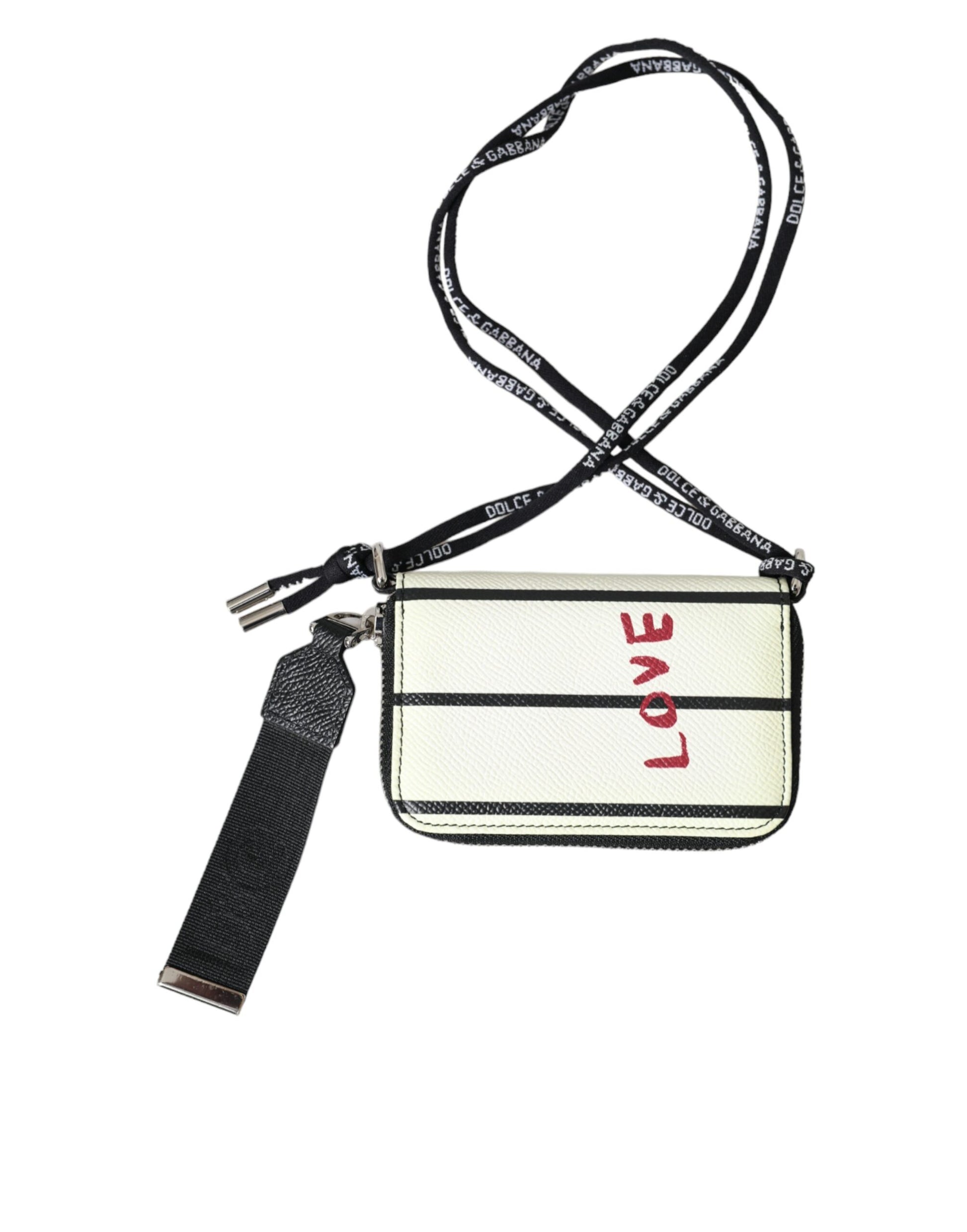 Absolutely stunning, 100% Authentic, brand new with tags Dolce & Gabbana stripe calf leather card holder wallet features a DG & crown logo print and detachable neck strap.