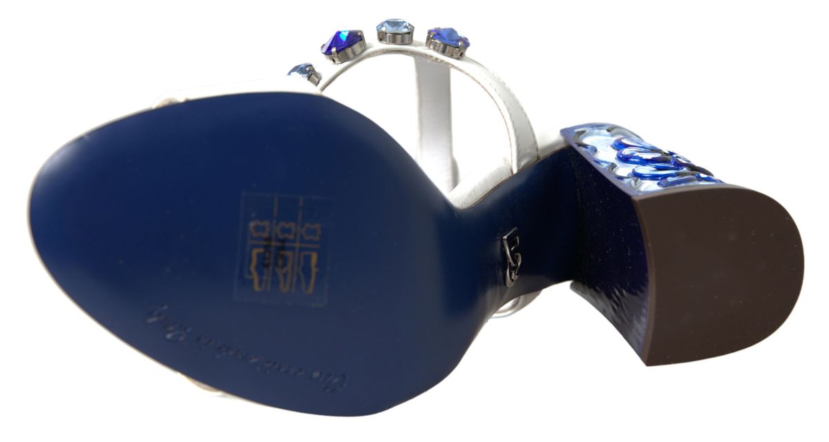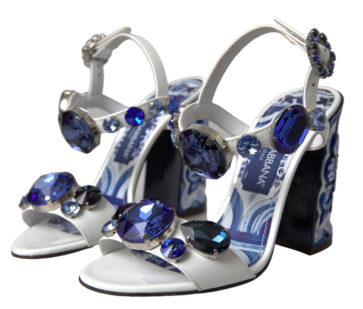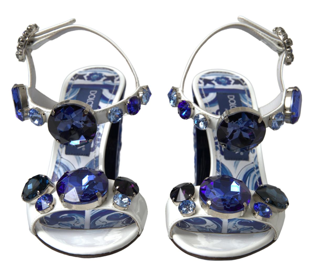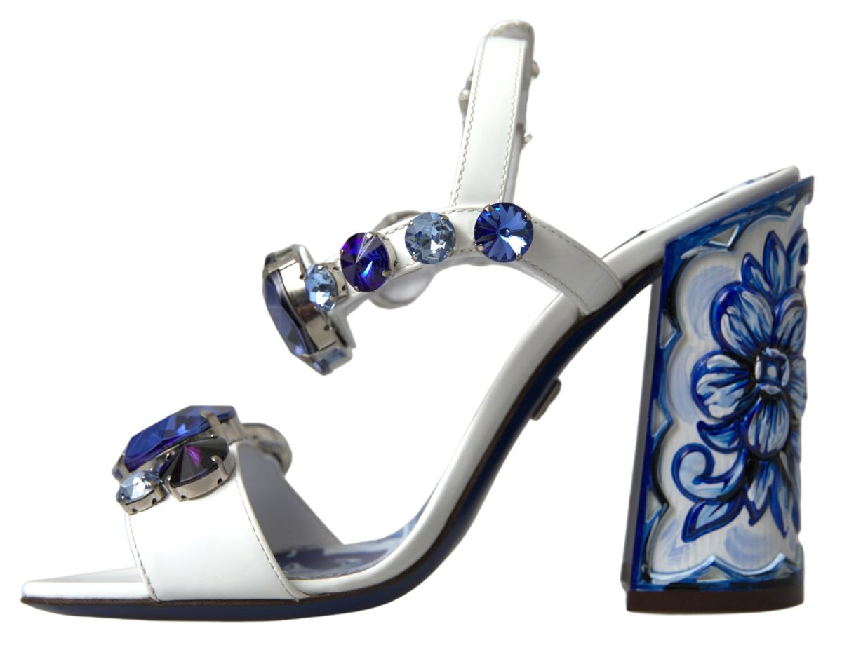 Step into a world of elegance and refined Sicilian artistry with the Dolce & Gabbana Keira sandals. These stunning slingback pumps feature a patent leather design that pays homage to iconic Sicilian majolica tiles. The white and blue color palette adds a contemporary yet classic touch, perfectly complemented by dazzling gemstone embellishments. Designed for the fashion-forward woman, these heels exude luxury and are a testament to impeccable craftsmanship. Made in Italy, they promise to be a standout addition to your footwear collection.