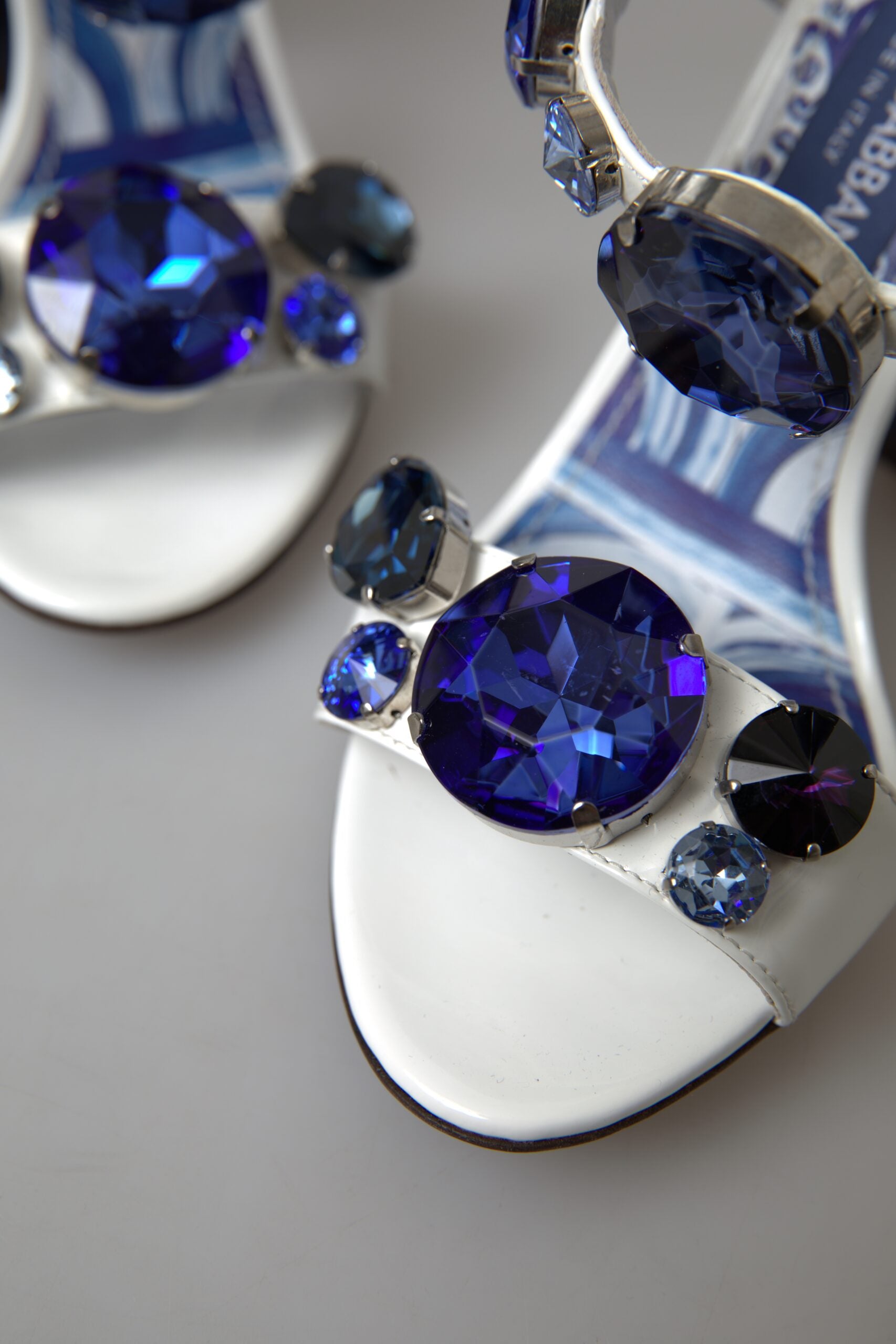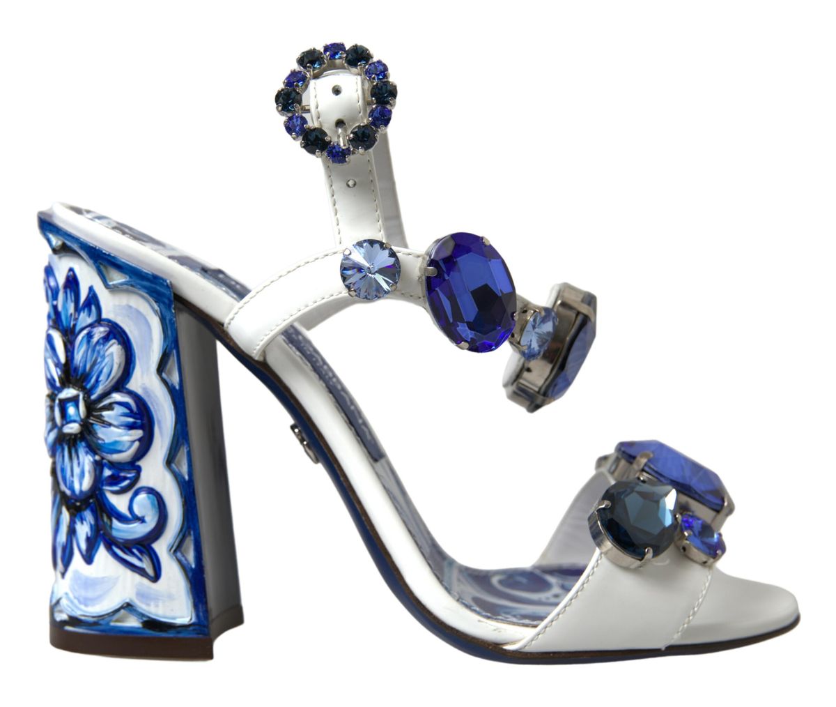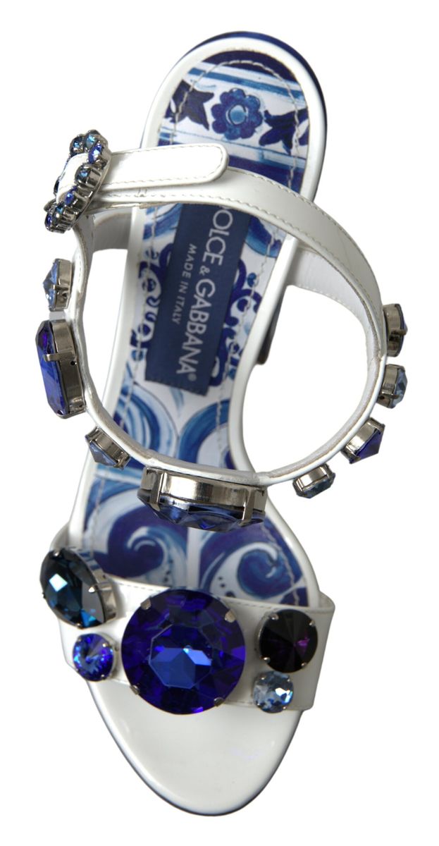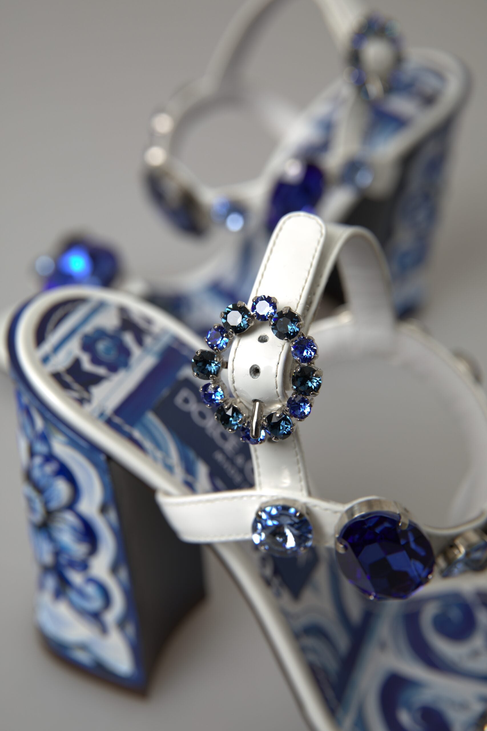 Step into a world of elegance and refined Sicilian artistry with the Dolce & Gabbana Keira sandals. These stunning slingback pumps feature a patent leather design that pays homage to iconic Sicilian majolica tiles. The white and blue color palette adds a contemporary yet classic touch, perfectly complemented by dazzling gemstone embellishments. Designed for the fashion-forward woman, these heels exude luxury and are a testament to impeccable craftsmanship. Made in Italy, they promise to be a standout addition to your footwear collection.