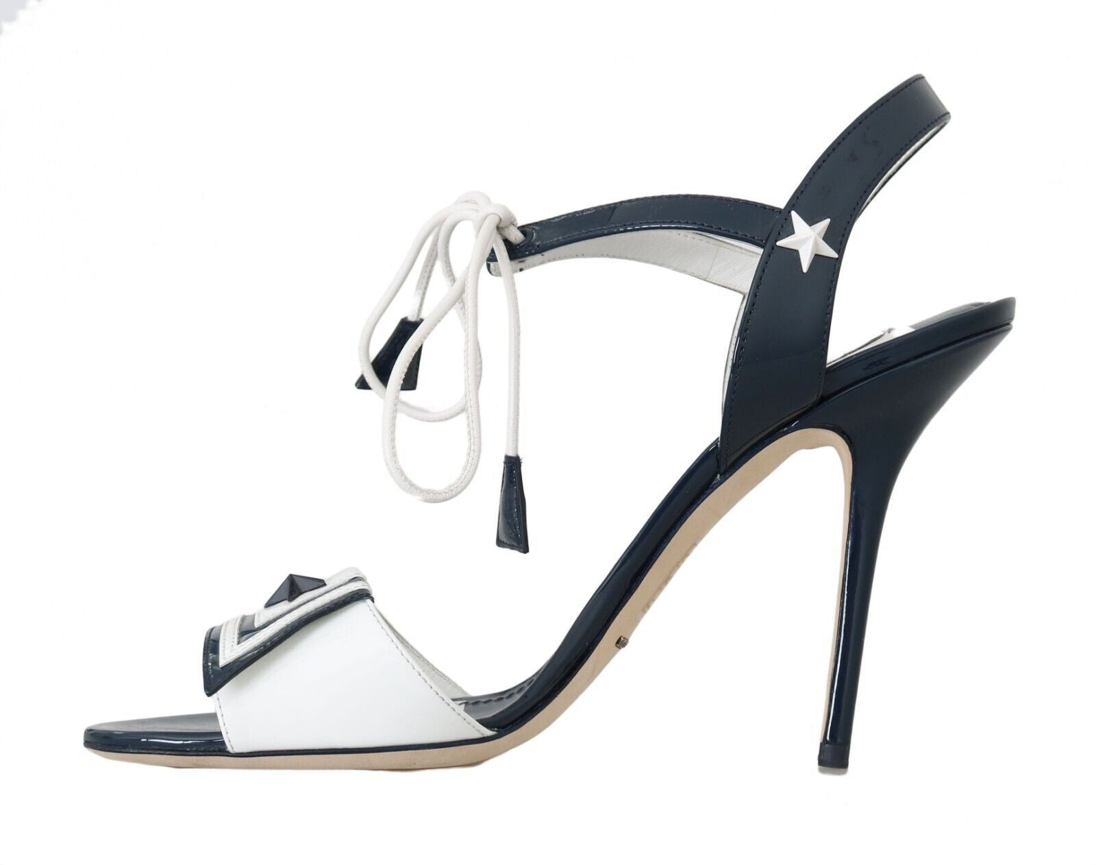 Step into luxury with these Dolce & Gabbana leather heel sandals. Crafted with exceptional quality and designed for comfort, these blue and white striped heels embody elegance with a modern twist. Perfect for adding a splash of sophistication to any outfit, they boast the iconic logo and are proudly made in Italy. Elevate your shoe collection with these beautiful sandals.