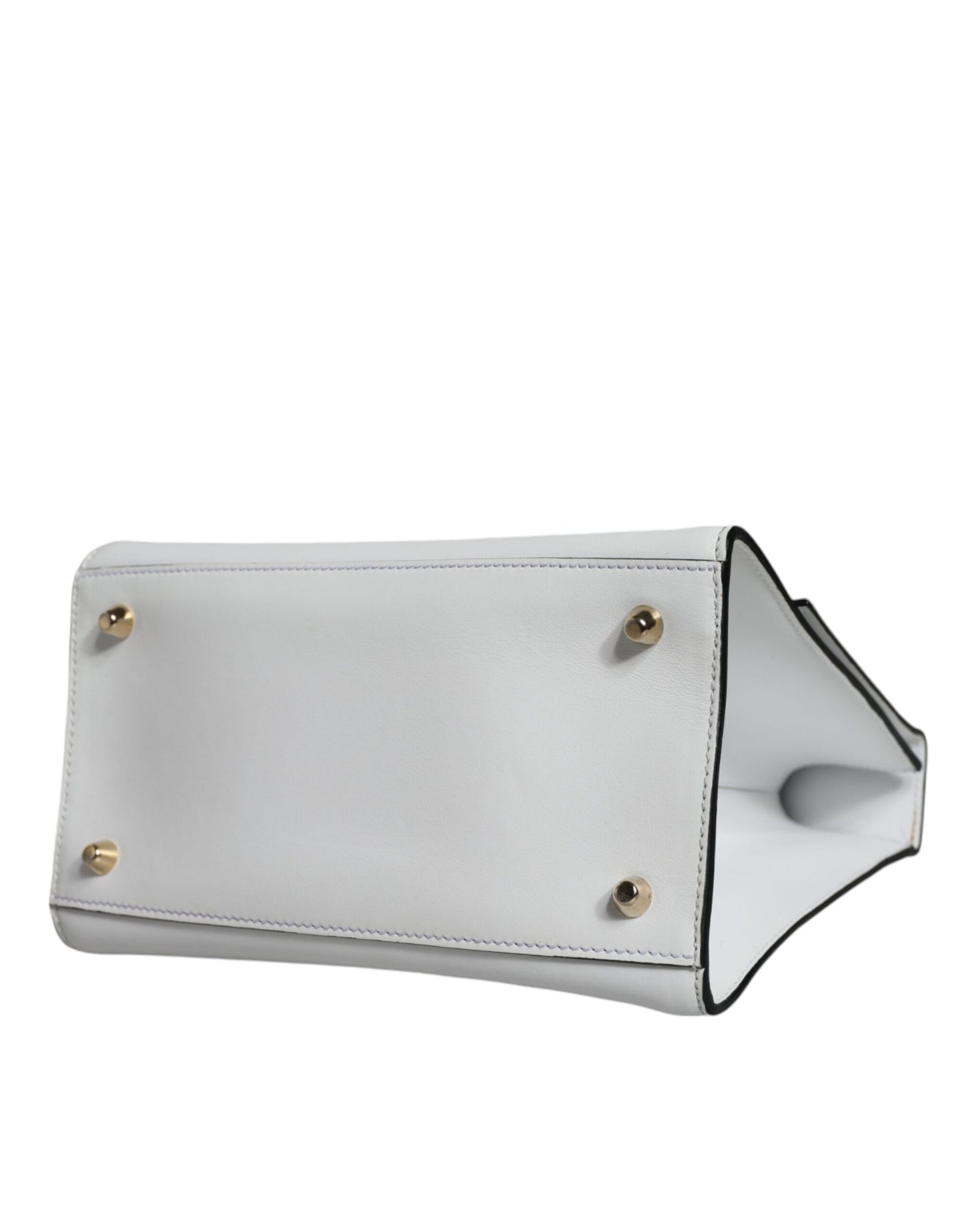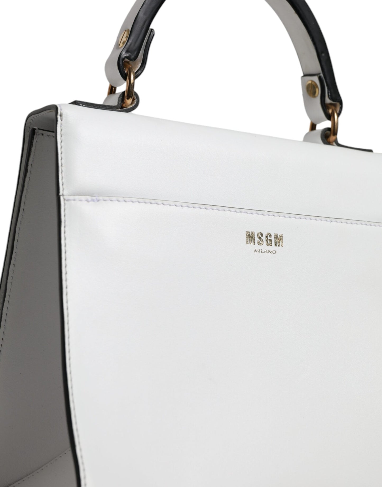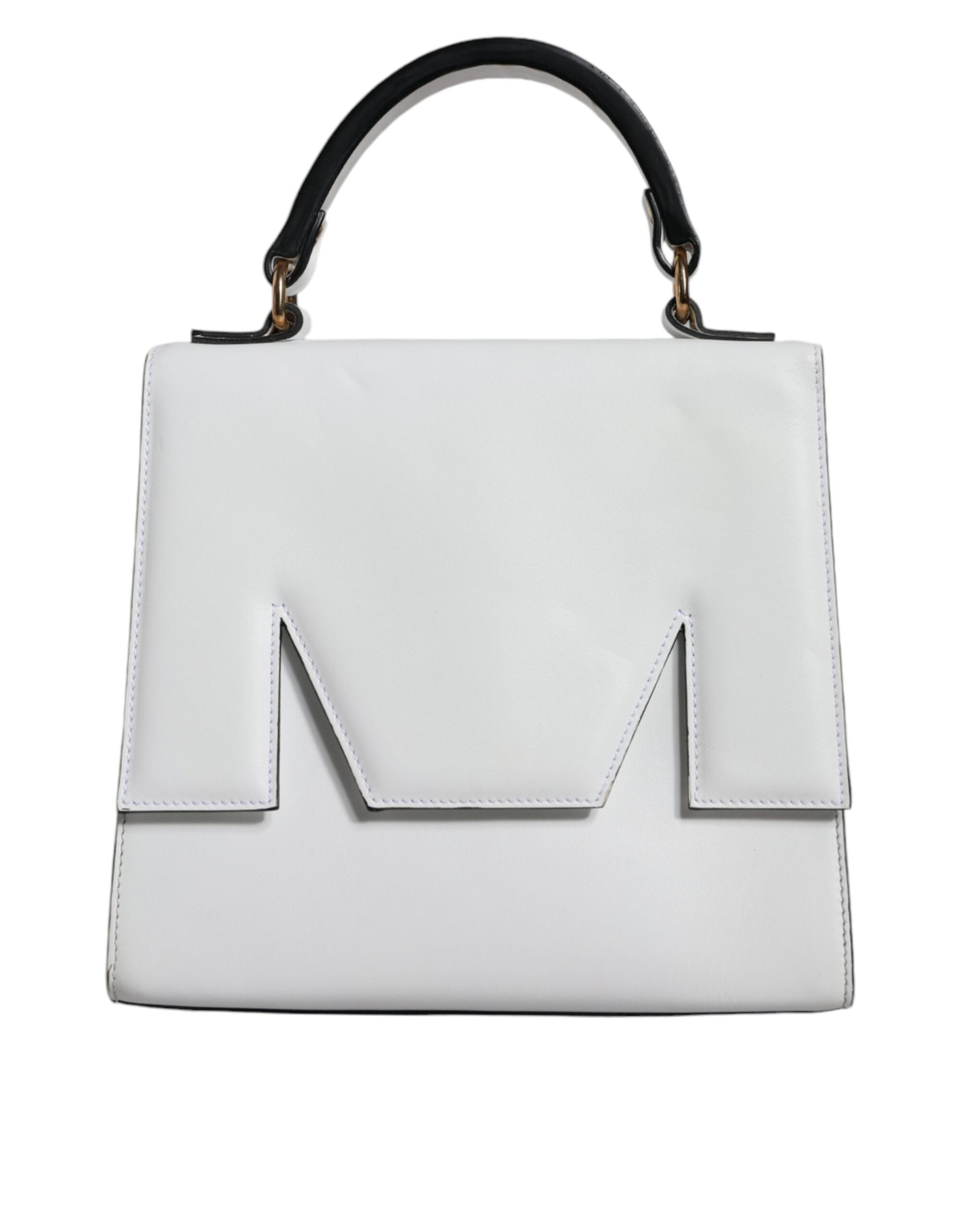 White Bovine Leather Top Handle Handbag Satchel Purse Bag