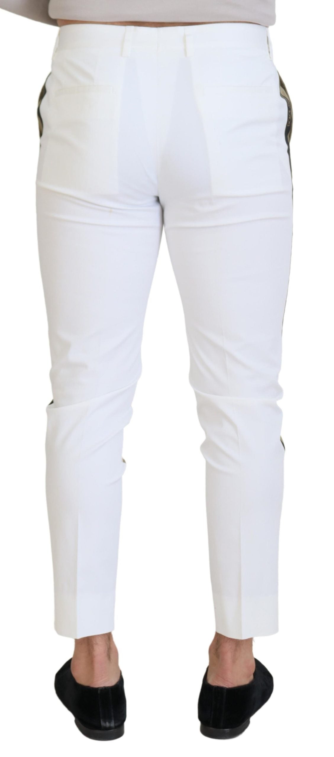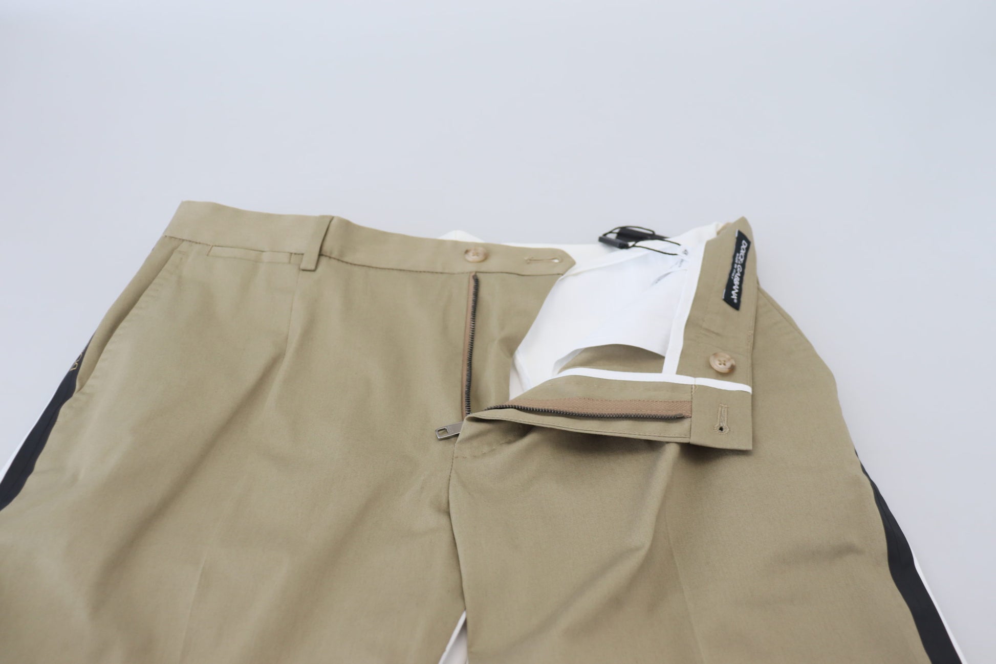 Discover the exemplary craftsmanship of Dolce & Gabbana with these chic two-tone trousers. These stunning pants are a testament to classic style with a modern twist, perfect for those who appreciate luxury and attention to detail in their wardrobe. The beautifully designed front in a rich brown hue is complemented by the striking white back, making them a standout piece for any fashion-forward gentleman.