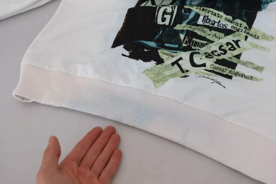 White Caesar Cotton Hooded Sweatshirt Sweater