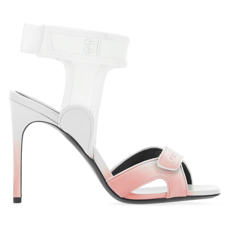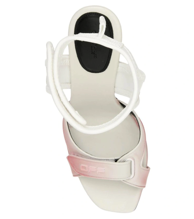 Elevate your ensemble with these elegant white calfskin sandals that exude sophistication and minimalistic charm. Boasting a subtle hint of pink, these heels feature a comfortable elastic ankle upper and a secure velcro closure for a seamless blend of style and functionality. Perfect for any dressy occasion, these sandals will carry you with grace and poise, standing tall with a 10.5 cm heel height. Crafted with the finest materials, these luxurious sandals are a testament to impeccable Italian craftsmanship.