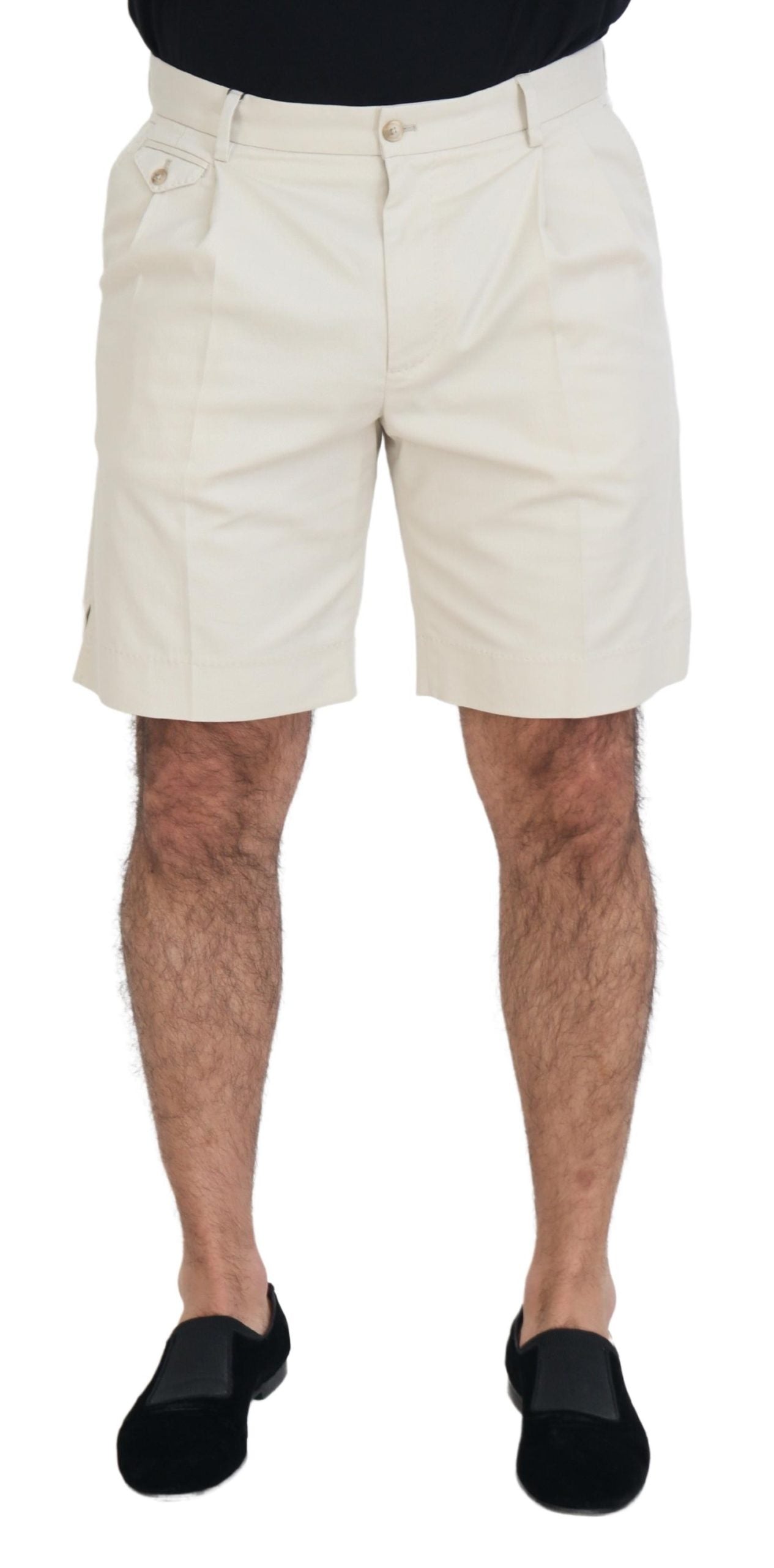 Step into the season with these stunning white chino shorts from the prestigious Dolce & Gabbana. Tailored to offer both style and comfort, they’re crafted from a luxurious blend of cotton and elastane to ensure a perfect fit. With a sharp eye for detail, these shorts display the distinctive logo that affirms their designer quality. Ideal for upscale summer gatherings, or simply elevating your everyday wardrobe.