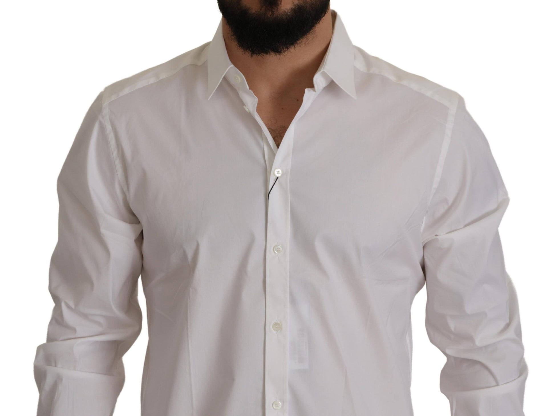 Indulge in the epitome of sophistication with our exquisite white dress shirt from Dolce & Gabbana. This slim fit Martini model exudes timeless elegance with a classic neck, long sleeves, and a sleek button-down closure. Expertly crafted in Italy, this piece is a staple for any gentleman’s wardrobe, ensuring a sharp and stylish presence for any occasion.