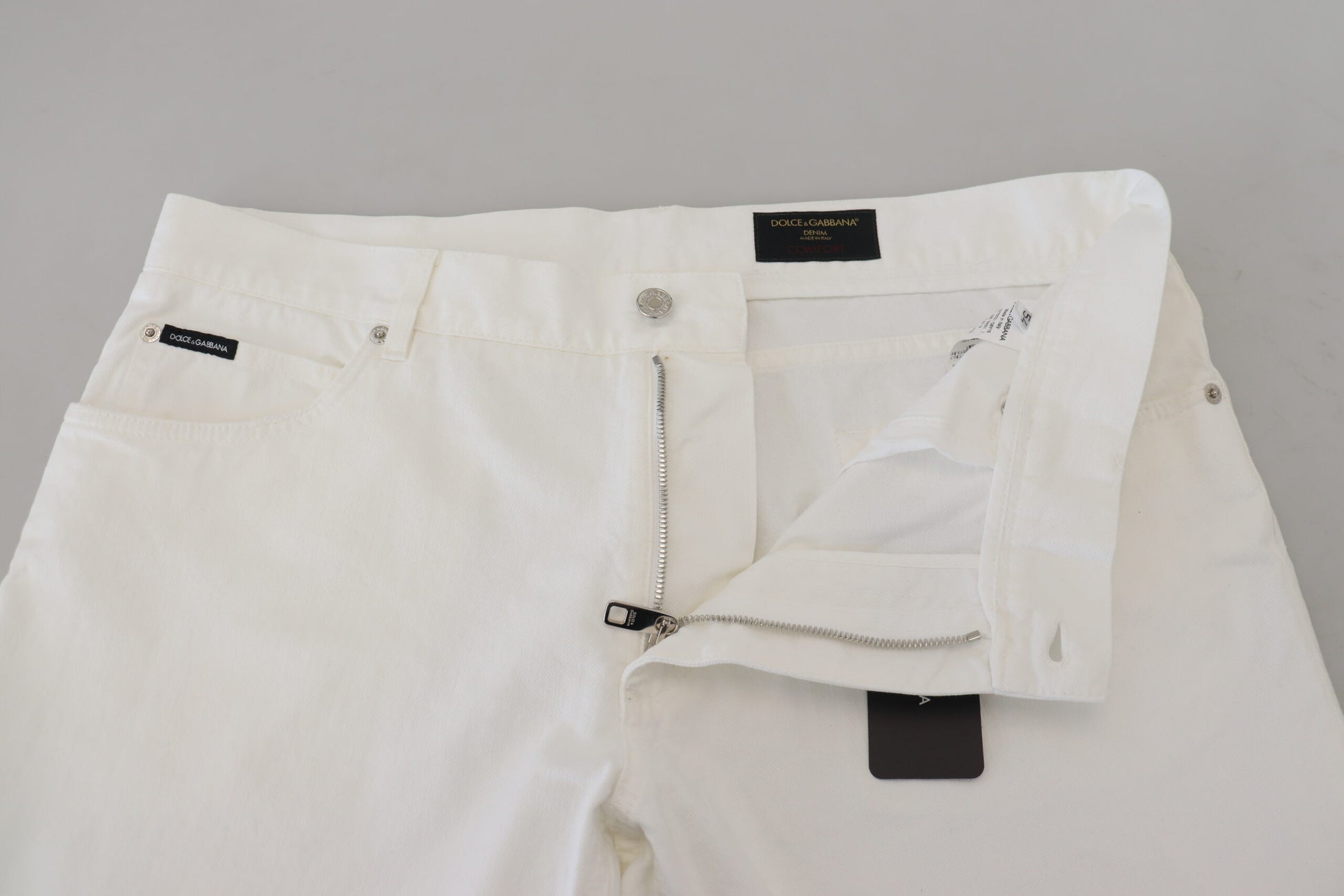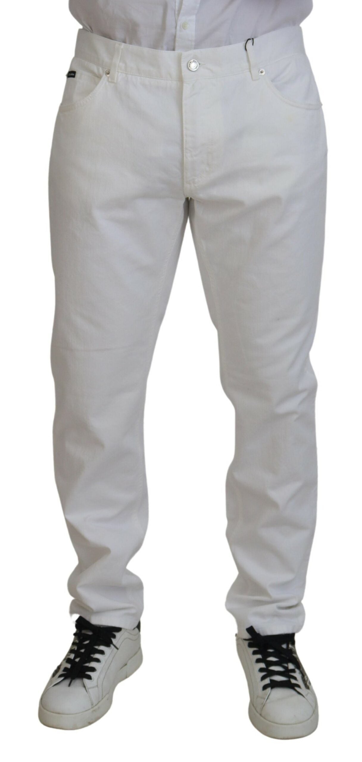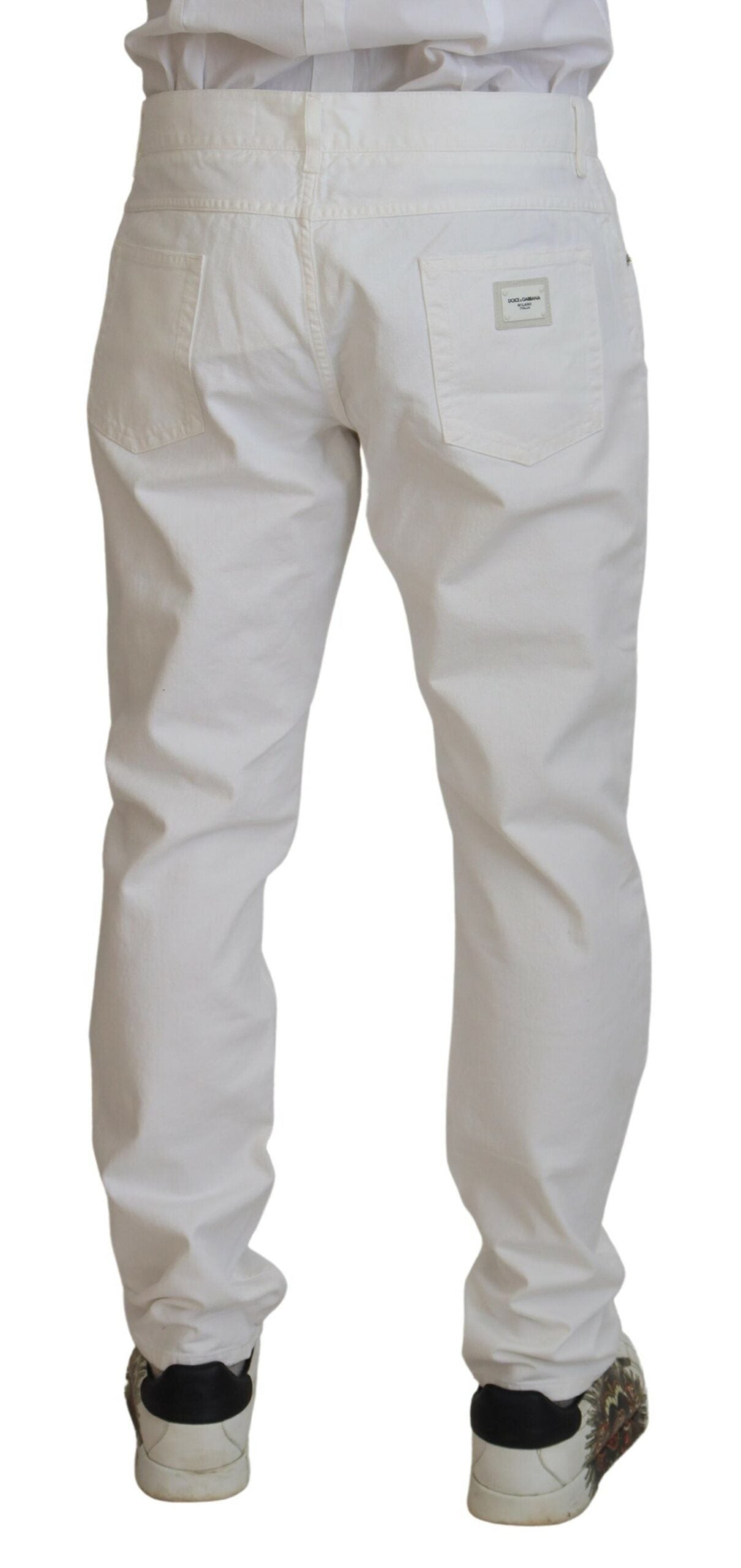Discover the epitome of Italian craftsmanship with these impeccable white jeans by Dolce & Gabbana . Perfect for infusing sophistication into your casual wardrobe, these jeans are a testament to timeless style combined with comfort. From a weekend outing to a casual evening event, these jeans will elevate your fashion quotient effortlessly.