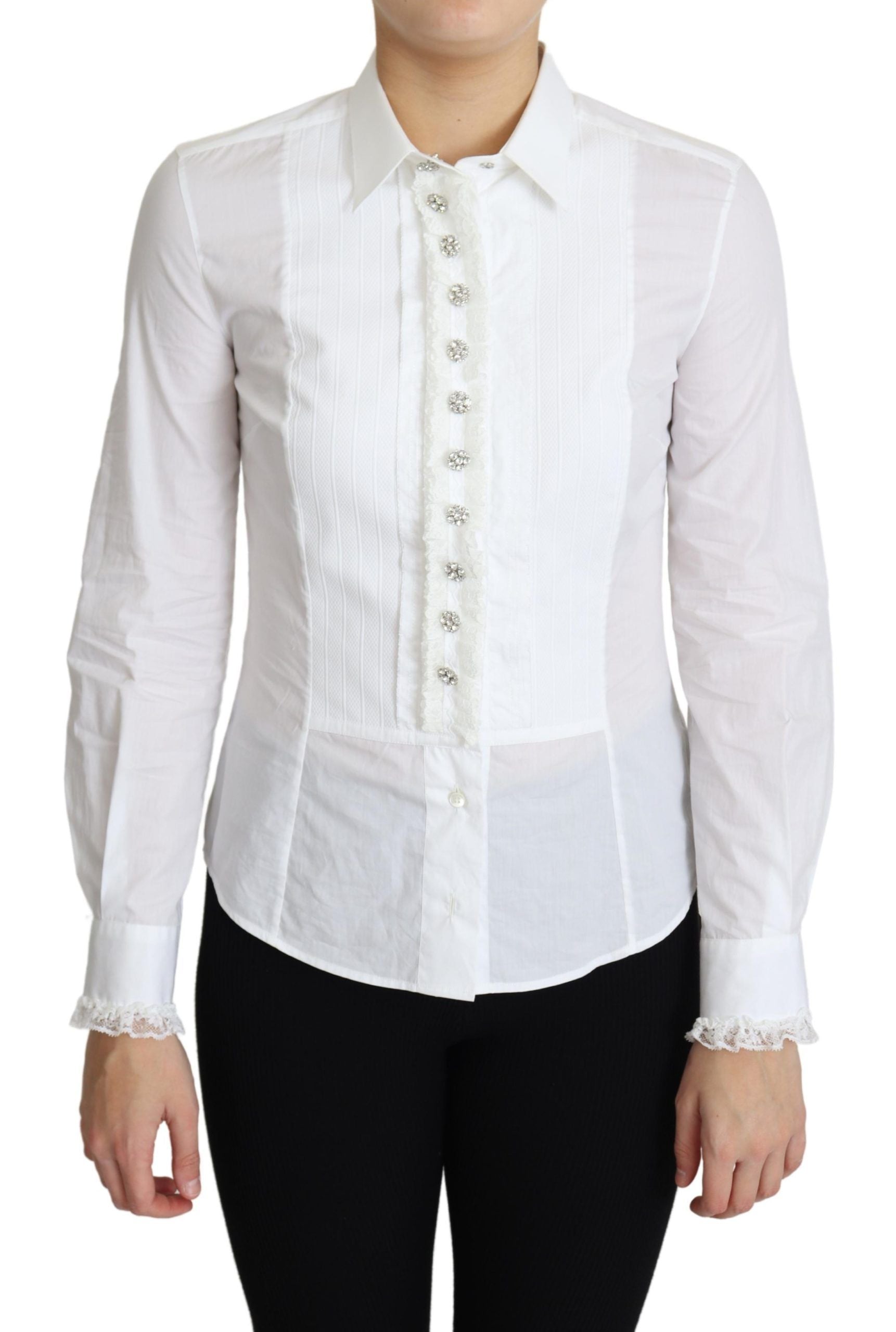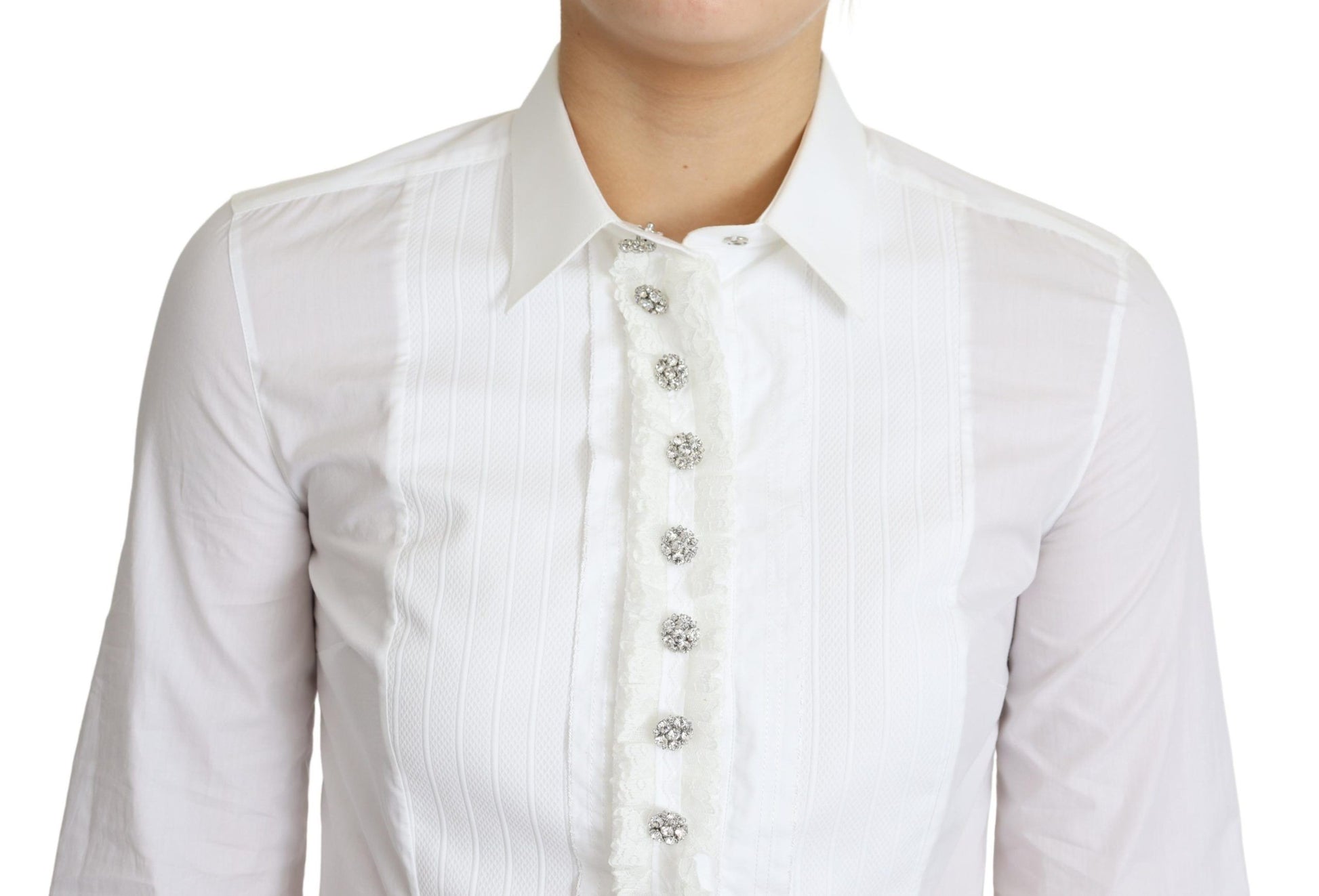 Step into the world of high fashion with this stunning Dolce & Gabbana white collared top, exquisitely crafted with a luxurious cotton blend. Its decorative buttons add a touch of elegance, while the design offers a perfect blend of comfort and style. Flaunt this beautiful piece, complete with the brand’s signature logo details, and experience Italian craftsmanship at its finest.