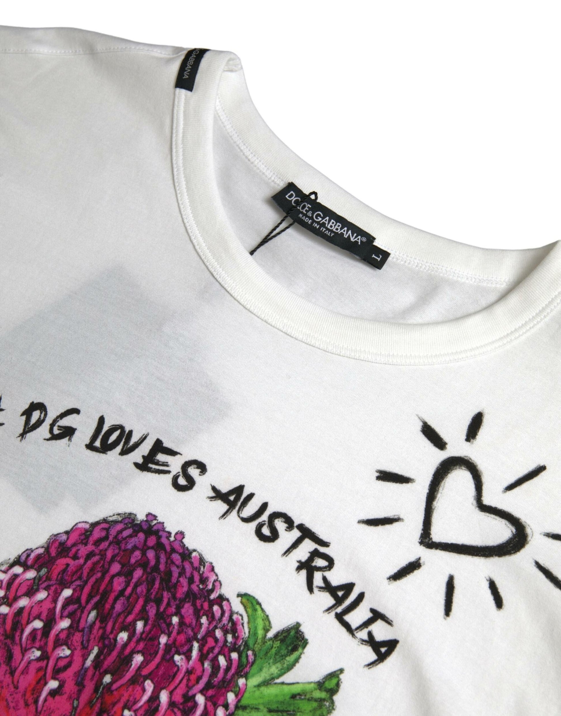 Discover the epitome of Italian craftsmanship with this stunning Dolce & Gabbana t-shirt. Designed for those who appreciate the fusion of luxury and casual style, this ‘D&G LOVES AUSTRALIA’ piece is a testament to minimalist elegance and comfort. Perfectly tailored from the finest 100% cotton, its pristine white hue embellished with subtle logo details makes it an ideal choice for any fashion-savvy wardrobe.