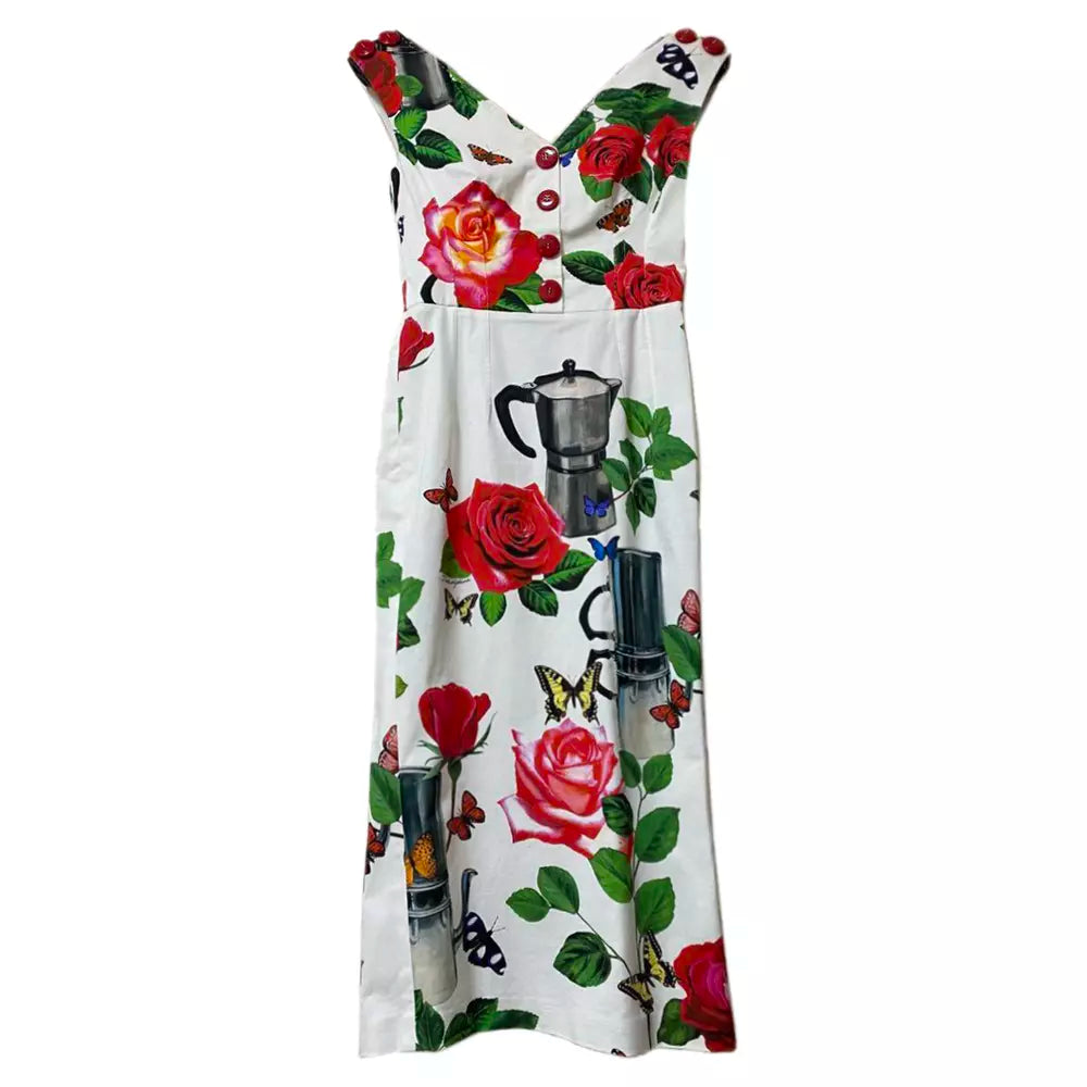 Revel in timeless style with this chic sleeveless cotton dress, featuring a vibrant rose and coffee pot print for that touch of whimsy. Accented with decorative red buttons on the chest and shoulders, and a sleek zip closure on the back, this dress embodies a blend of elegance and playfulness. Crafted in Italy, the blend of 97% cotton and 3% elastane guarantees both comfort and a flattering fit.