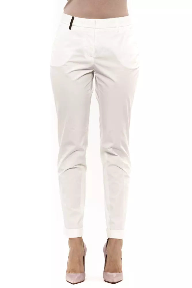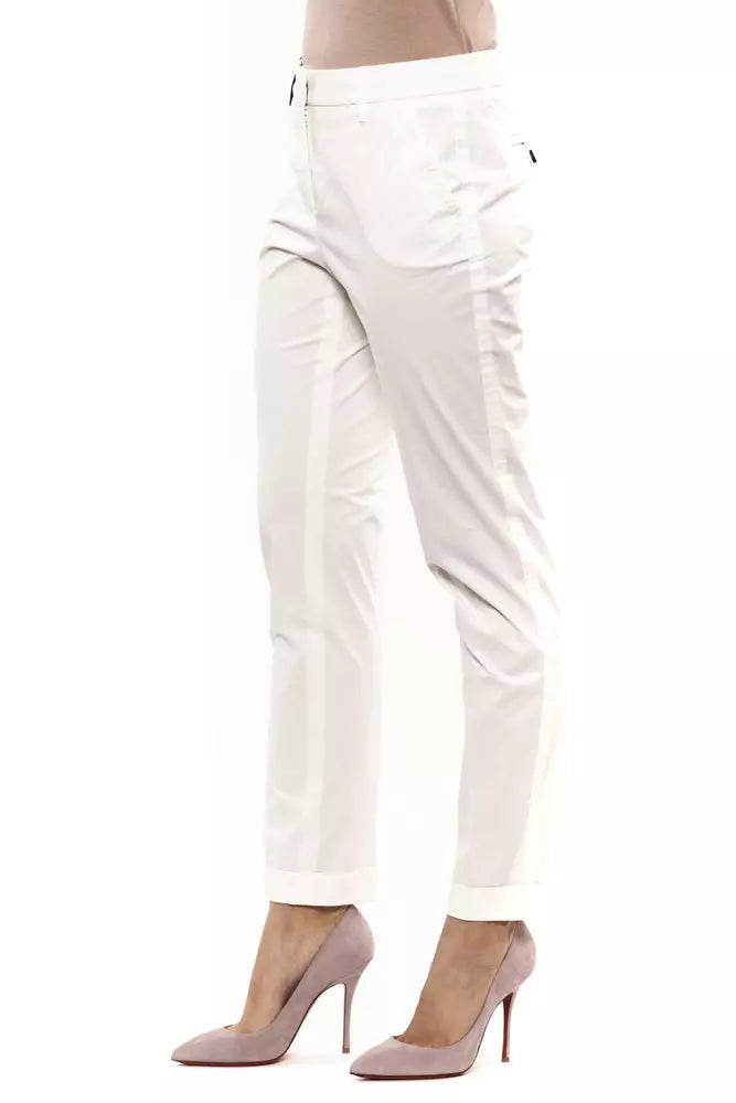 Elevate your wardrobe with Peserico’s quintessentially chic Italian tailoring. These high-waisted trousers offer a flattering, adherent fit accentuating your silhouette. Crafted from a slightly stretch cotton blend, they ensure both comfort and sophistication. Detailed with sleek front pockets and buttoned thread pockets at the back, the crisply white trousers are a versatile staple. Secure the elegance with a zip and button closure—ideal for a power brunch or an evening soiree.