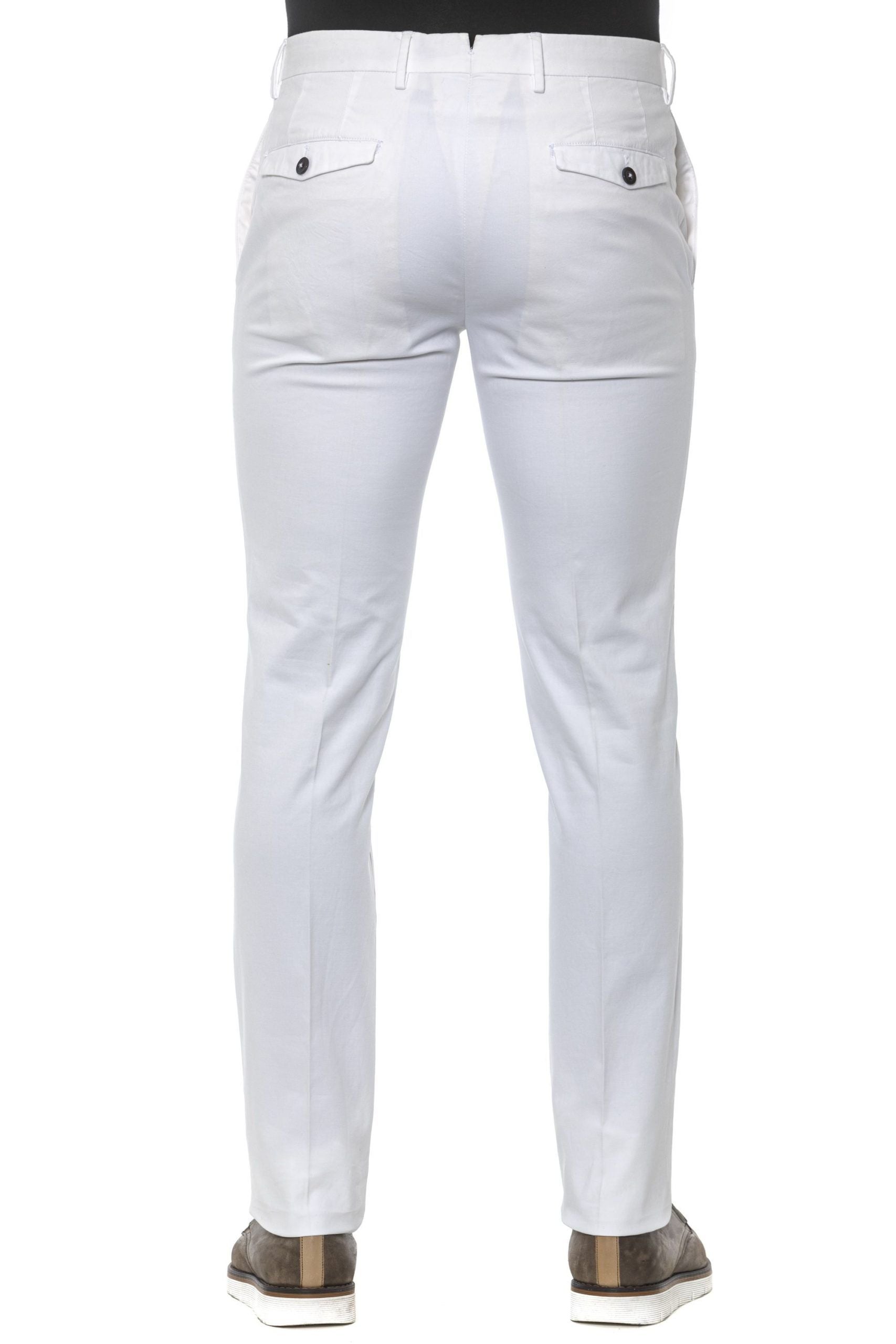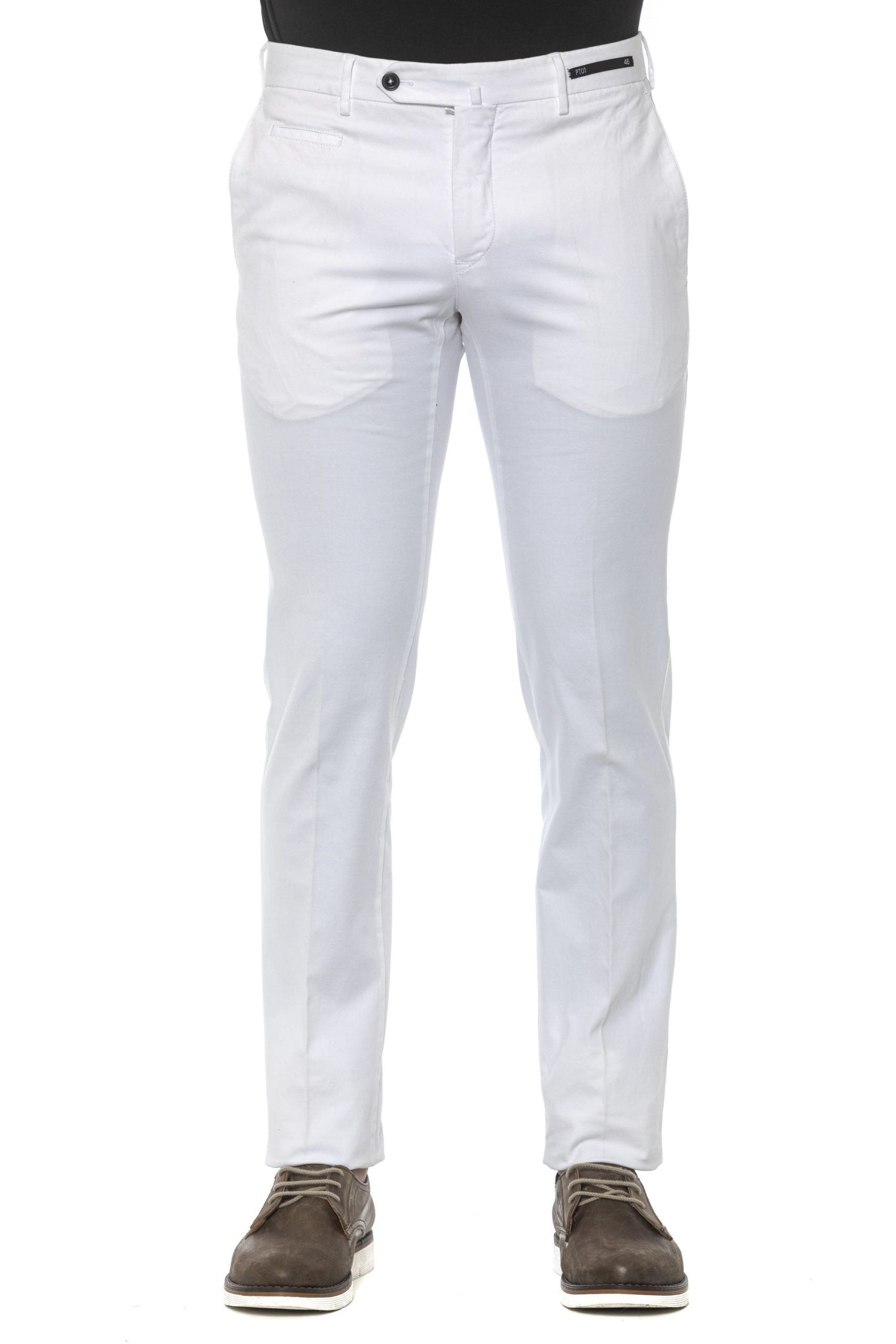 Elevate your wardrobe with the sophistication of PT Torino’s expertly crafted men’s trousers. Perfect for the modern man, these trousers blend premium comfort with a distinctively sharp silhouette. An overlapping button-and-zip closure ensures a seamless fit, while the crisp white color exudes pure, unadulterated class. Side pockets provide functionality without sacrificing style, and the back flap pockets add a touch of traditional elegance. Made with a high-quality blend of cotton and elastane for that coveted stretch and comfort.