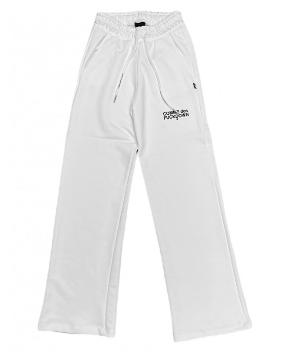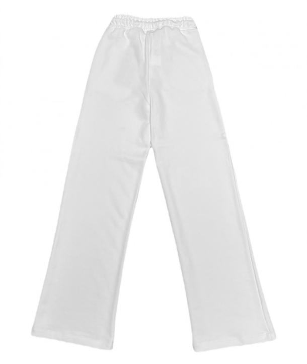 Embrace comfort and style with these chic palazzo pants featuring a bold contrasting logo print on one leg and a convenient drawstring waist for the perfect fit. A versatile white hue makes these pants a perfect canvas for your favorite tops and accessories. Crafted in Italy, these pants are synonymous with quality and fashion-forward design.