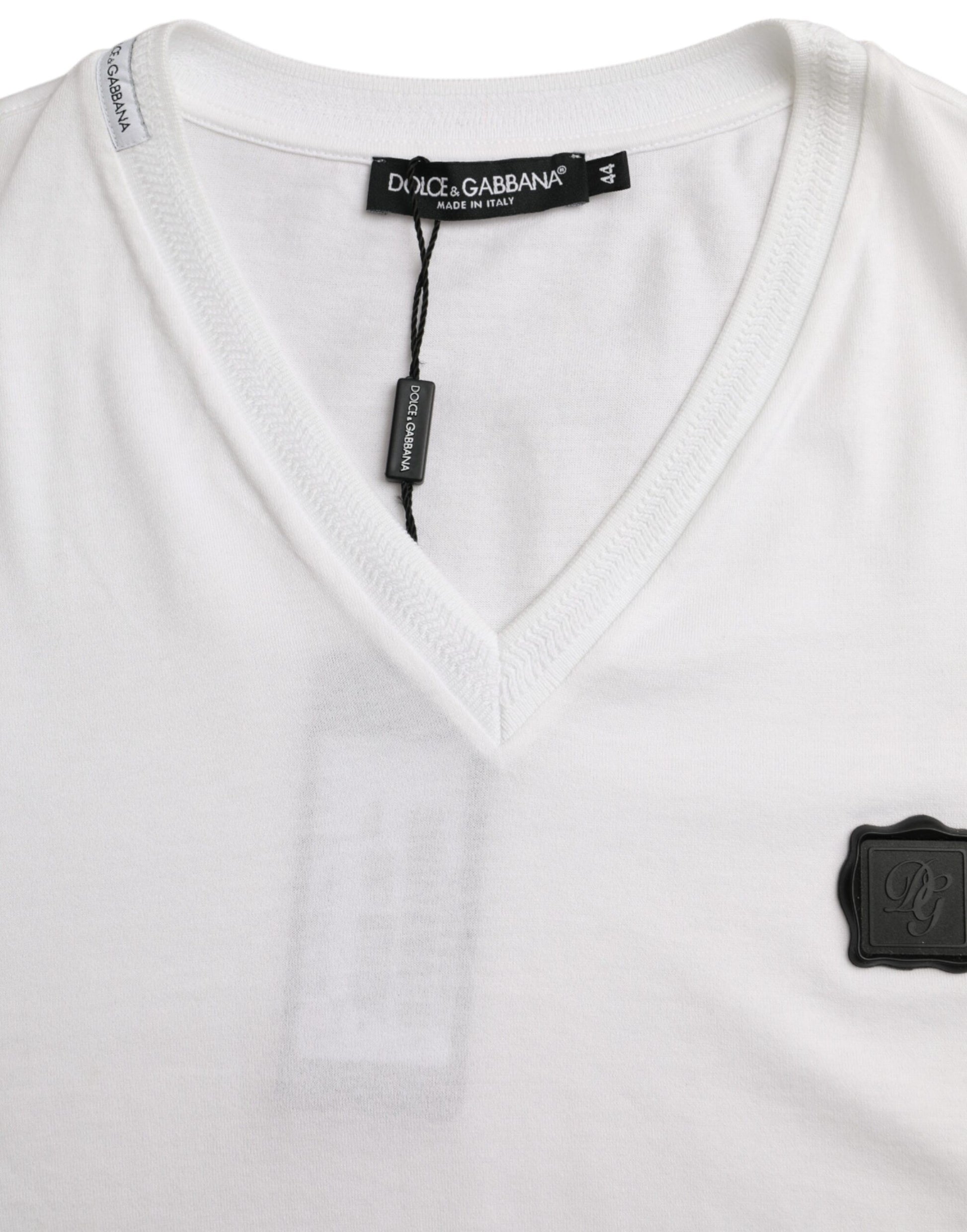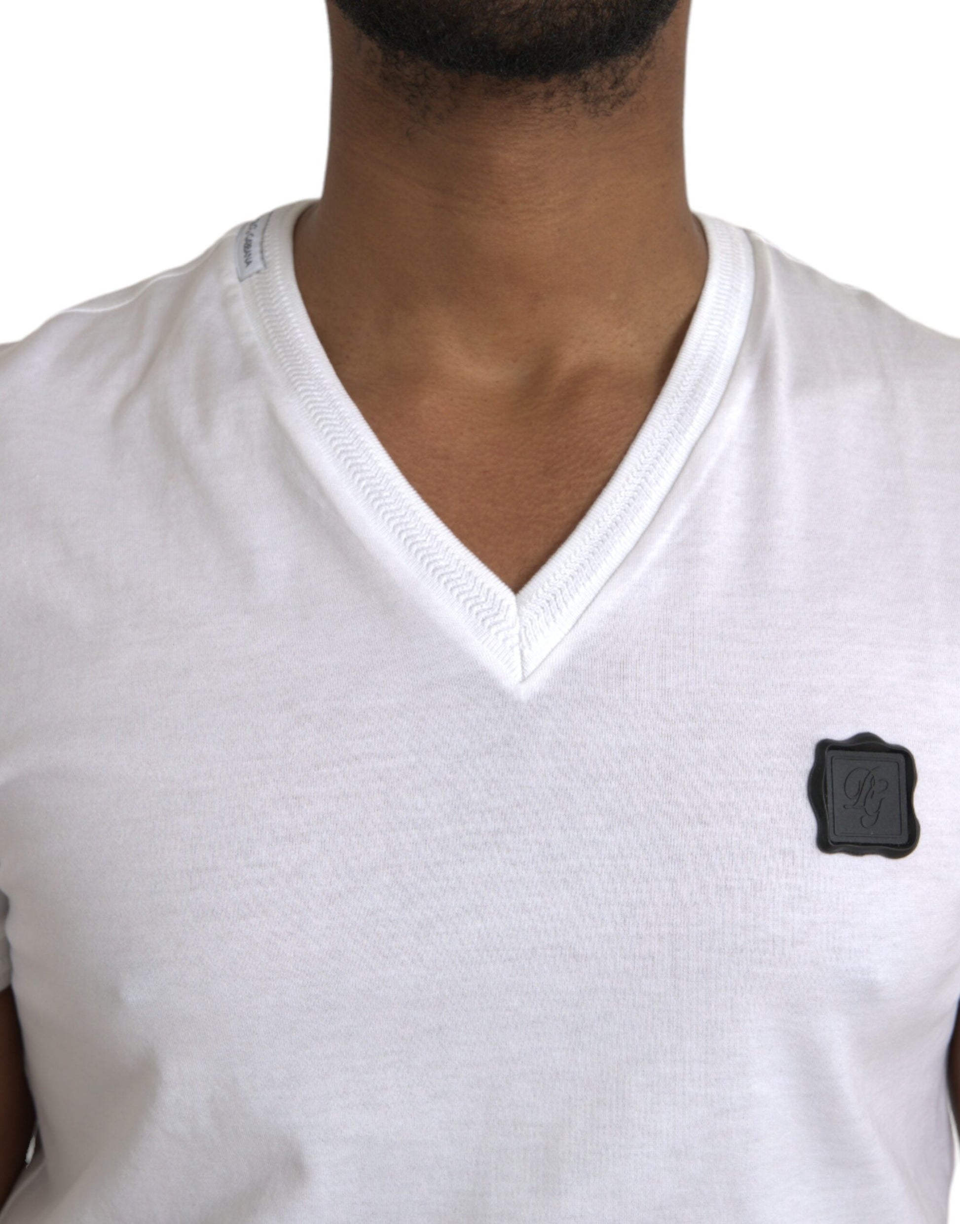 Absolutely stunning, 100% Authentic, brand new with tags Dolce & Gabbana cotton t-shirt with logo plaque features a v-neck and short sleeves.