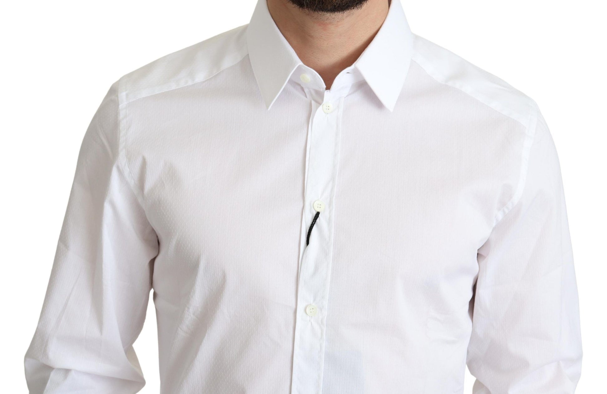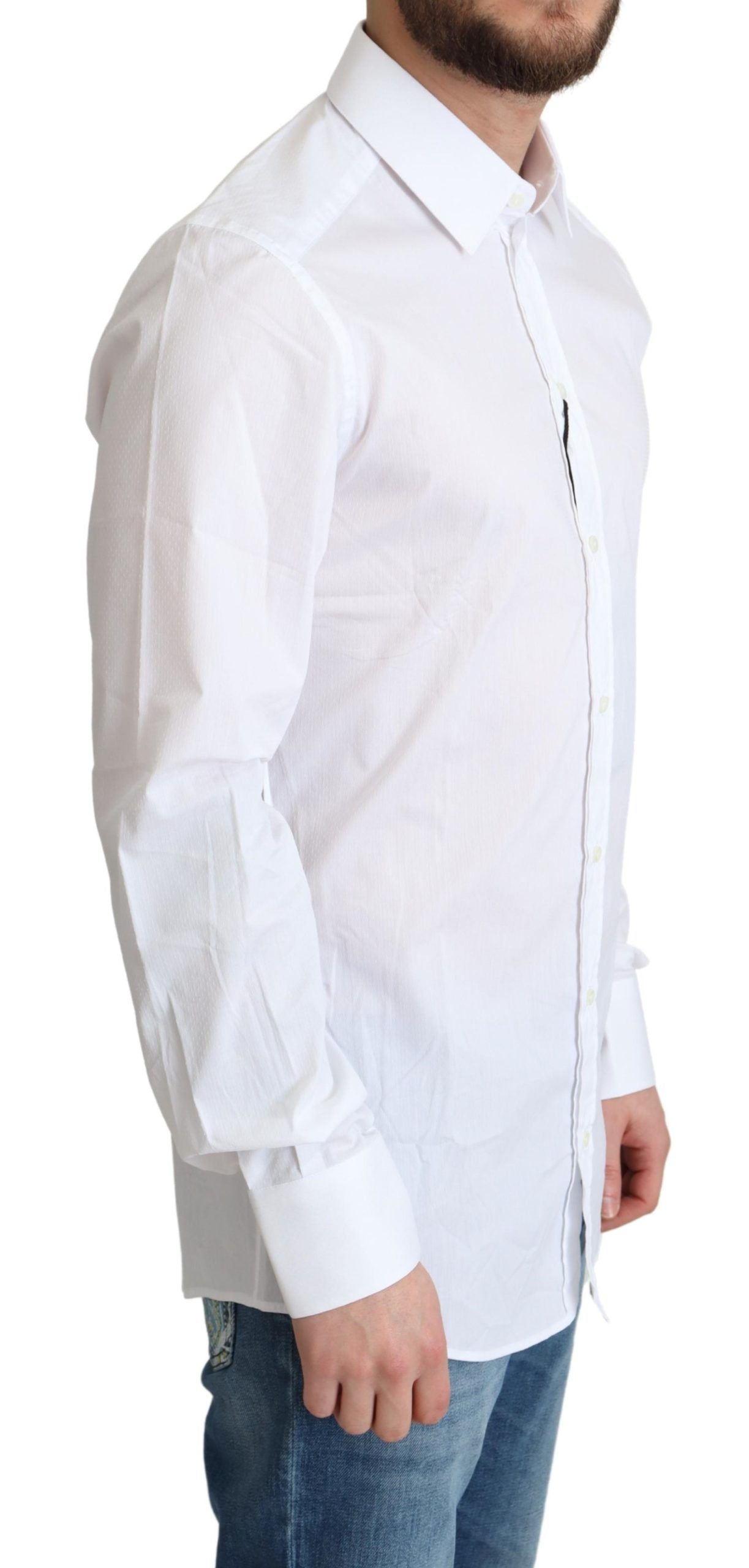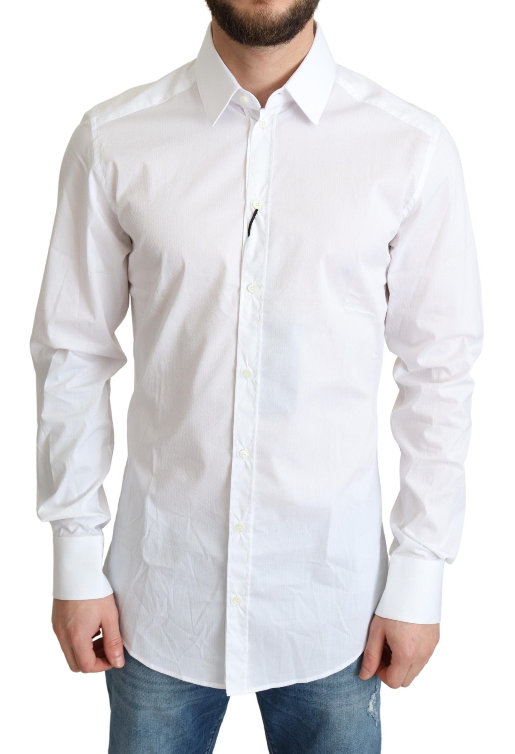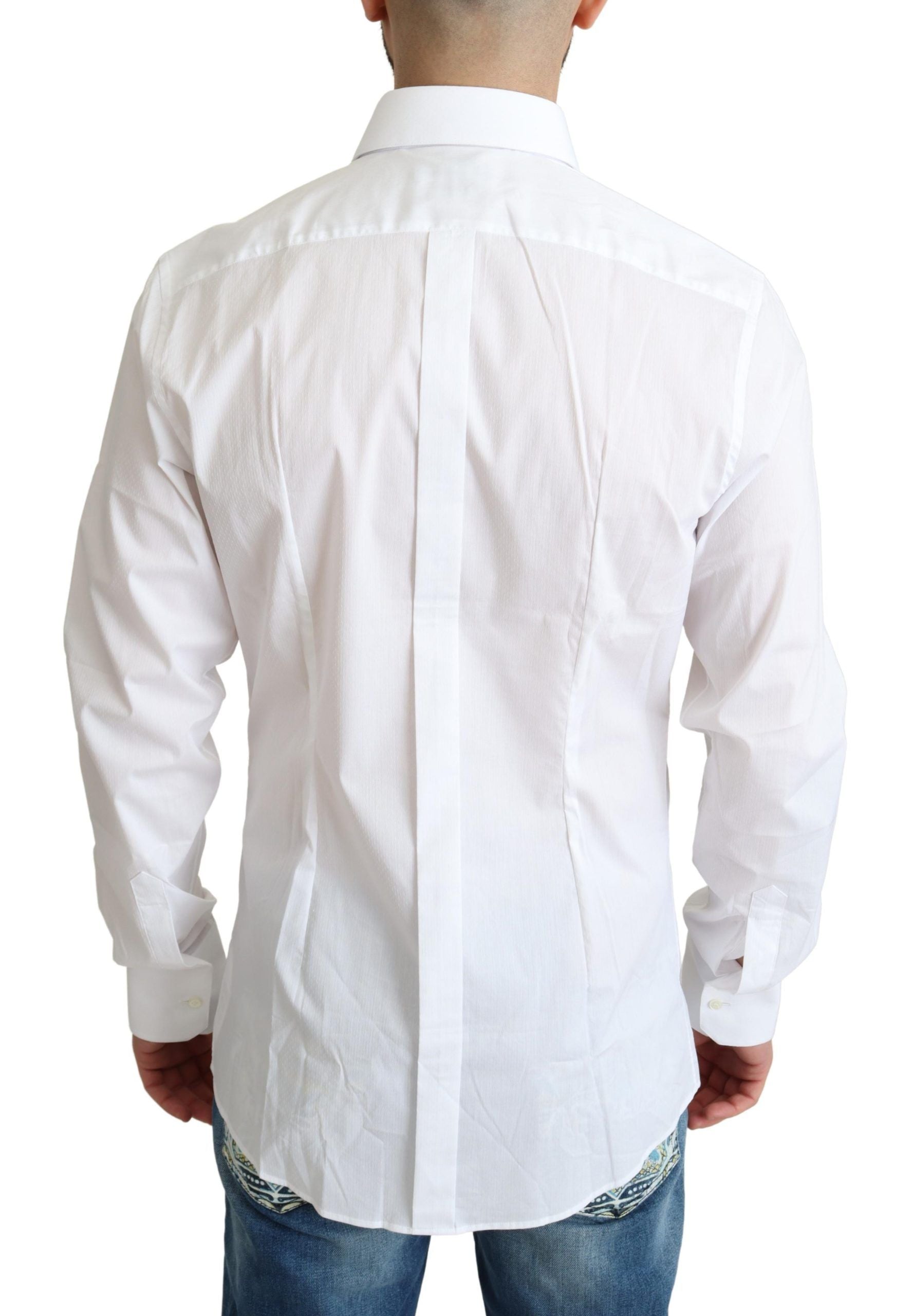 Indulge in the epitome of Italian luxury with this stunning Dolce & Gabbana GOLD dress shirt. Every detail exudes elegance, from the sharp spread collar to the full button closure, all wrapped in a slim-fit design that elevates your style. Highly versatile and perfect for various formal occasions, this white shirt is a wardrobe essential for the discerning gentleman.