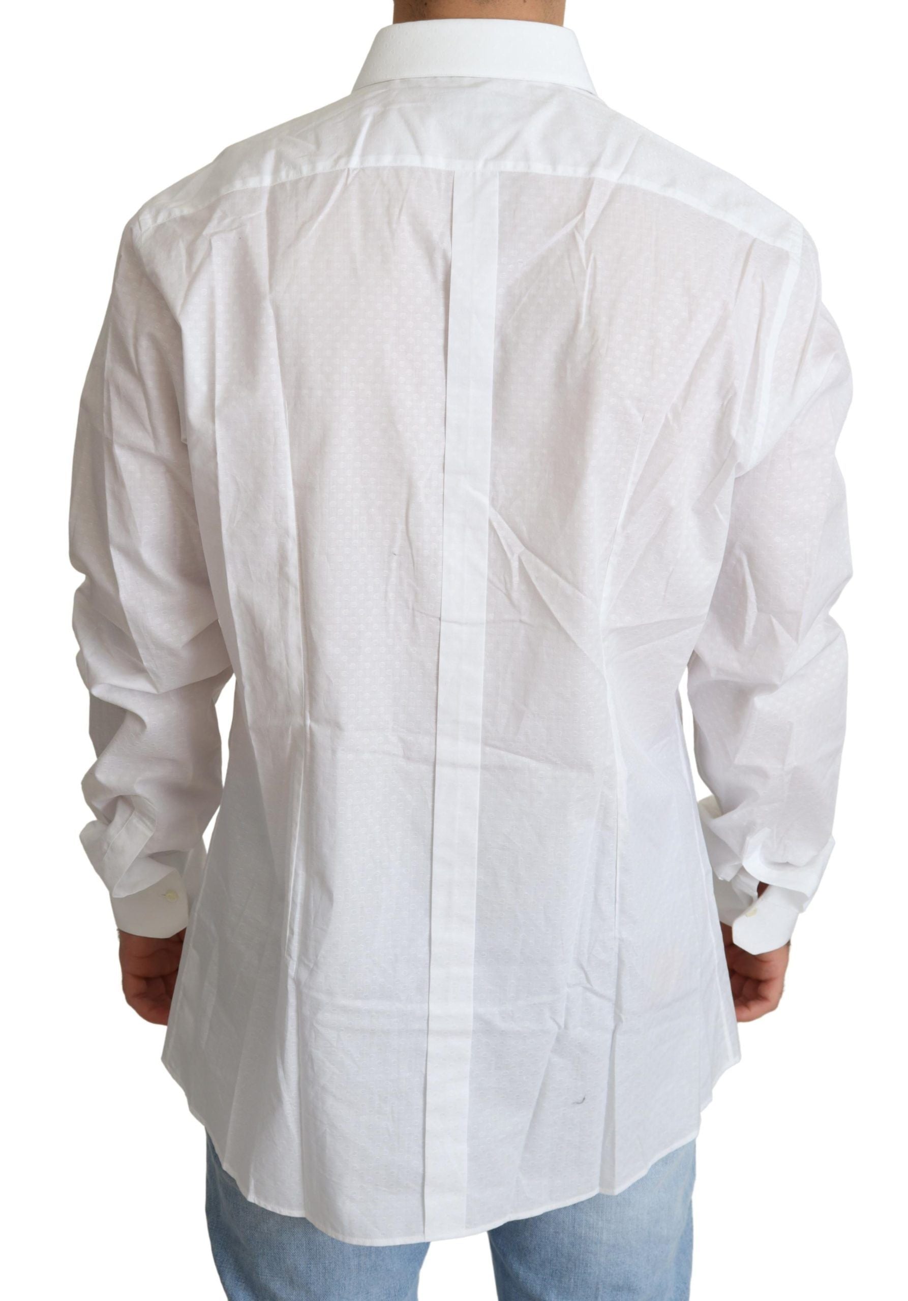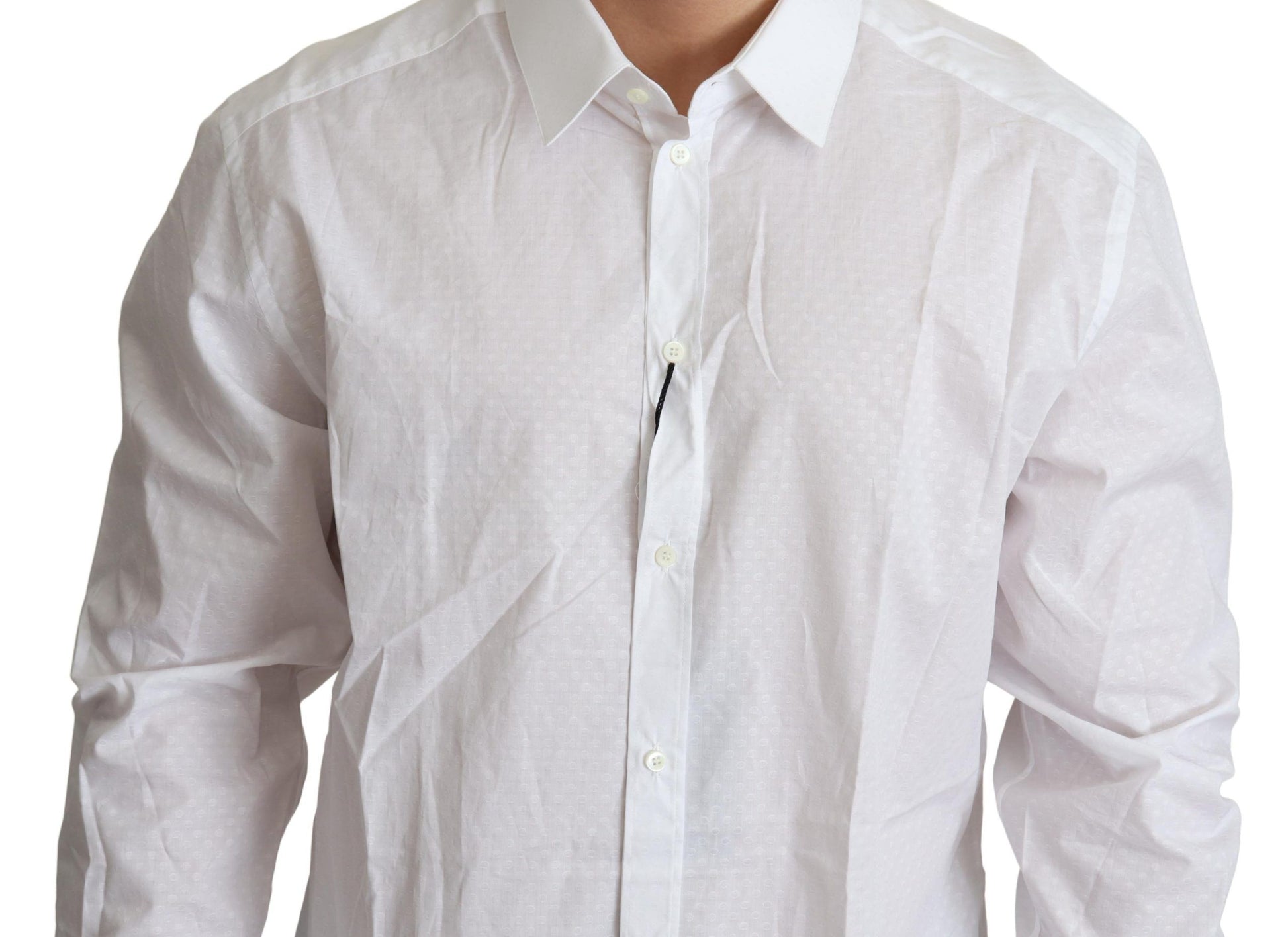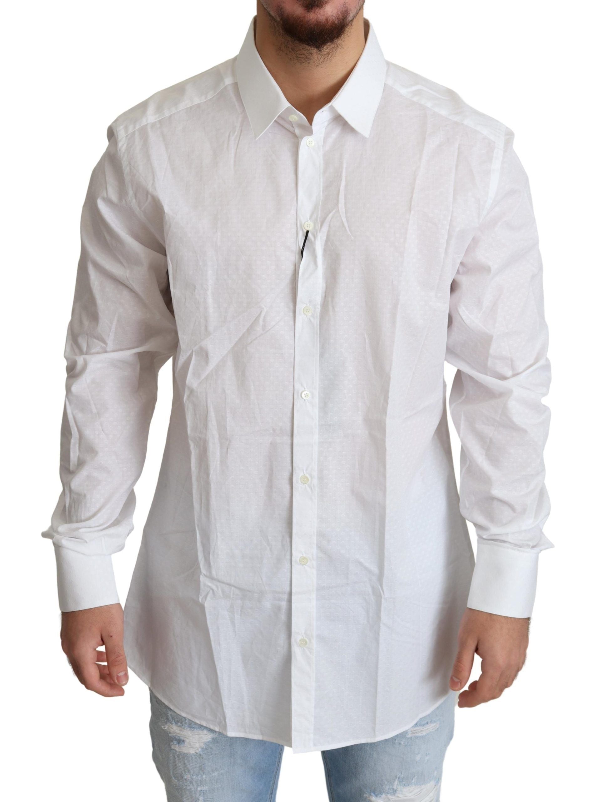 Exude timeless elegance with this stunning Dolce & Gabbana GOLD dress shirt. Known for its luxurious design and high-quality craftsmanship, this shirt is a testament to sophistication and style. Crafted from 100% cotton, it offers both comfort and a sharp regular fitting silhouette. The classic white hue, spread collar, and front button closure lend to its versatility and formal appeal, perfect for any upscale occasion. Proudly made in Italy, it features subtle logo detailing that adds a touch of exclusivity to your wardrobe.