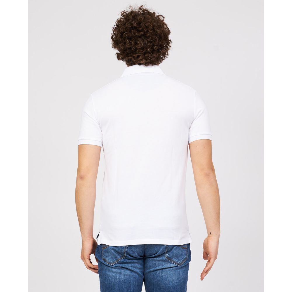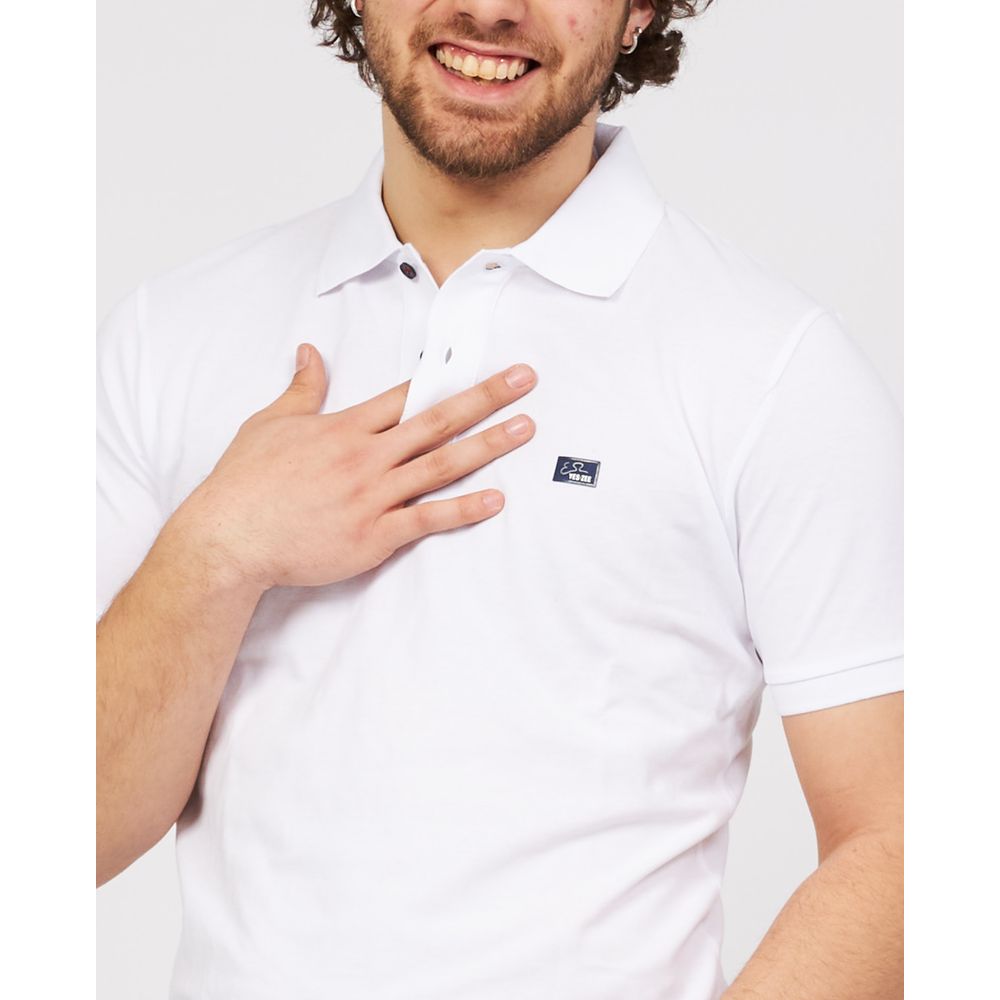 Embrace timeless style with our men’s polo shirt, featuring a classic collar complemented by a two-button placket. The short sleeves and crisp white color make it a versatile addition to any wardrobe. A subtle logo label is tastefully placed on the left side and just below the collar at the back for a touch of branded sophistication without overtaking the shirt’s understated elegance.